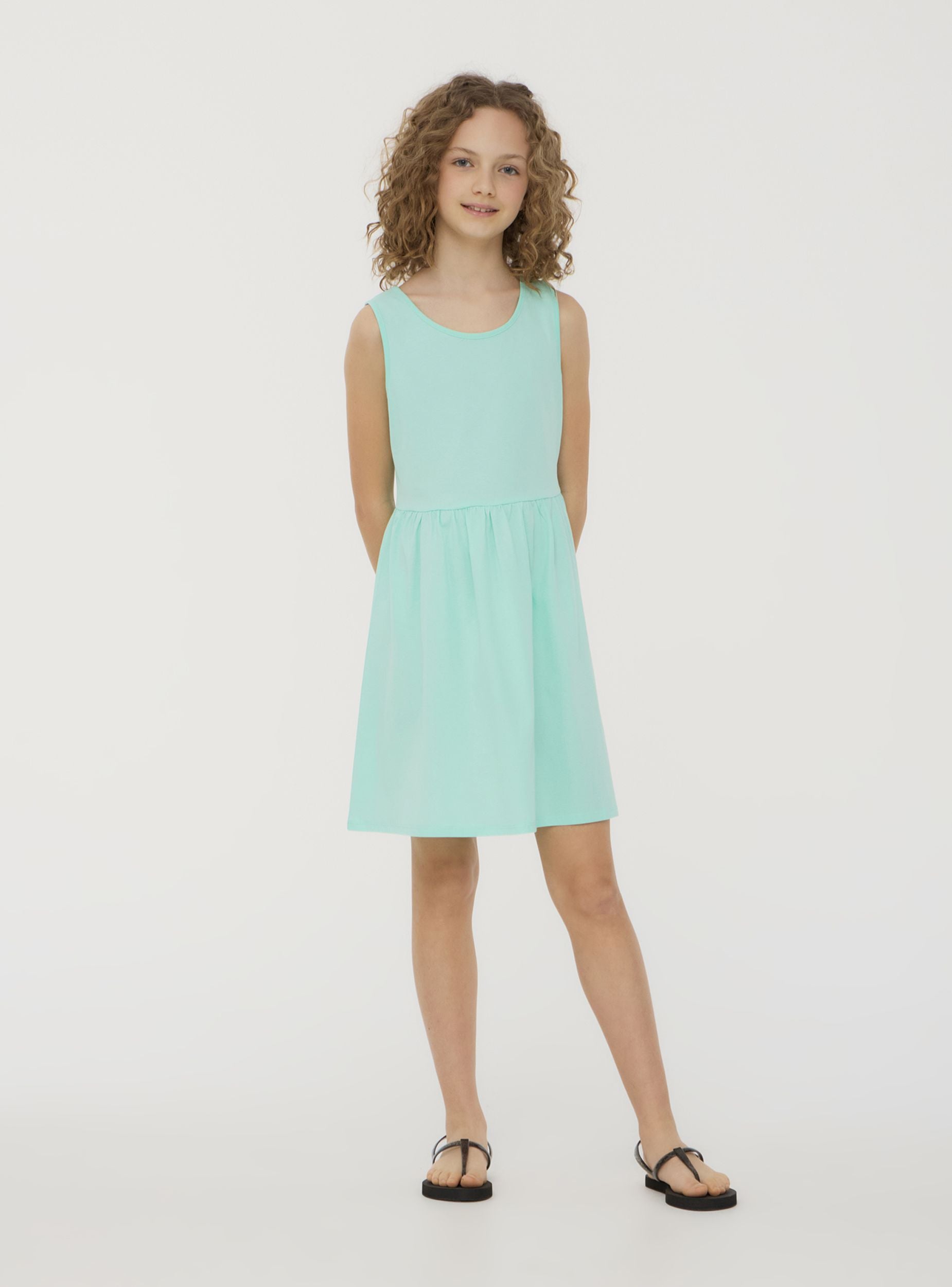 Abito da bambina dal design semplice e delicato, caratterizzato da una tinta unita che ne esalta l'eleganza. Smanicato per garantire freschezza e libertà di movimento, è realizzato in morbido jersey, ideale per le giornate estive. La linea fluida della gonna dona leggerezza e comfort, perfetta per accompagnare le bambine nelle loro avventure quotidiane.