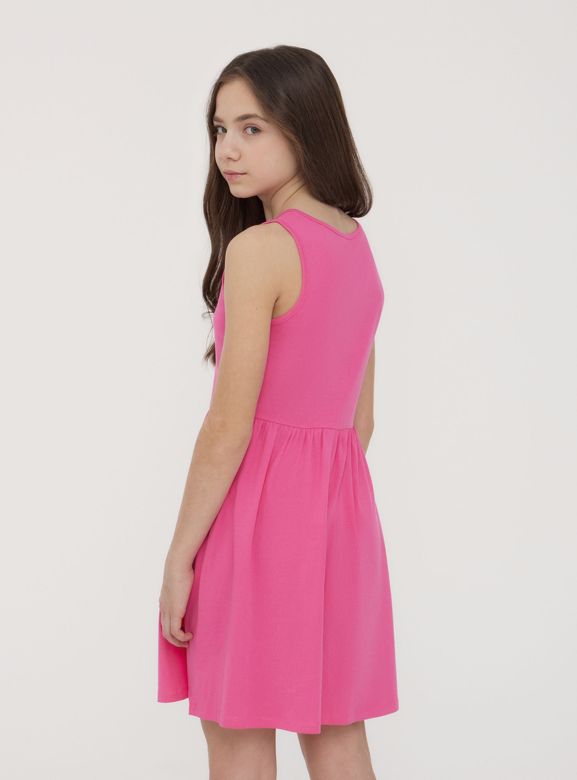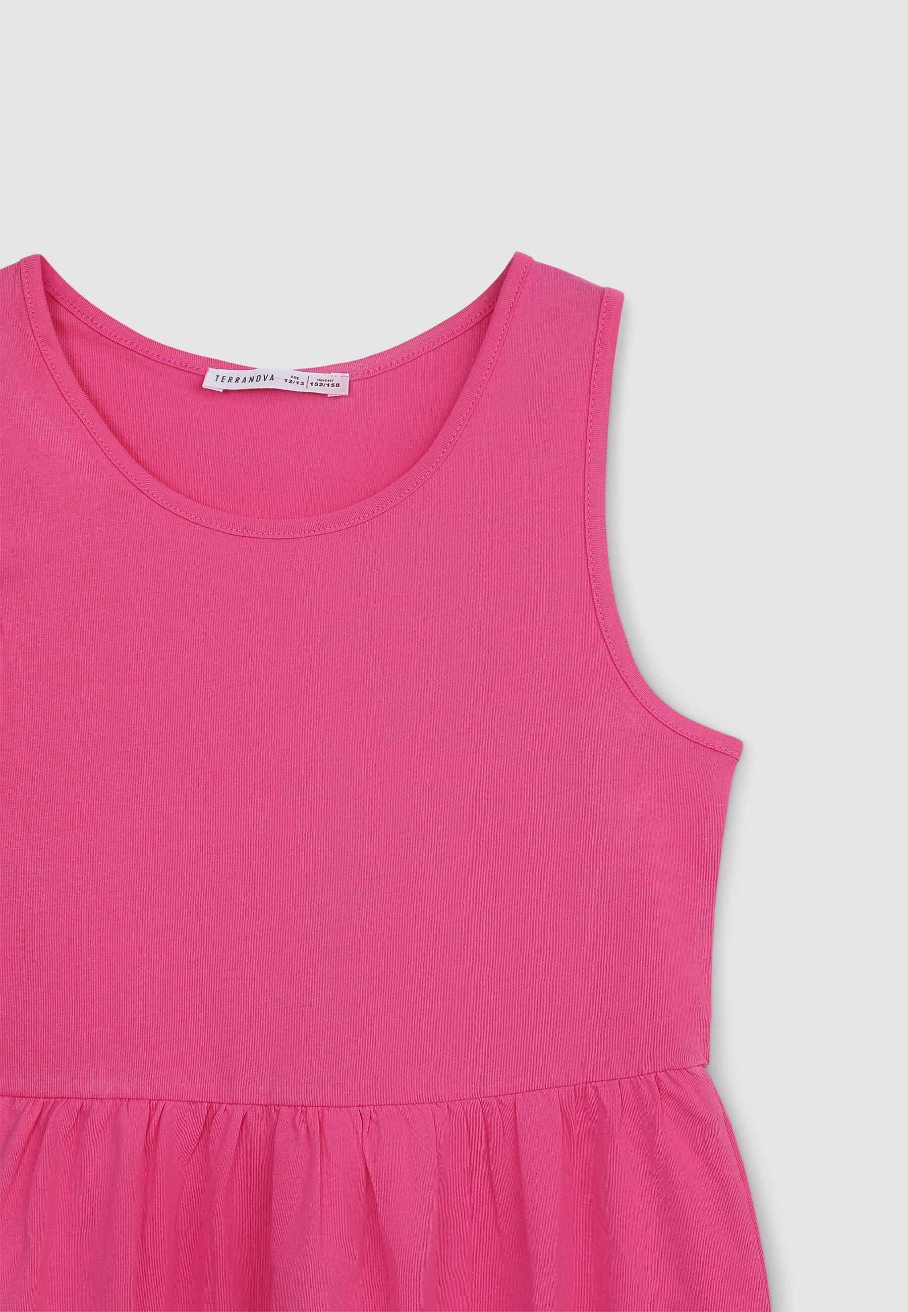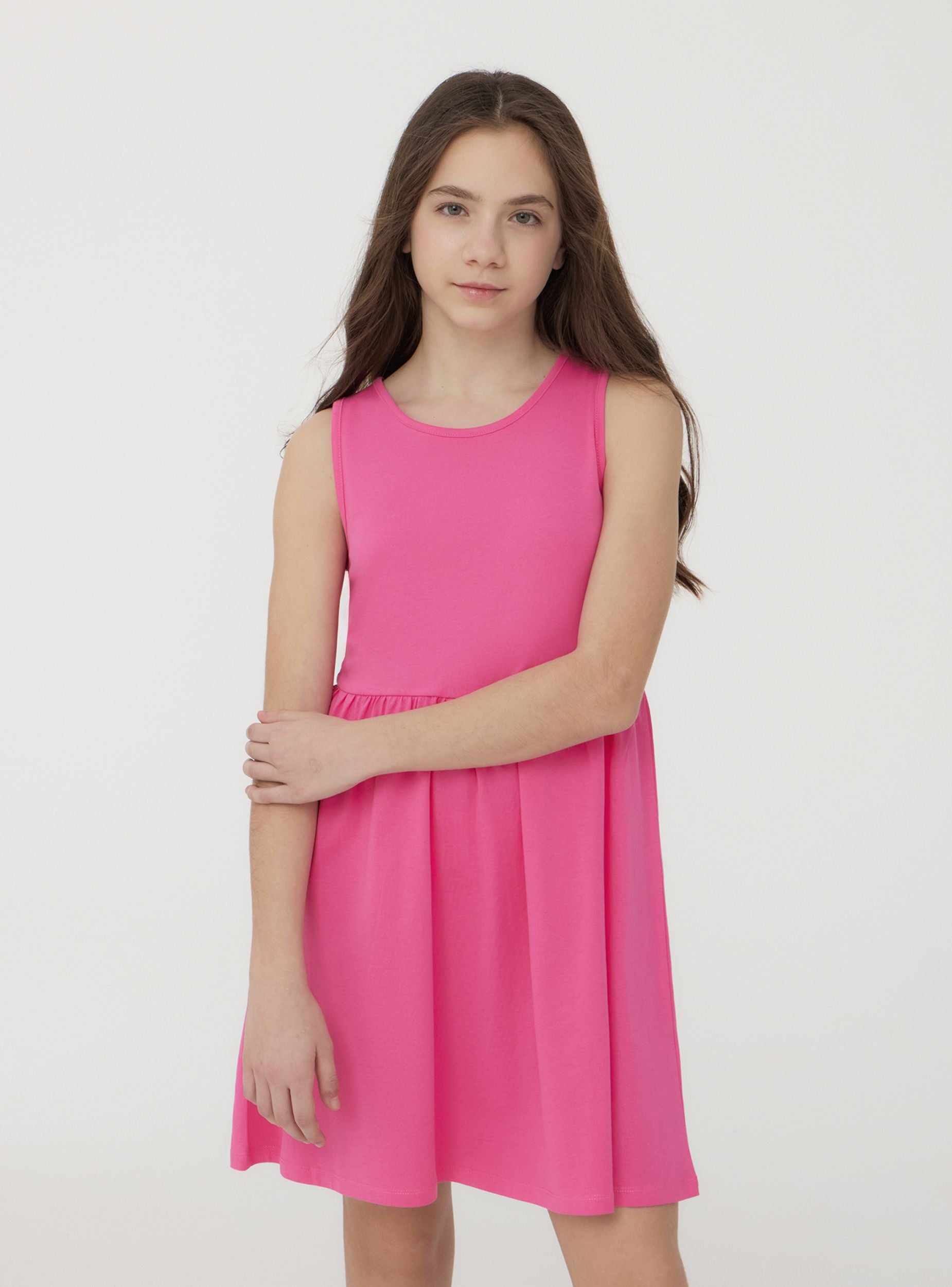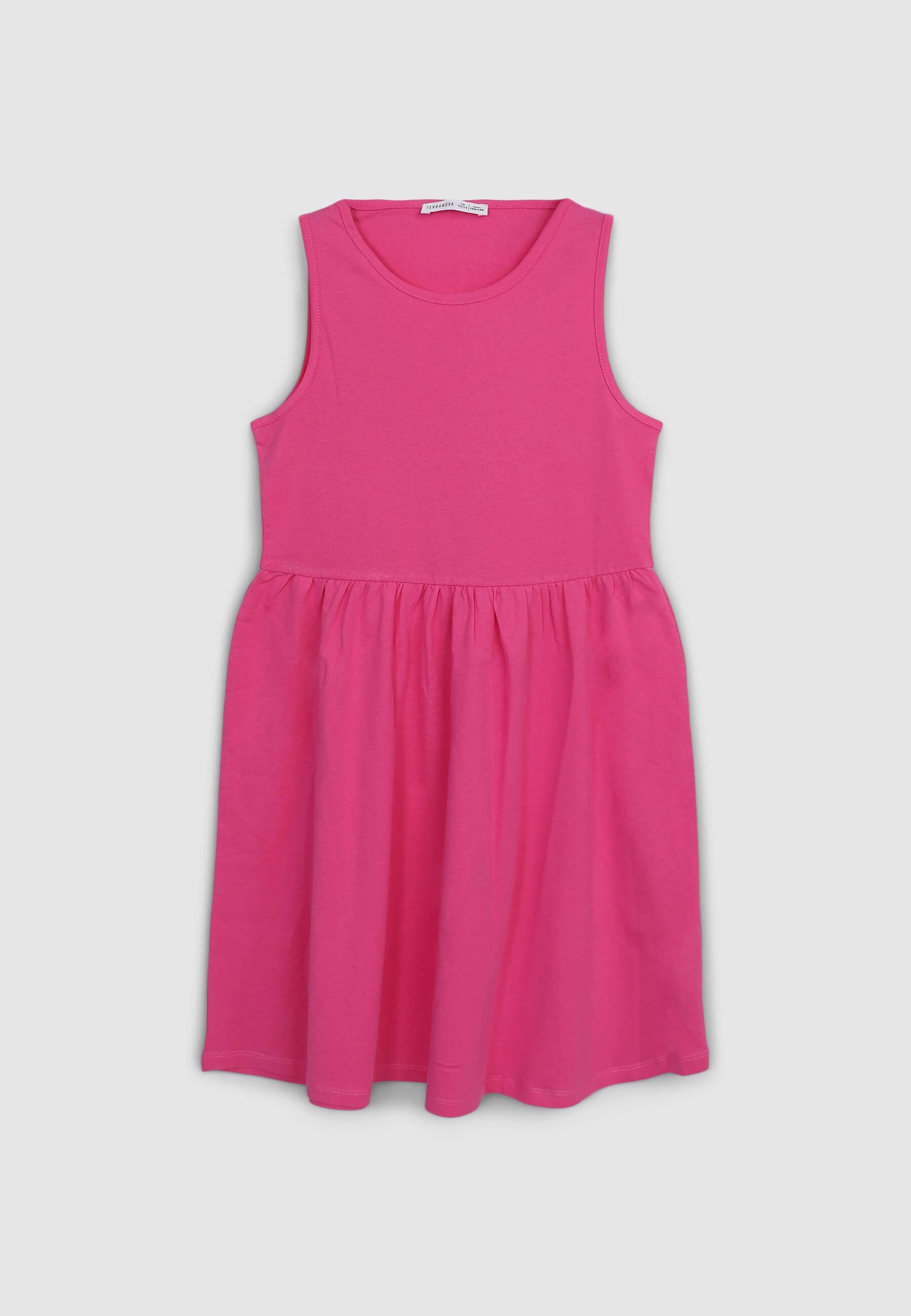 Abito da bambina dal design semplice e delicato, caratterizzato da una tinta unita che ne esalta l'eleganza. Smanicato per garantire freschezza e libertà di movimento, è realizzato in morbido jersey, ideale per le giornate estive. La linea fluida della gonna dona leggerezza e comfort, perfetta per accompagnare le bambine nelle loro avventure quotidiane.