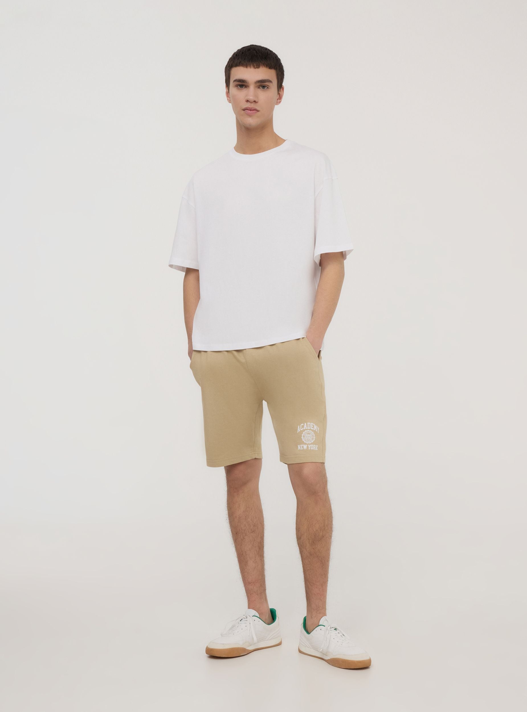 Bermuda da uomo a tinta unita, dal design casual e funzionale, arricchito da una stampa laterale che aggiunge un tocco sportivo. Dotato di pratiche tasche laterali e di una comoda tasca posteriore, è ideale per un look estivo rilassato. La coulisse regolabile in vita garantisce una vestibilità confortevole e personalizzabile, rendendoli perfetti per il tempo libero e per attività all'aperto. Perfetti da abbinare a una t-shirt per un look sportivo e disinvolto.Dettagli