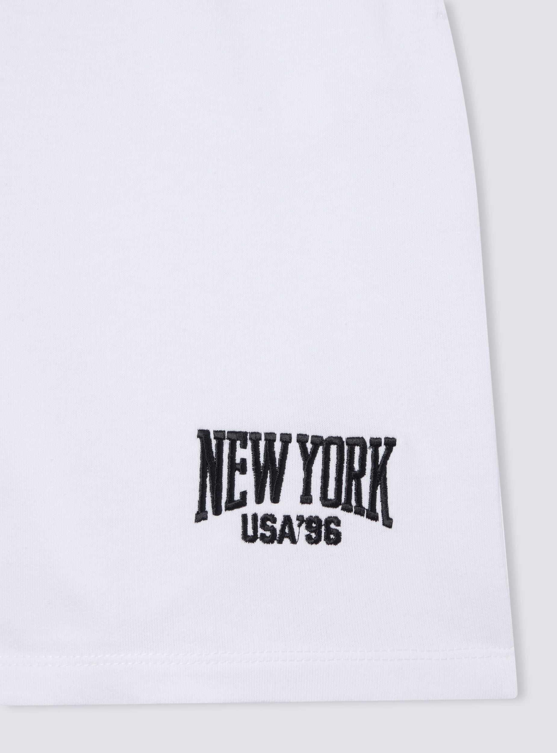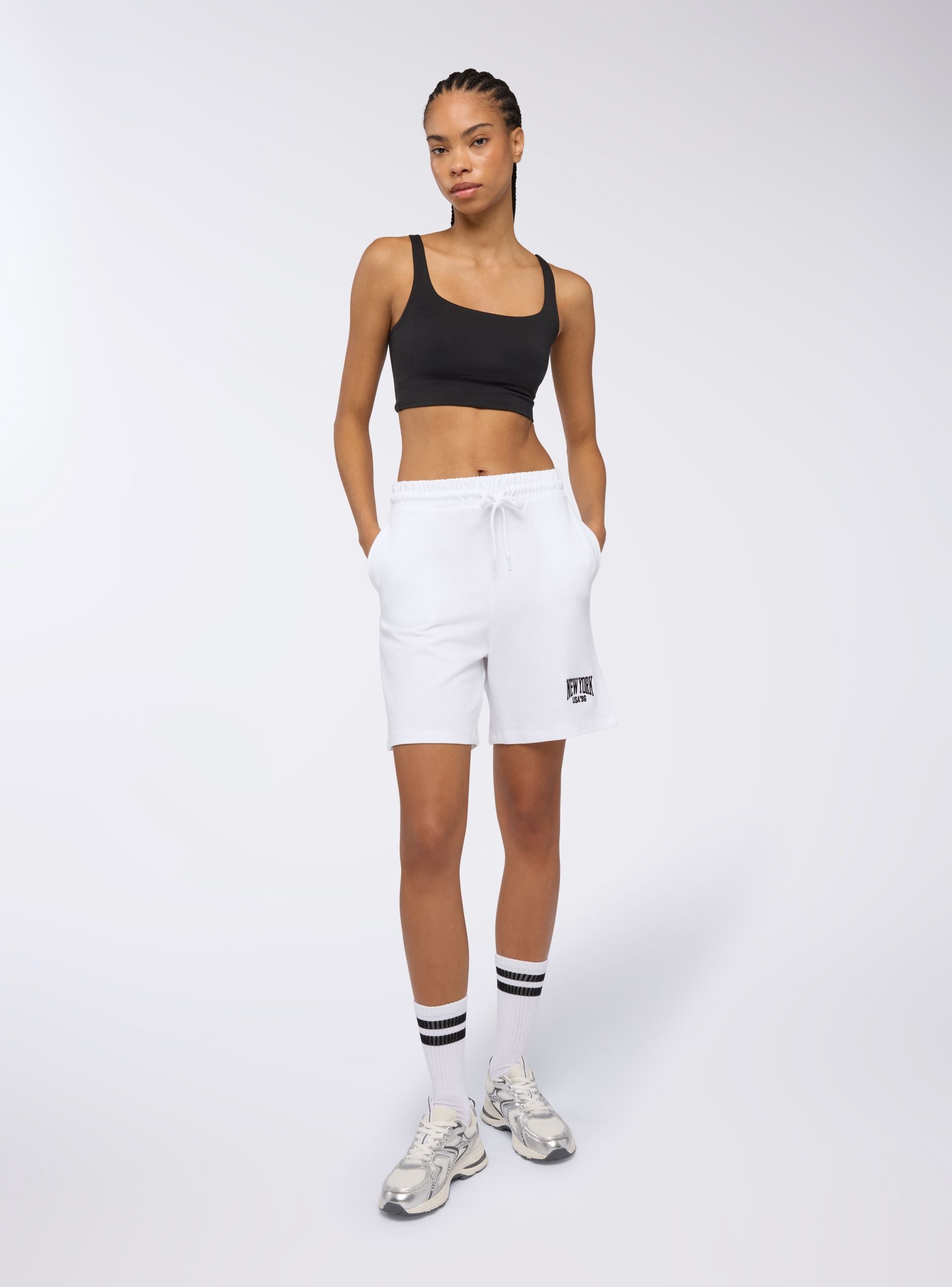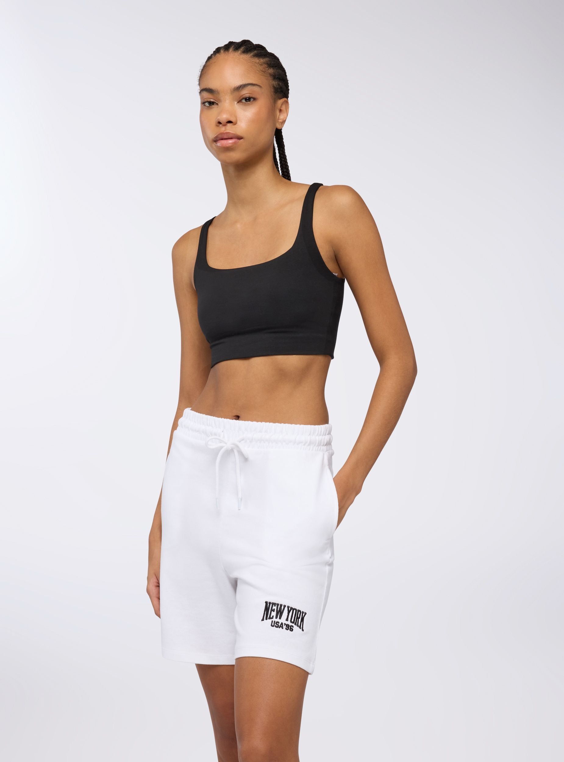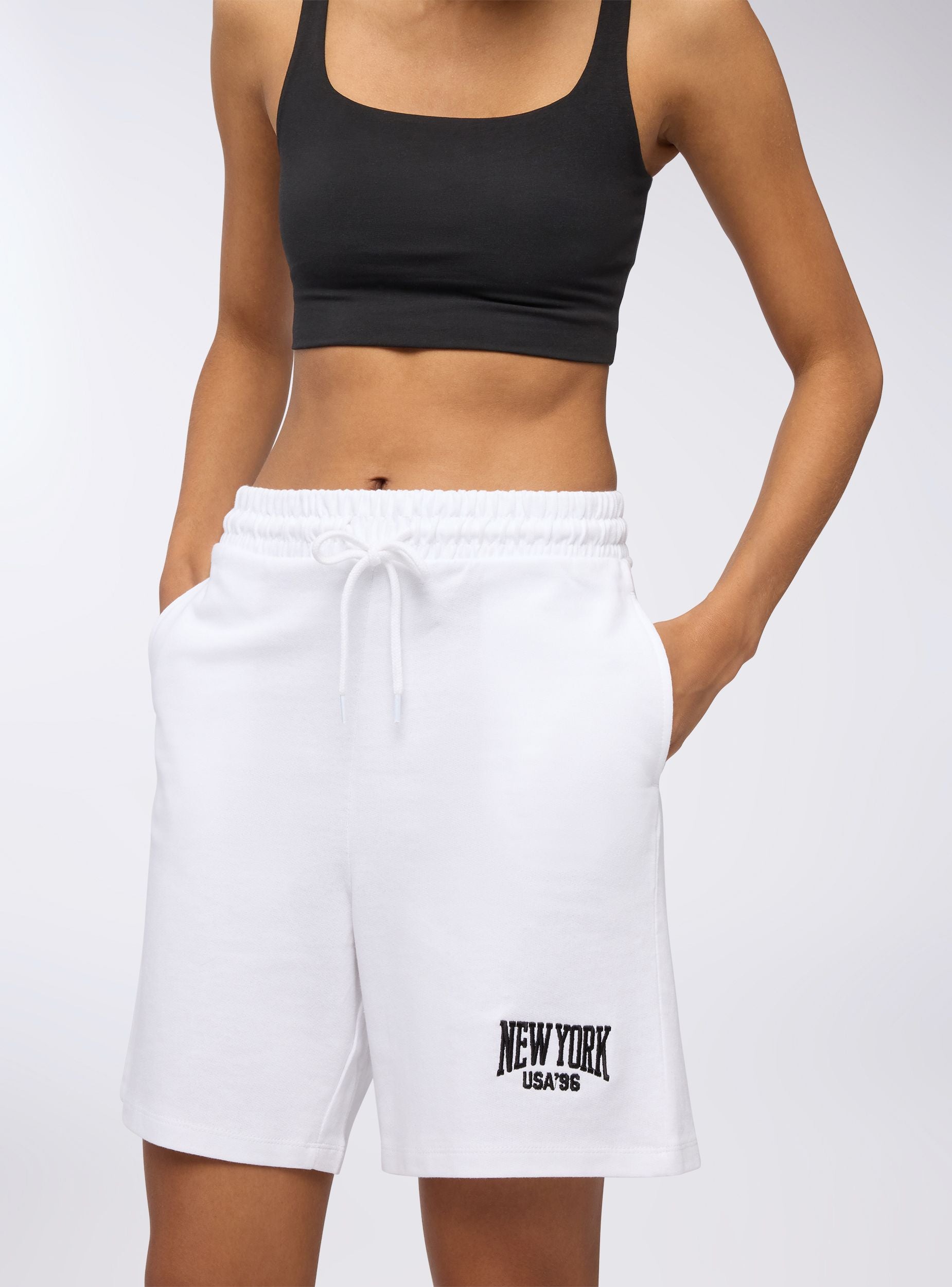 Pantaloncini da donna, modello bermuda, ideali per un look casual e rilassato. Perfetti per il tempo libero, si abbinano facilmente a t-shirt e sneakers per un outfit comodo e alla moda. Il design include una scritta ricamata in stile college americano che aggiungono un tocco di stile unico, rendendoli adatti per passeggiate in città o momenti di relax.Dettagli