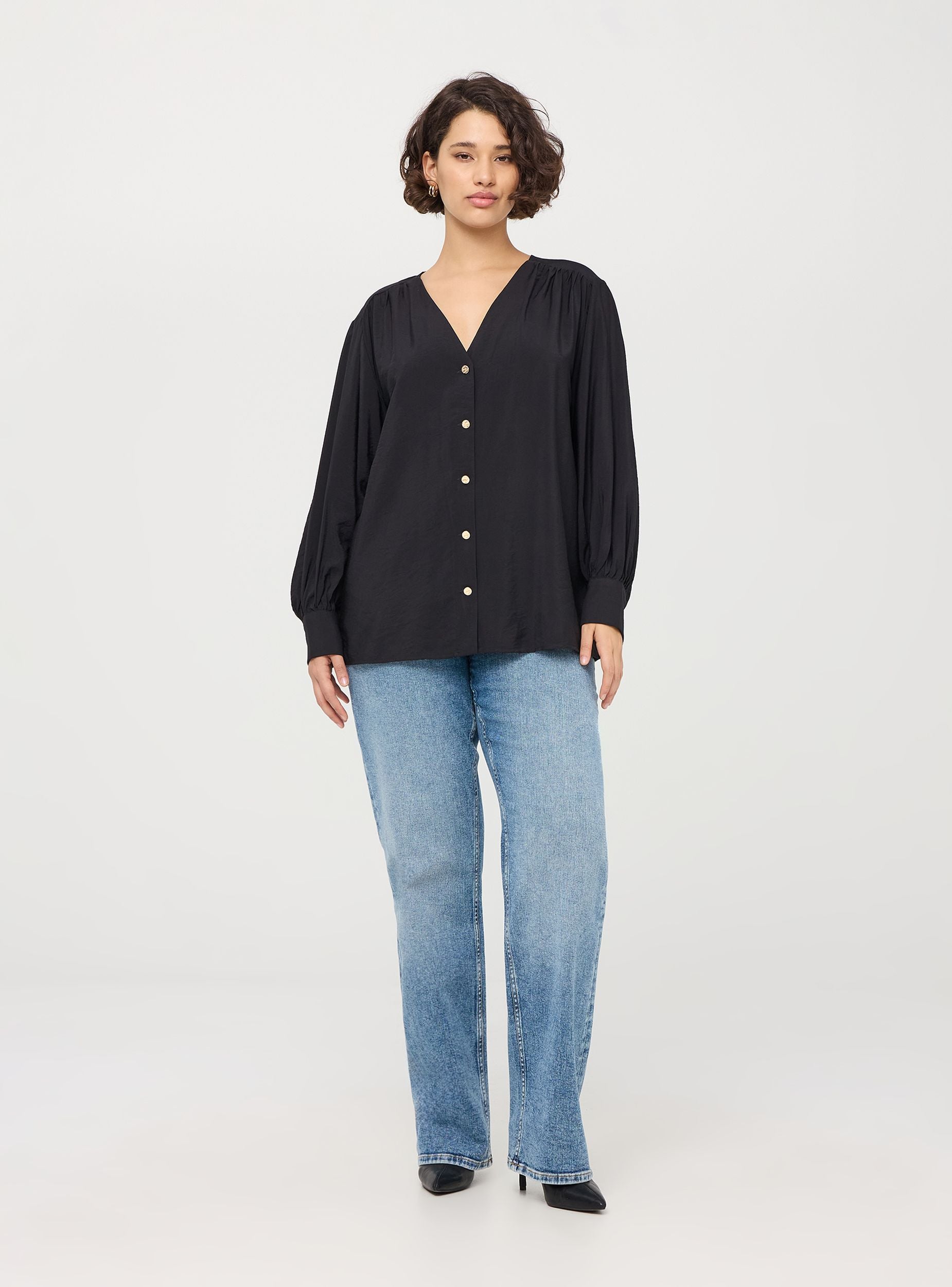 Blusa con scollo a v e bottoni