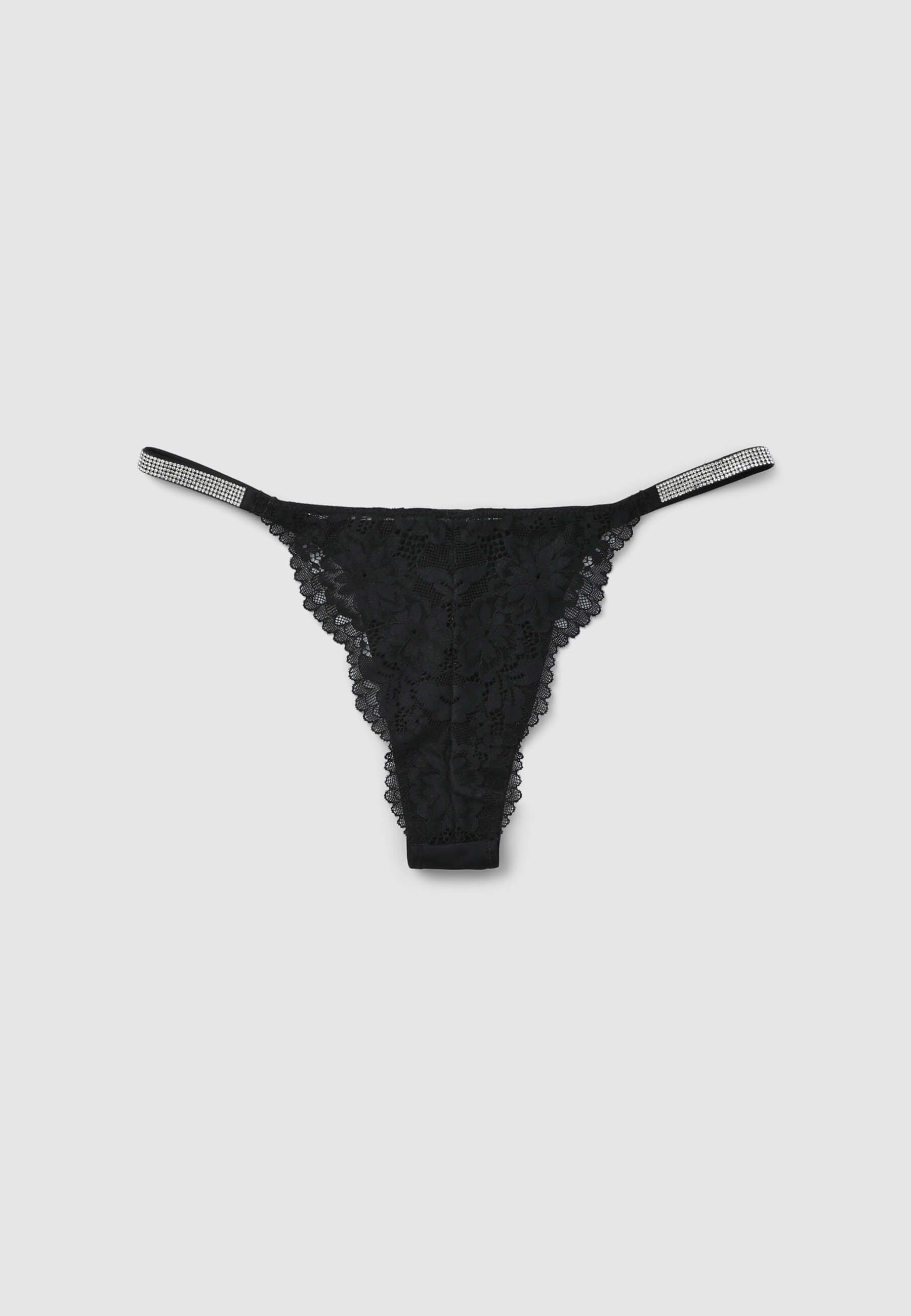 Slip da donna dal design elegante con un tocco di sensualità, caratterizzato da una forma brasiliana che valorizza le forme. Presenta dettagli in pizzo raffinato che aggiungono un tocco femminile e sofisticato. I fianchi sono impreziositi da strass brillanti che donano un tocco di luce e originalità. Un capo perfetto per chi cerca comfort e stile, ideale per aggiungere un tocco speciale al proprio guardaroba intimo.