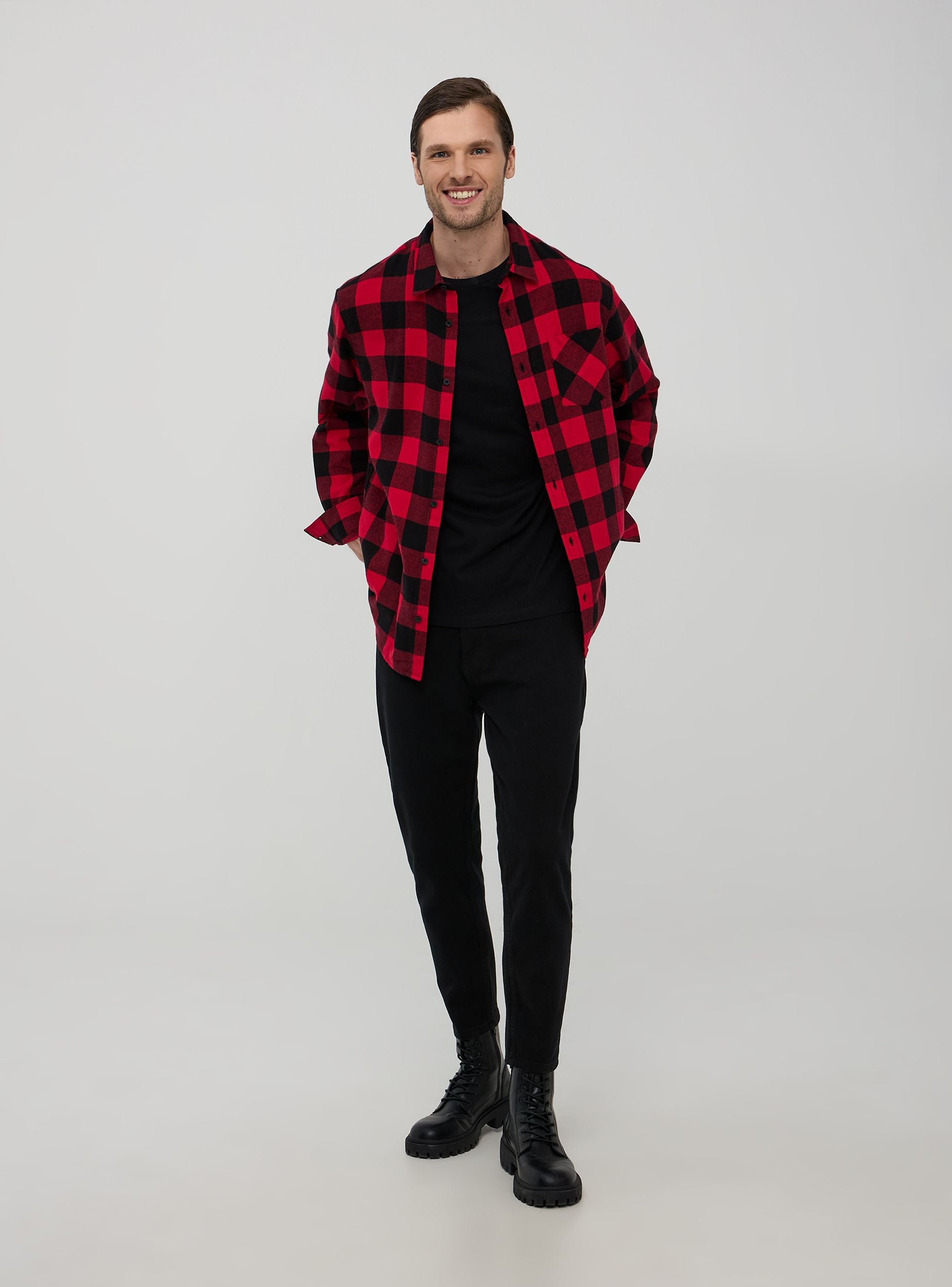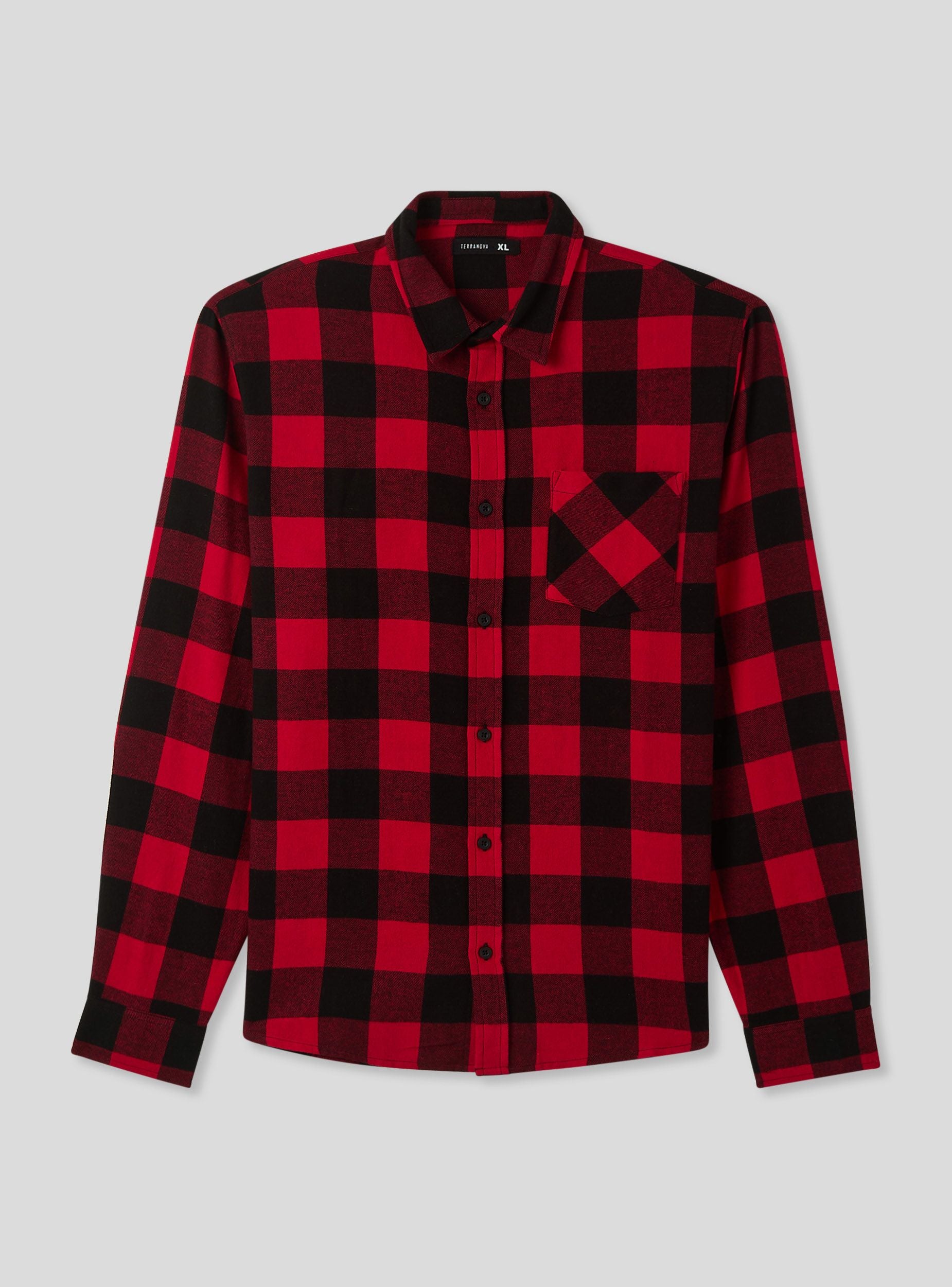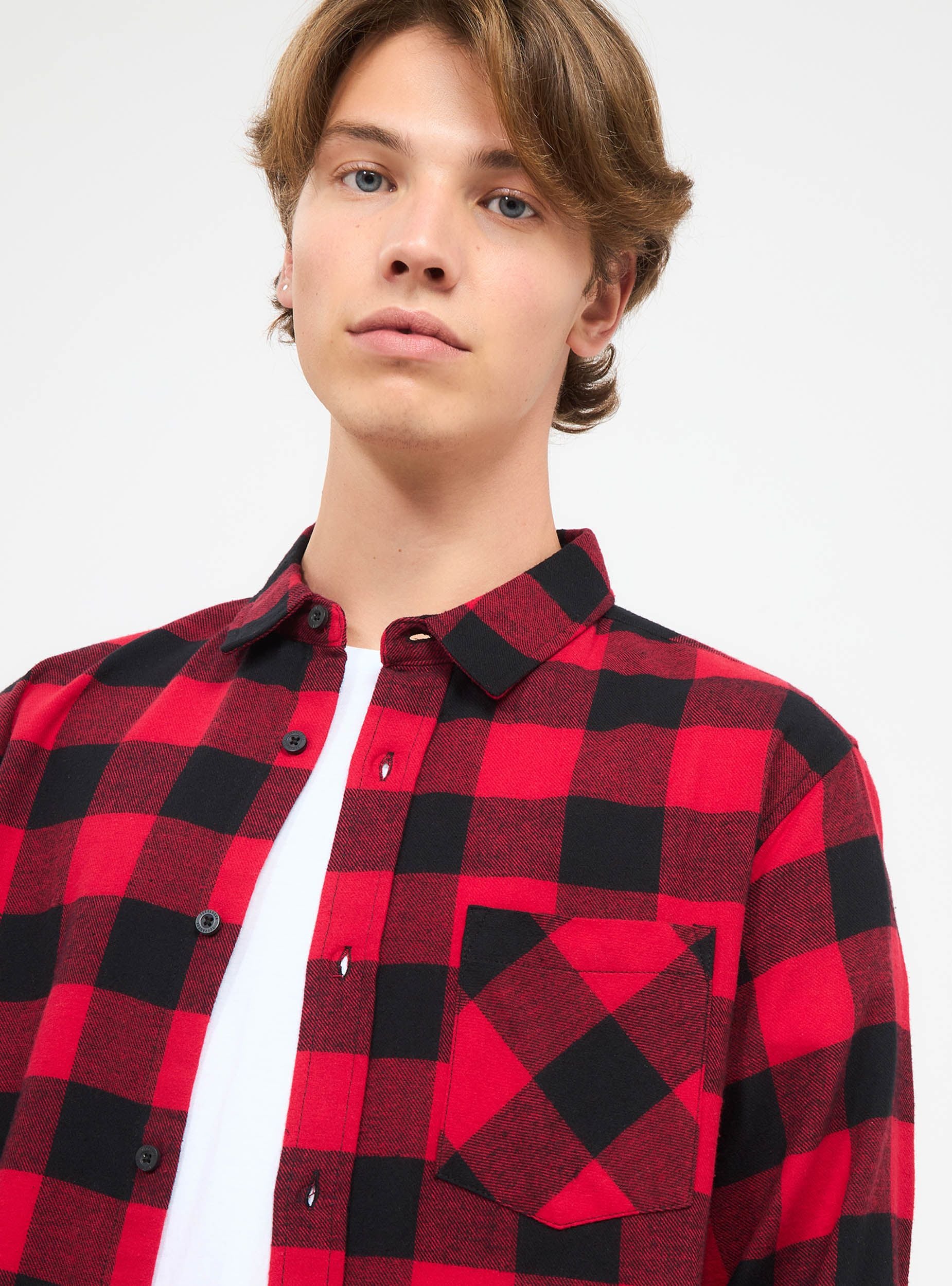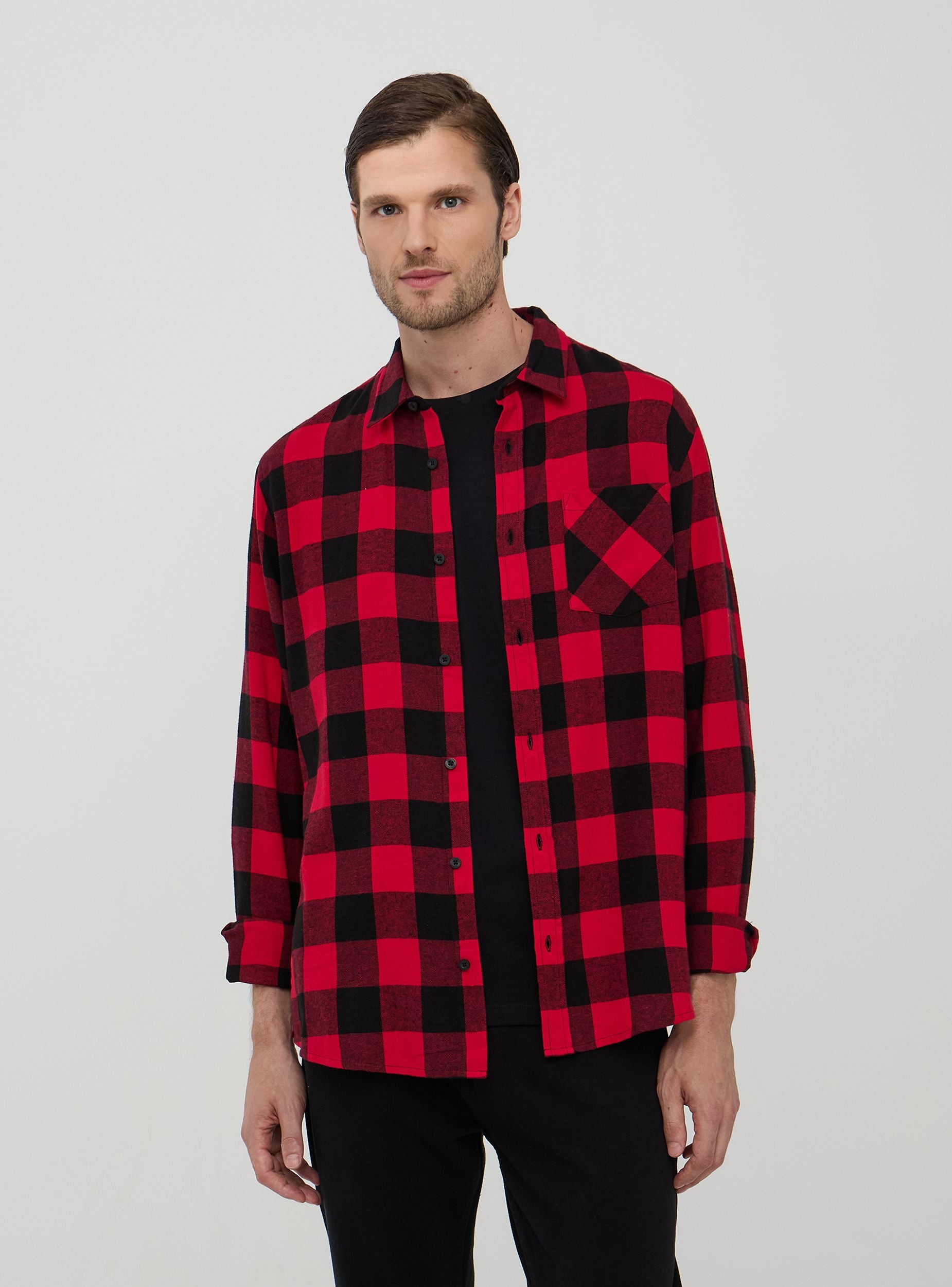 Camicia da uomo a manica lunga con fantasia a quadri, caratterizzata da un tessuto in flanella e una vestibilità regolare. Il capo presenta un colletto tradizionale e una chiusura frontale con bottoni. Sul petto, una tasca applicata aggiunge un tocco di praticità e stile. Ideale per un look casual ma curato, perfetto per essere indossato da solo o abbinato a strati per un outfit versatile.