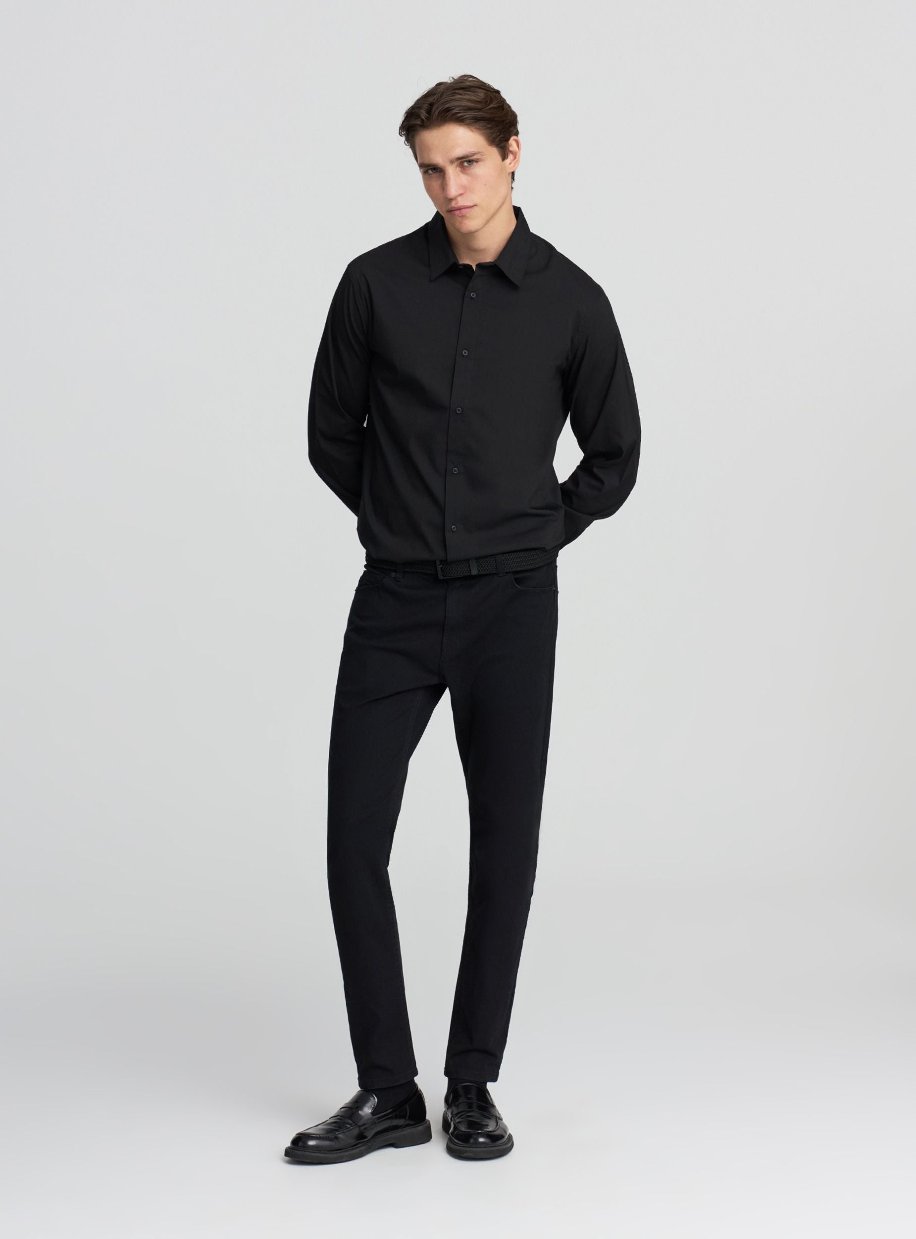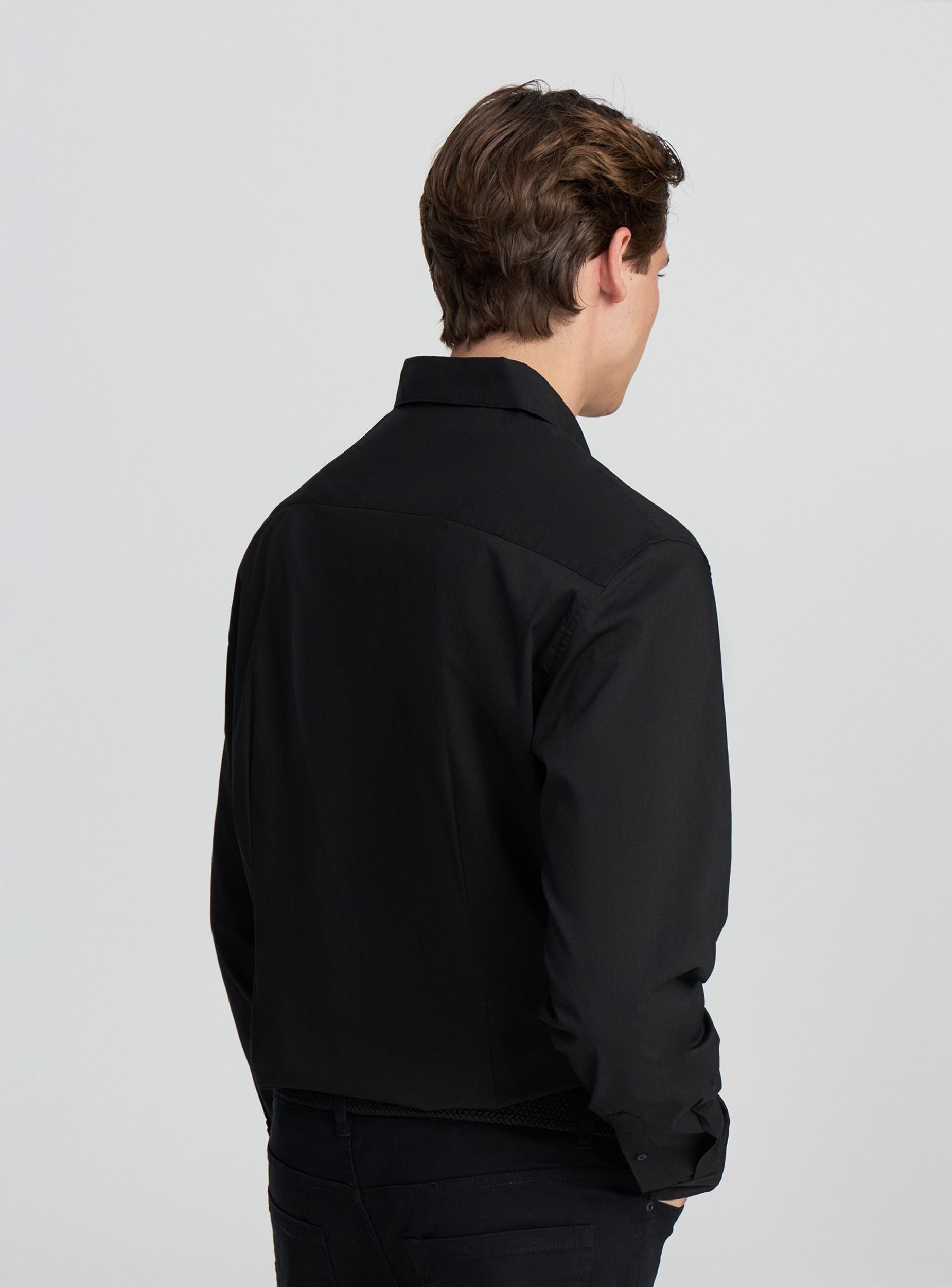 Camicia da uomo a tinta unita ideale per occasioni formali e professionali. Il design presenta un colletto classico, maniche lunghe con polsini abbottonati e chiusura frontale con bottoni. Vestibilità regolare che assicura comfort durante tutta la giornata. Perfetta da indossare con pantaloni eleganti o sotto una giacca per un look curato e versatile.