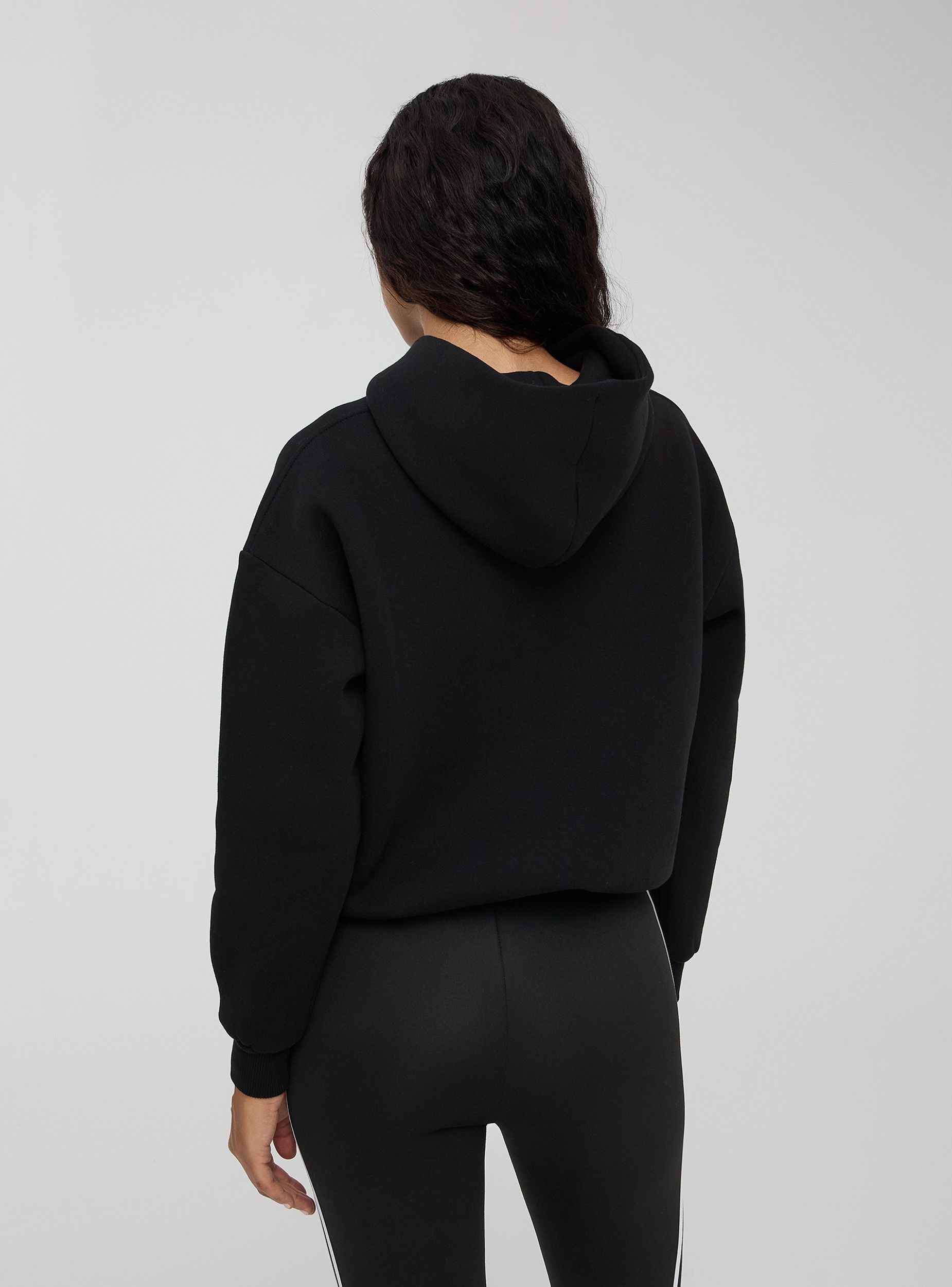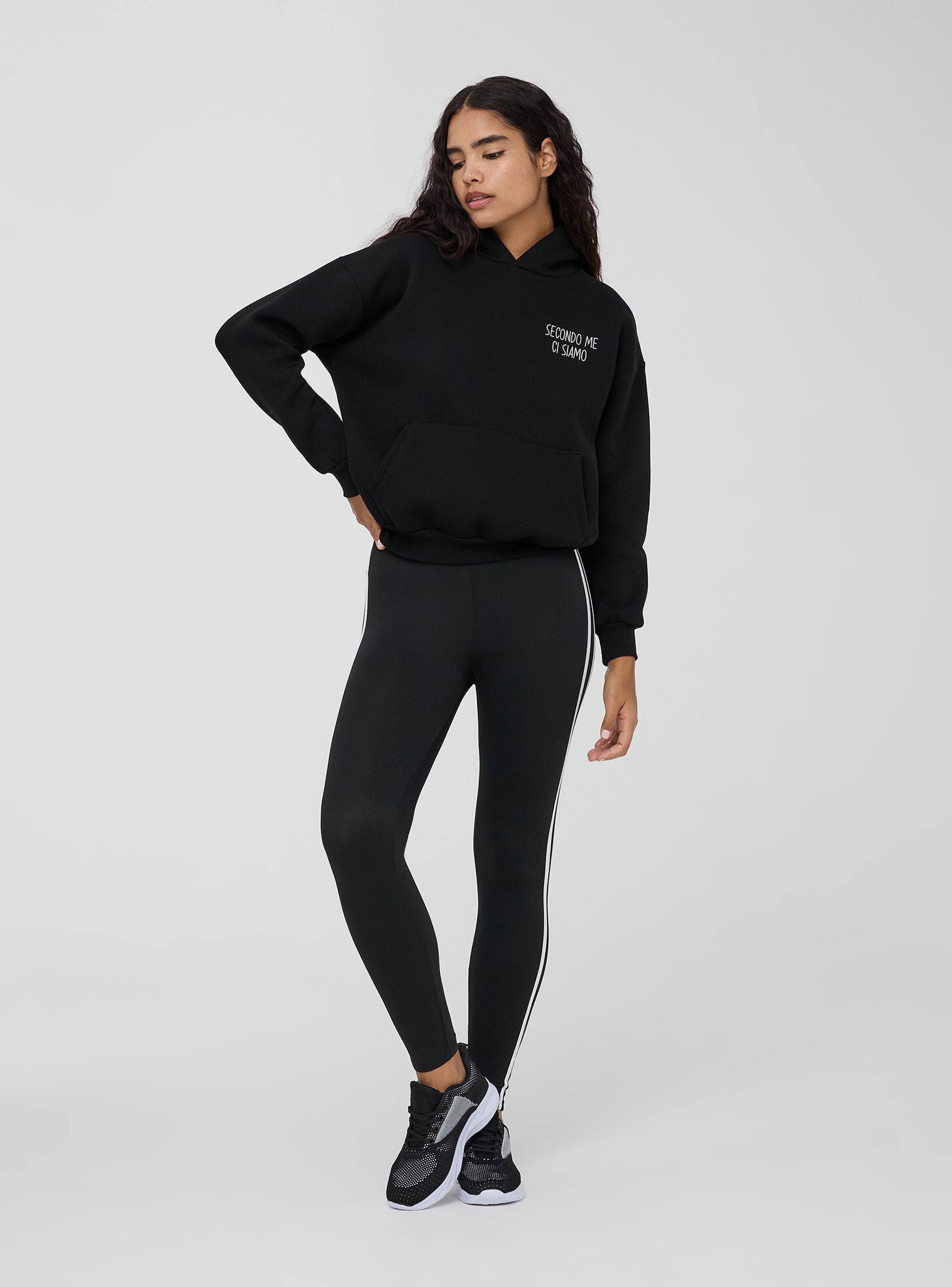 Felpa da donna, modello chiuso dotato di cappuccio, a maniche lunghe, con scritta laterale. Vestibilità regular. Perfetta per outfit casual.