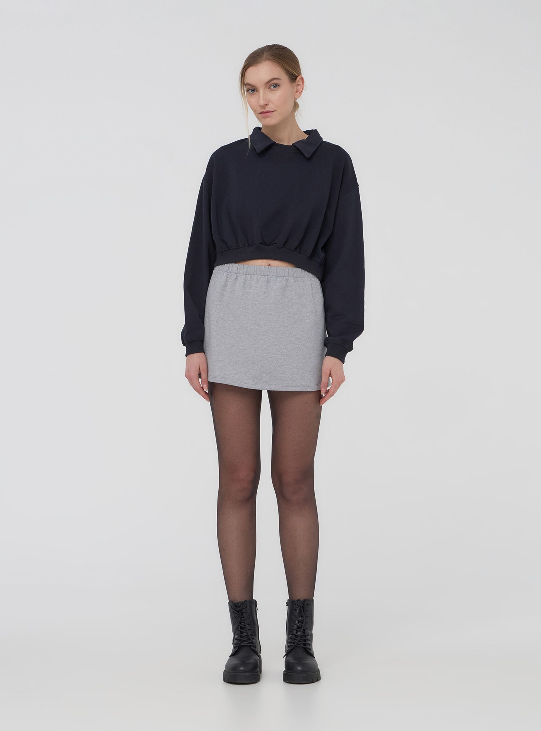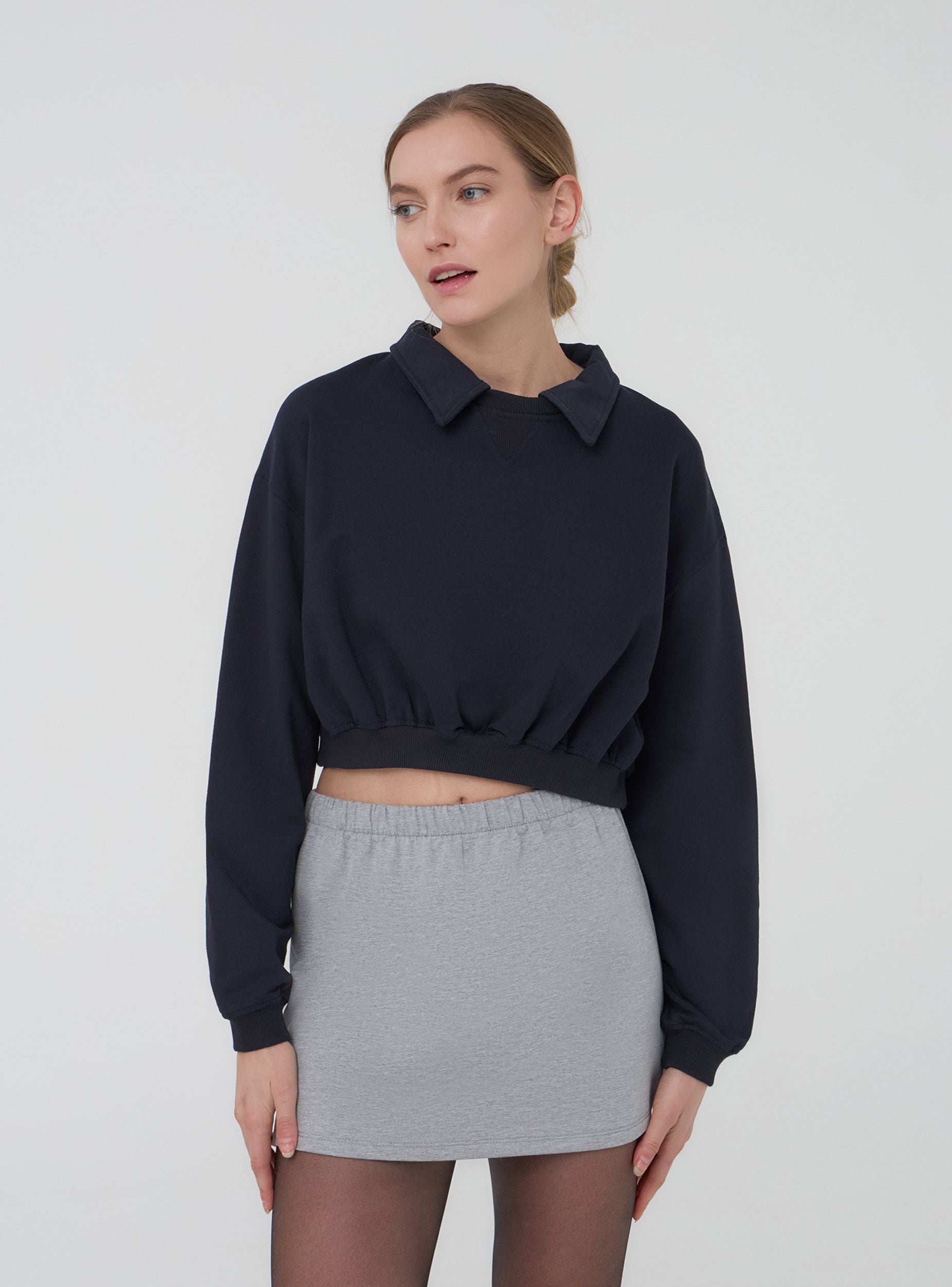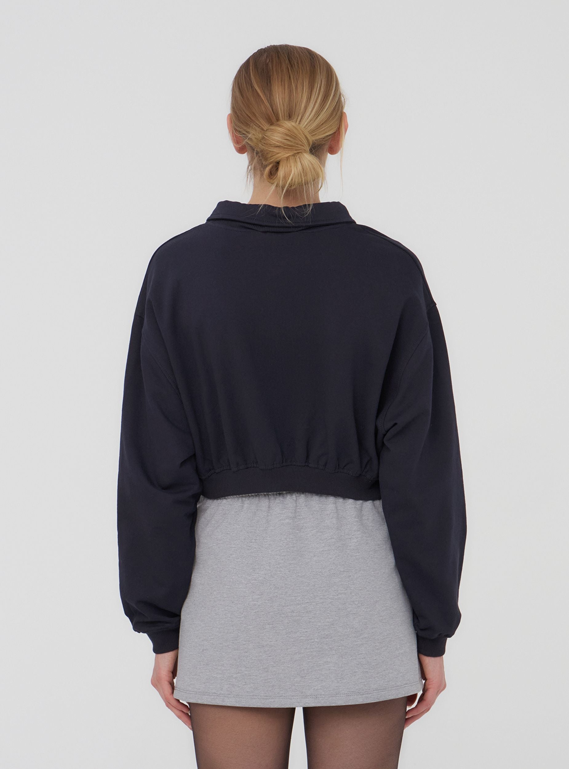 Felpa crop con colletto polo