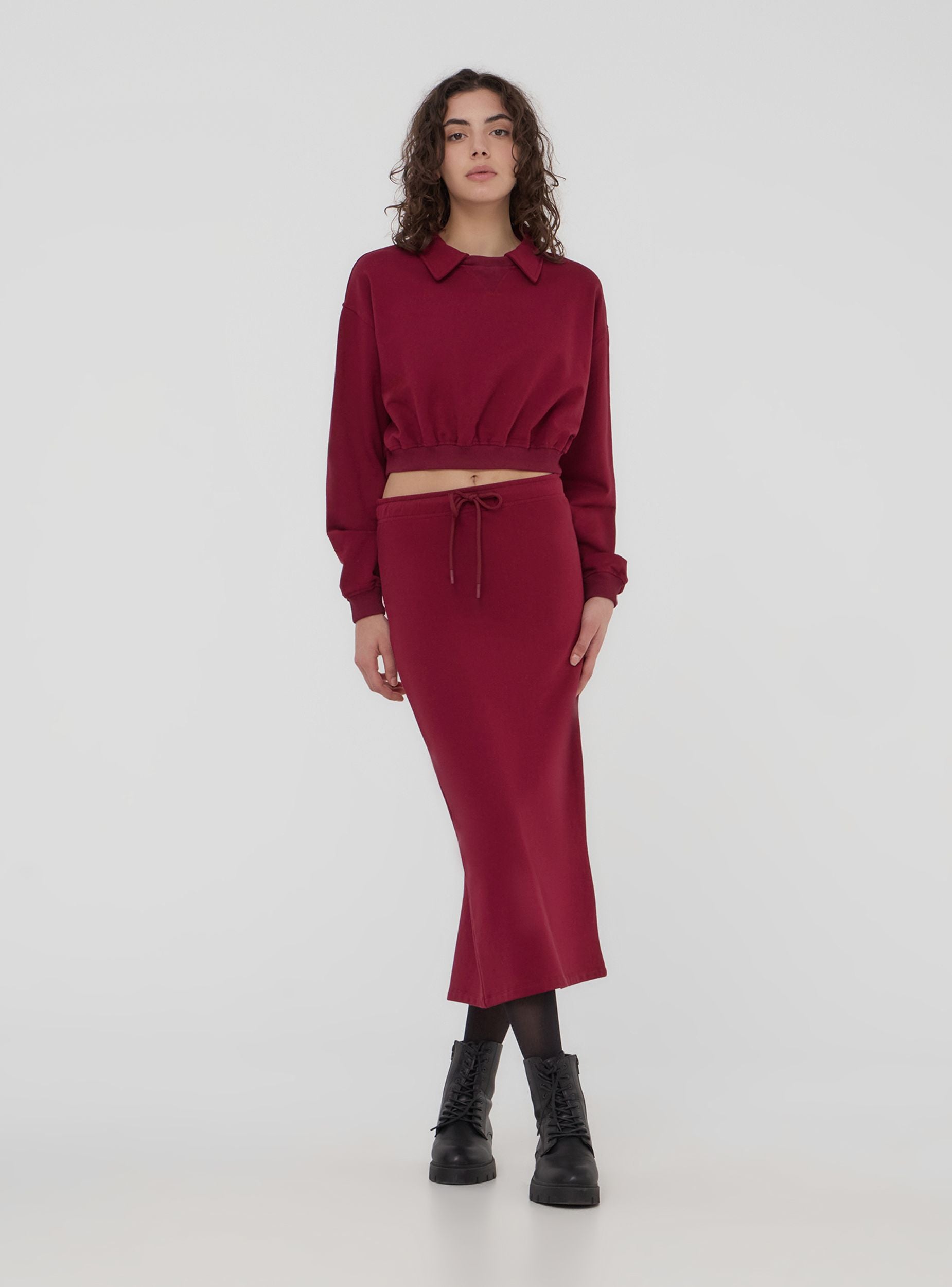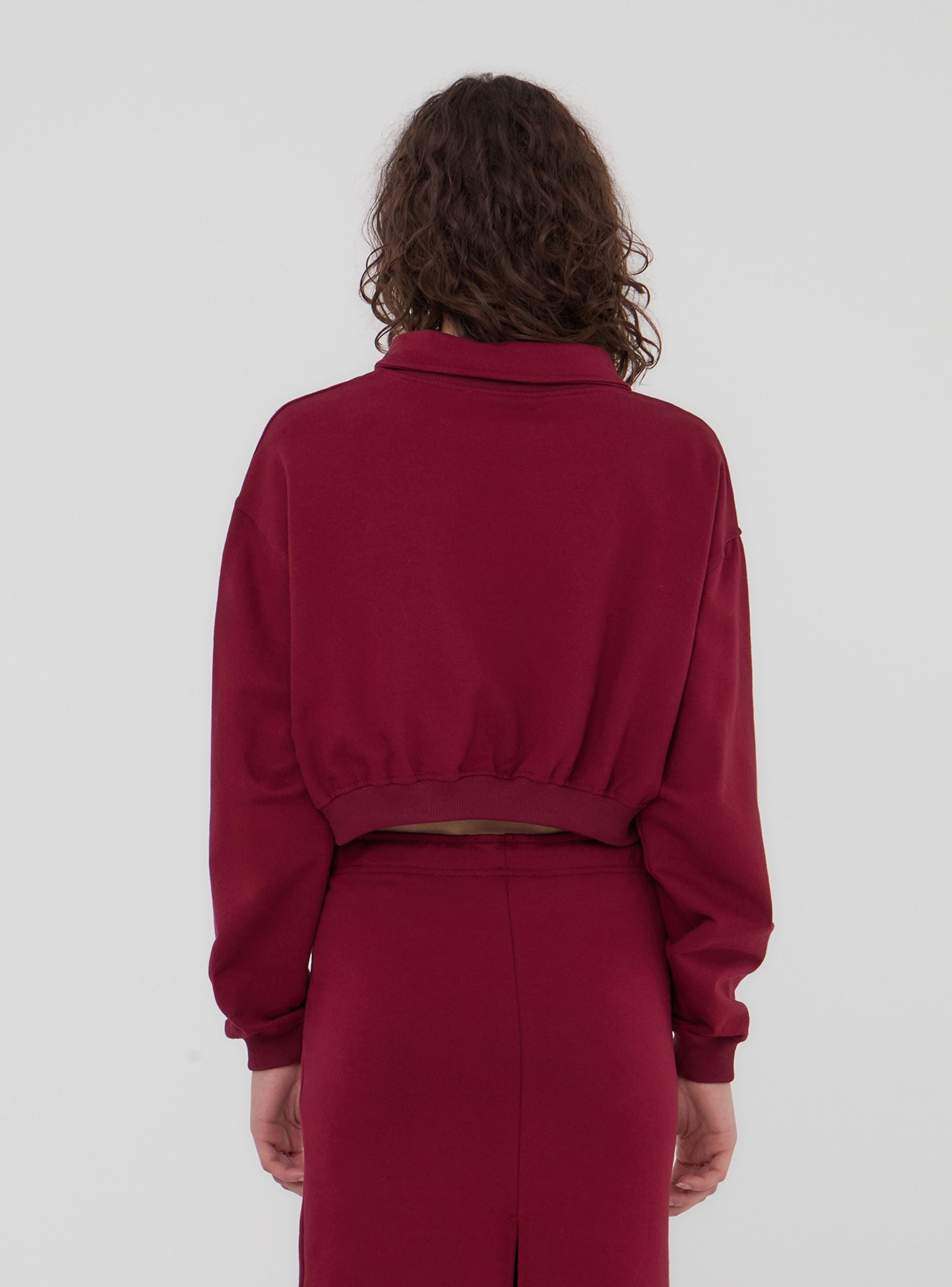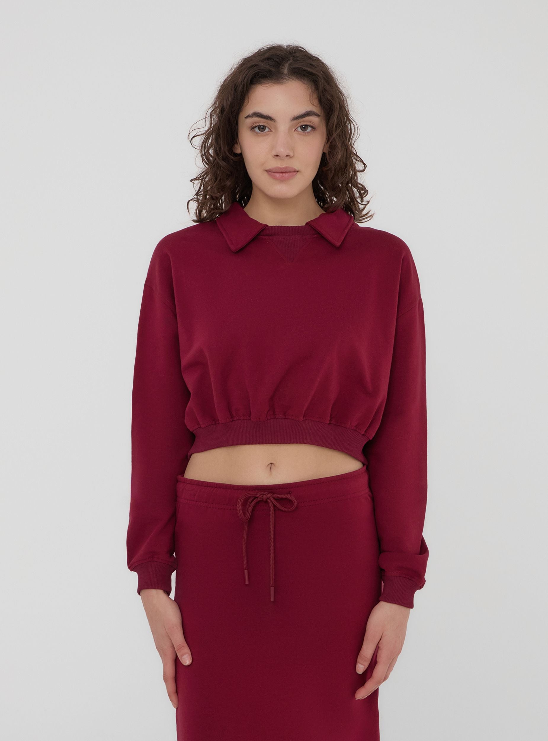Felpa da donna dal taglio crop, perfetta per un look casual e di tendenza. Questo modello presenta un colletto a polo e una linea morbida che dona comfort e stile. Le maniche lunghe con i polsini sul fondo valorizzano la figura, rendendola facile da abbinare con jeans a vita alta o gonne per un outfit urbano e dinamico. Ideale per aggiungere un tocco sportivo al guardaroba, questa felpa è un must-have versatile e contemporaneo, pensata per chi ama vestire con personalità e comfort.