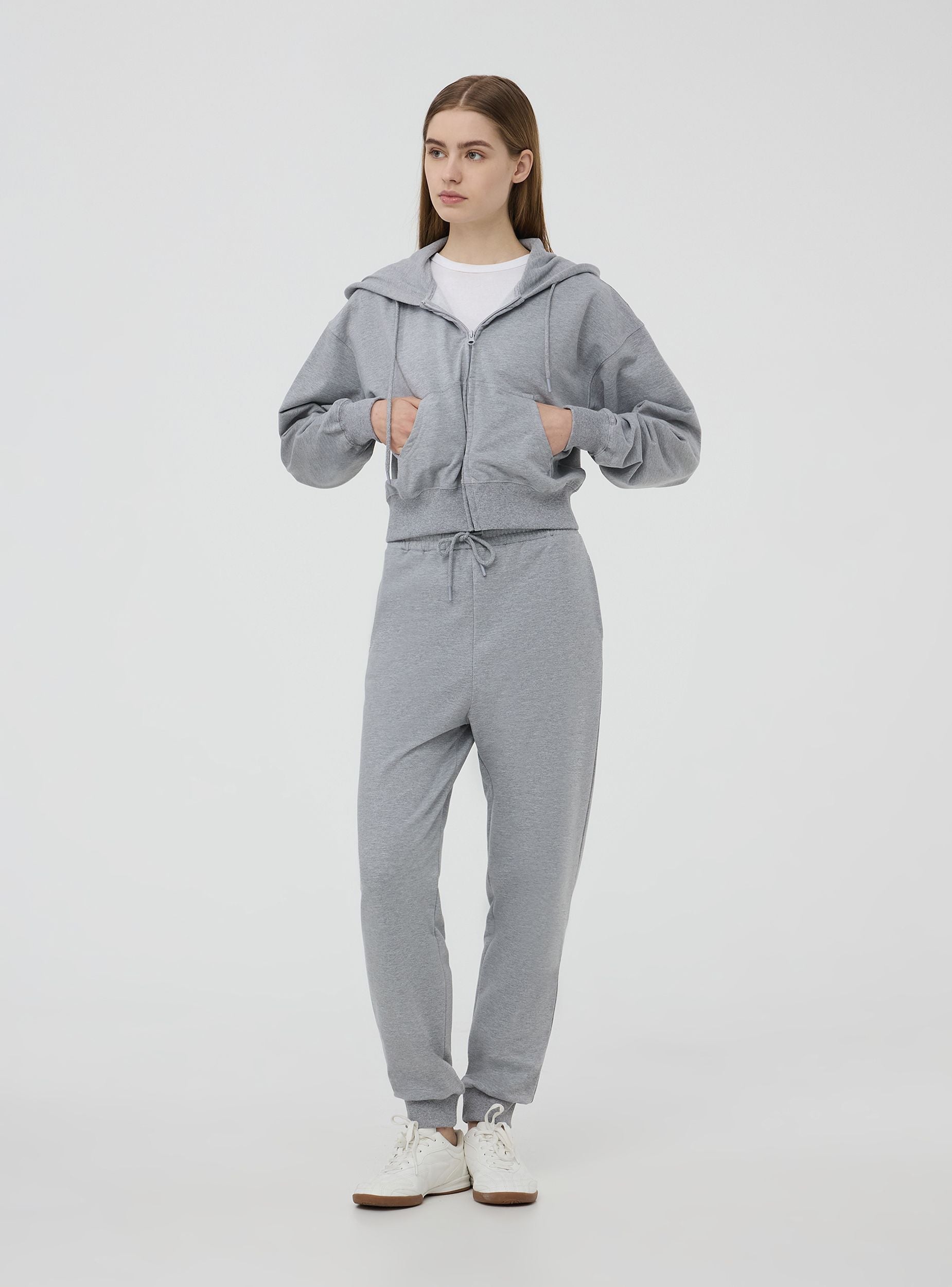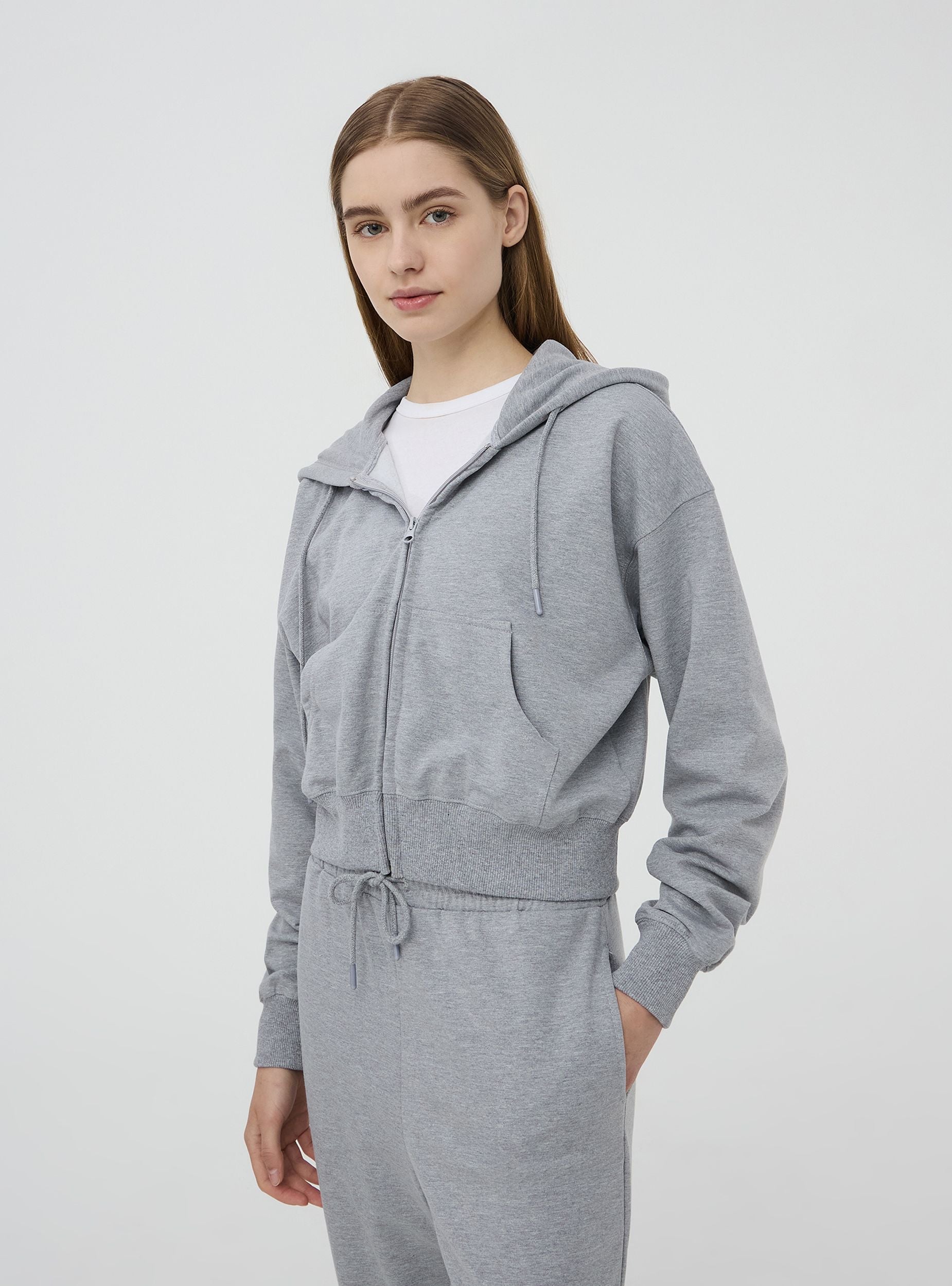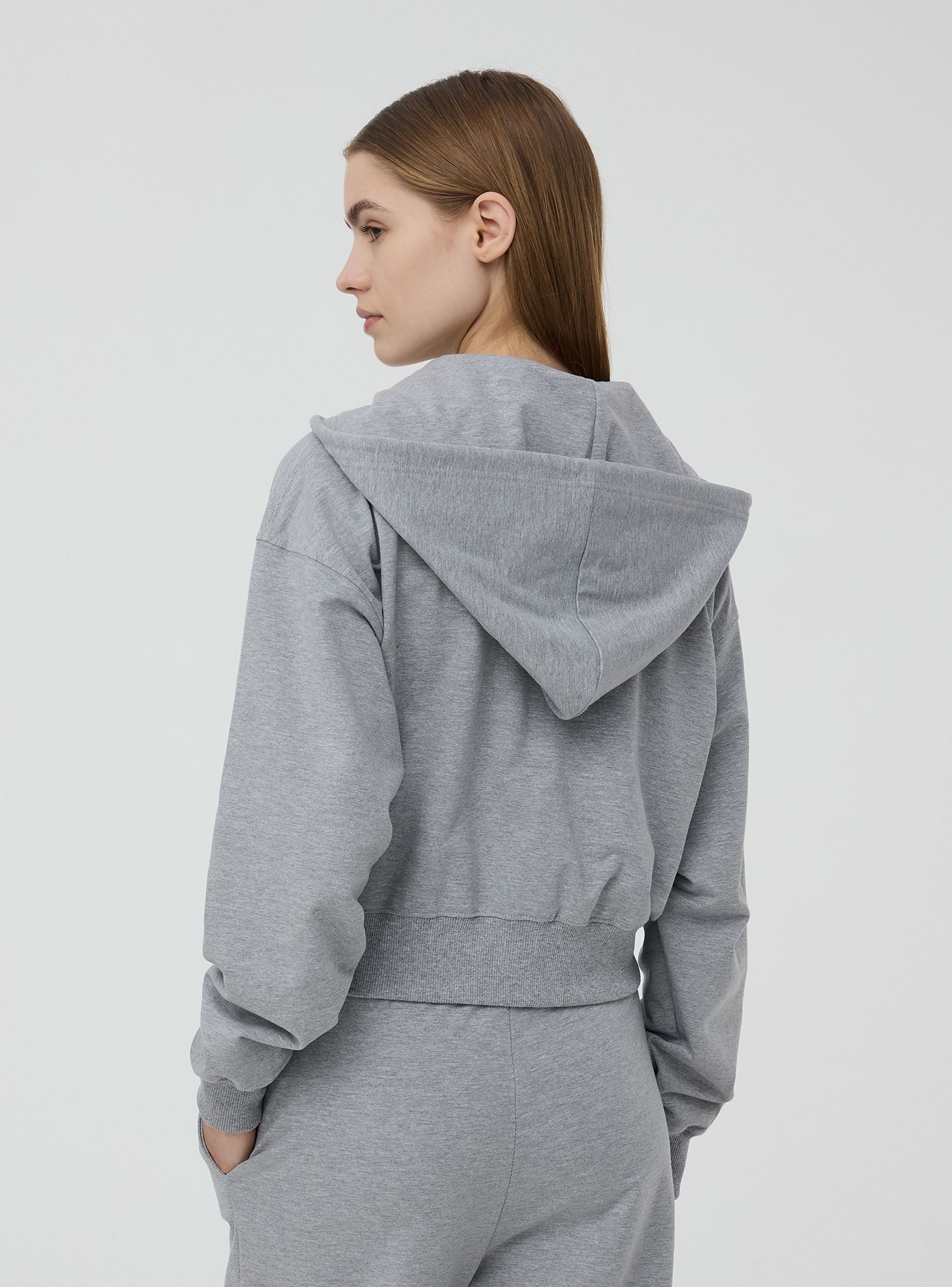 Felpa da donna dal taglio crop e vestibilità over. Modello dotato di cappuccio con coulisse e chiusura frontale con zip. Presenta tasche frontali a marsupio. Il tessuto a tinta unita la rende un capo basic indispensabile da avere nell'armadio.