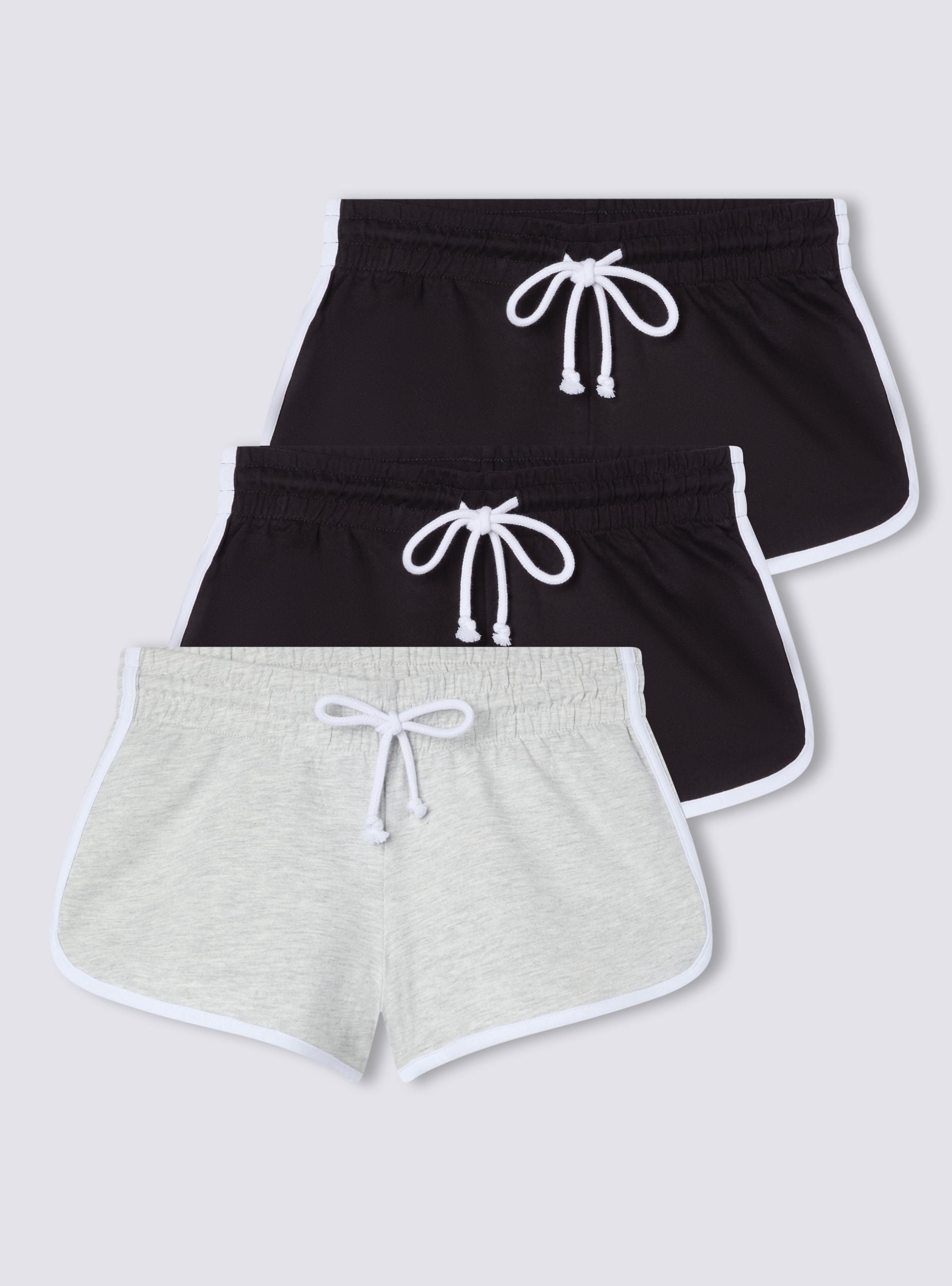 Confezione composta da 3 pantaloncini della tuta da donna, ideali per il tempo libero, lo sport o un look casual nelle giornate più calde. Realizzati in tessuto leggero, assicurano comfort in ogni occasione. Il design corto e moderno è arricchito da profili a contrasto che donano un tocco sportivo ed elegante. La pratica coulisse regolabile in vita garantisce una vestibilità personalizzata e stabile. Perfetti per passeggiate, attività fisica o relax, questi pantaloncini rappresentano un capo versatile e indispensabile per la stagione estiva.