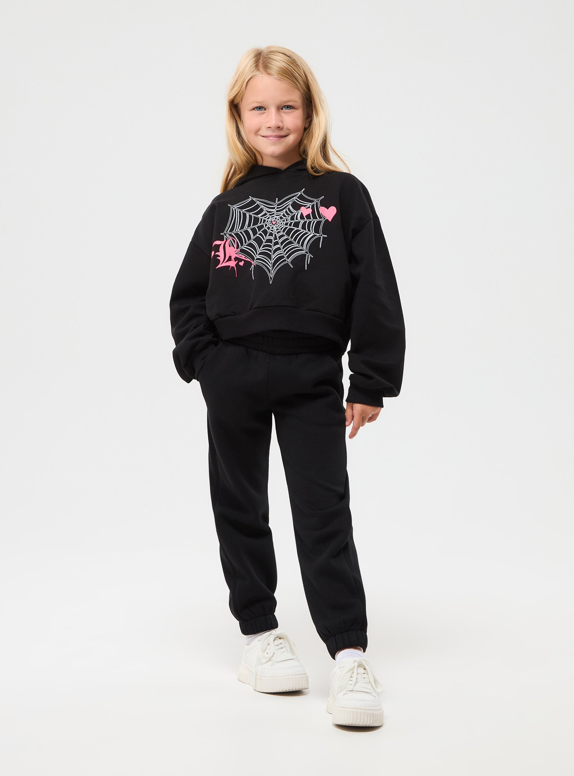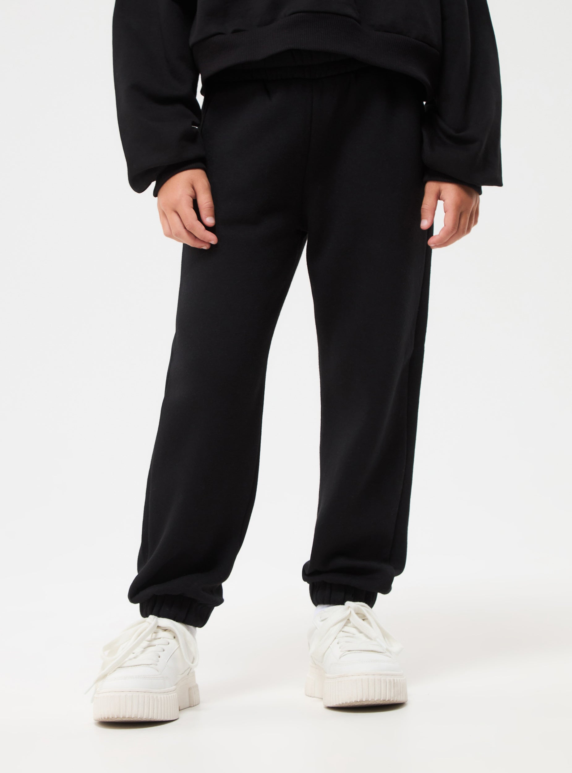 Pantaloni tuta lungo da bambina. Elastico in vita, polsino sul fondo. Tessuto pesante in tinta unita, Vestibilità ampia.Dettagli