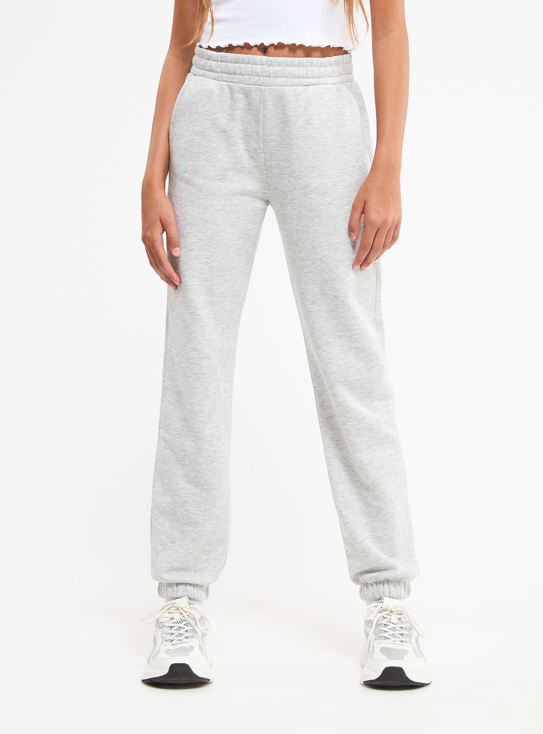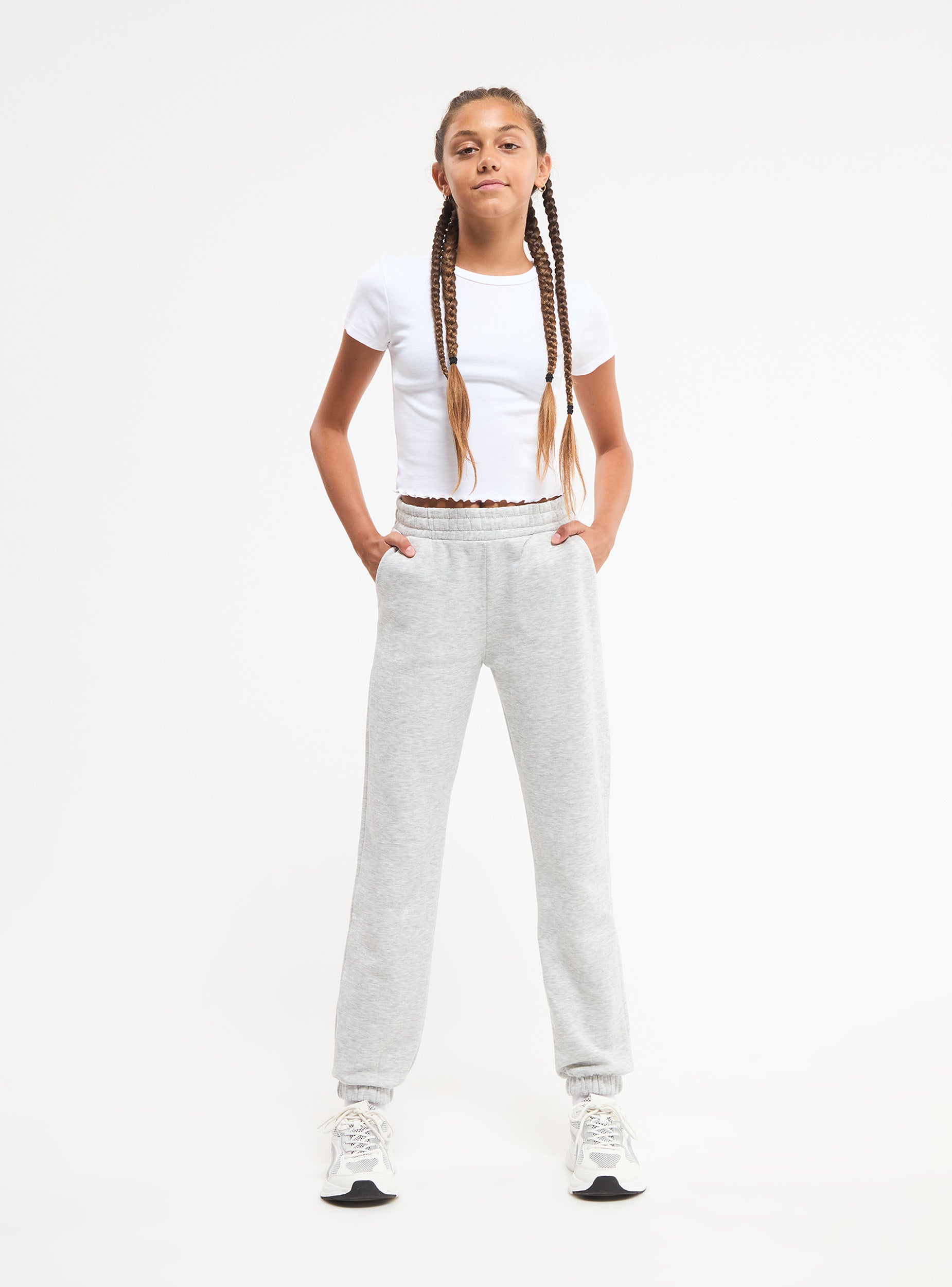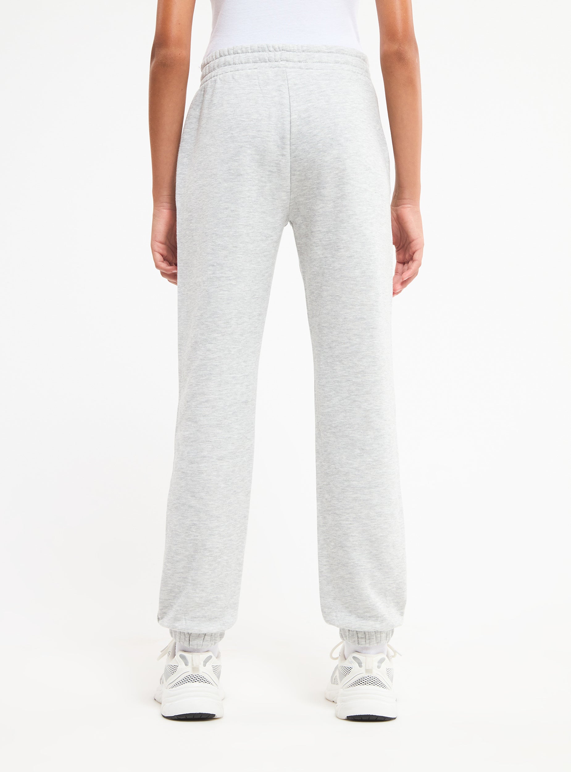 Pantaloni tuta lungo da bambina. Elastico in vita, polsino sul fondo. Tessuto pesante in tinta unita, Vestibilità  ampia.