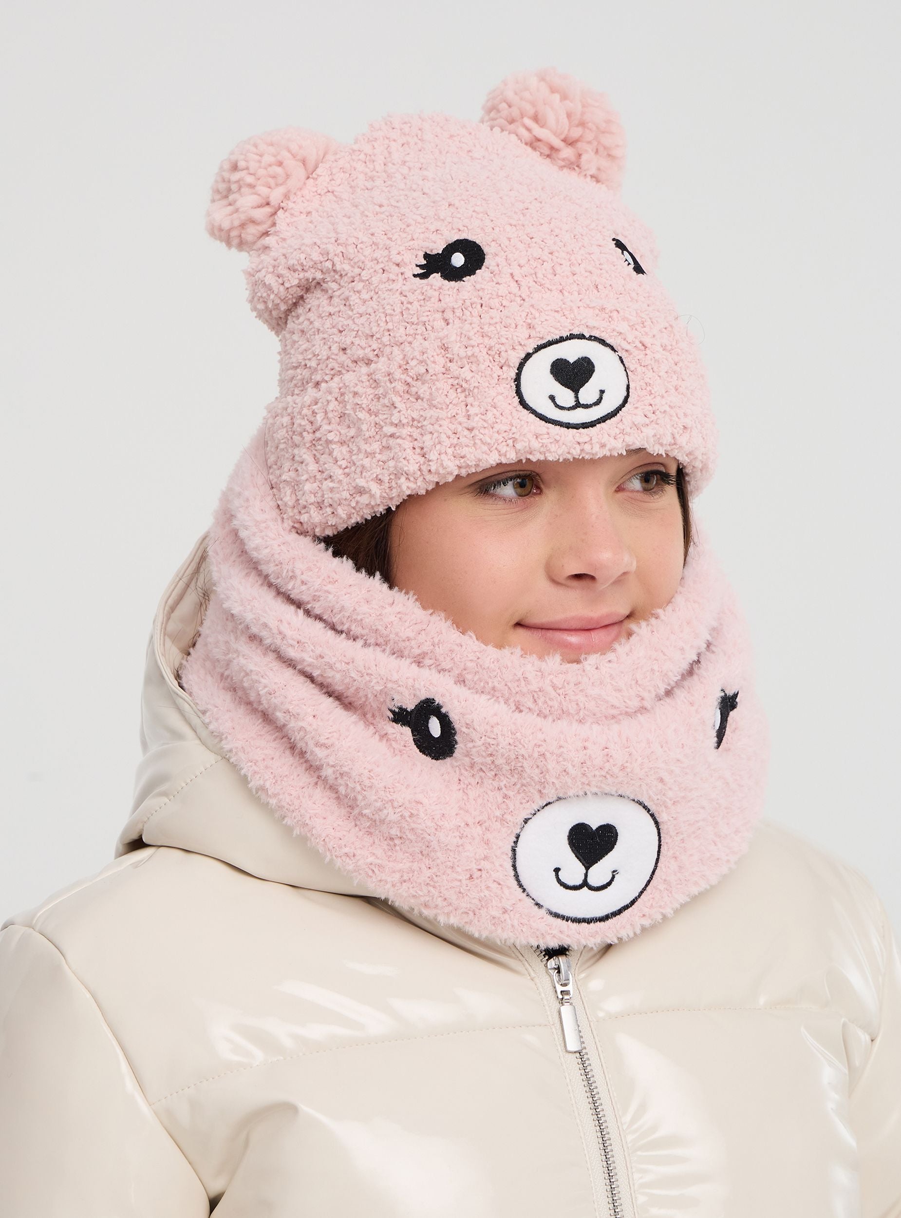 Scaldacollo da bambina offre calore e comfort. Presenta un grazioso ricamo frontale con il volto di un orsetto. Questo accessorio è perfetto per un uso casual e giornaliero, aggiungendo un tocco di dolcezza ad ogni look.