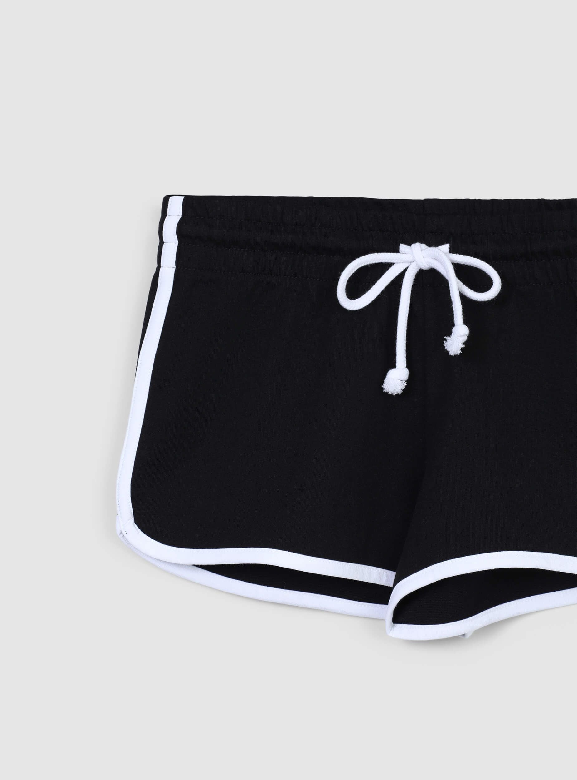 Pantaloncini della tuta da donna con un design sportivo e confortevole. Presentano una vestibilità comoda con banda elastica in vita, regolabile tramite una coulisse. Sono caratterizzati da profili a contrasto sui lati, che donano un tocco dinamico al capo. Ideali per attività sportive o per momenti di relax.Dettagli