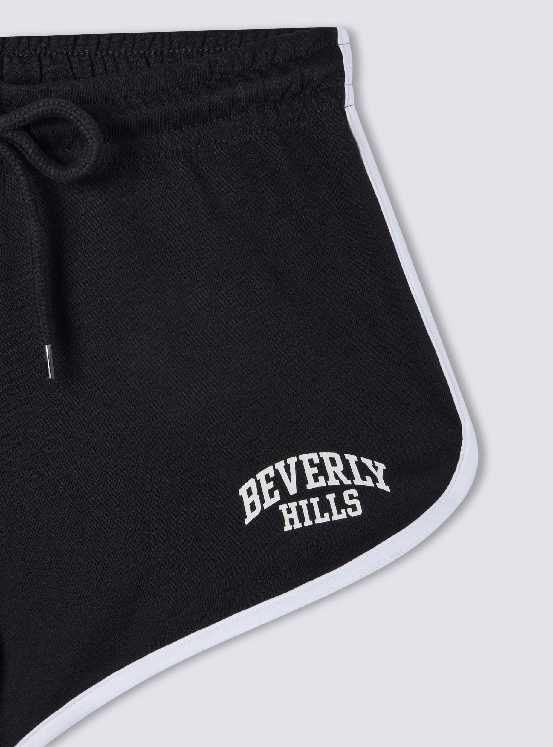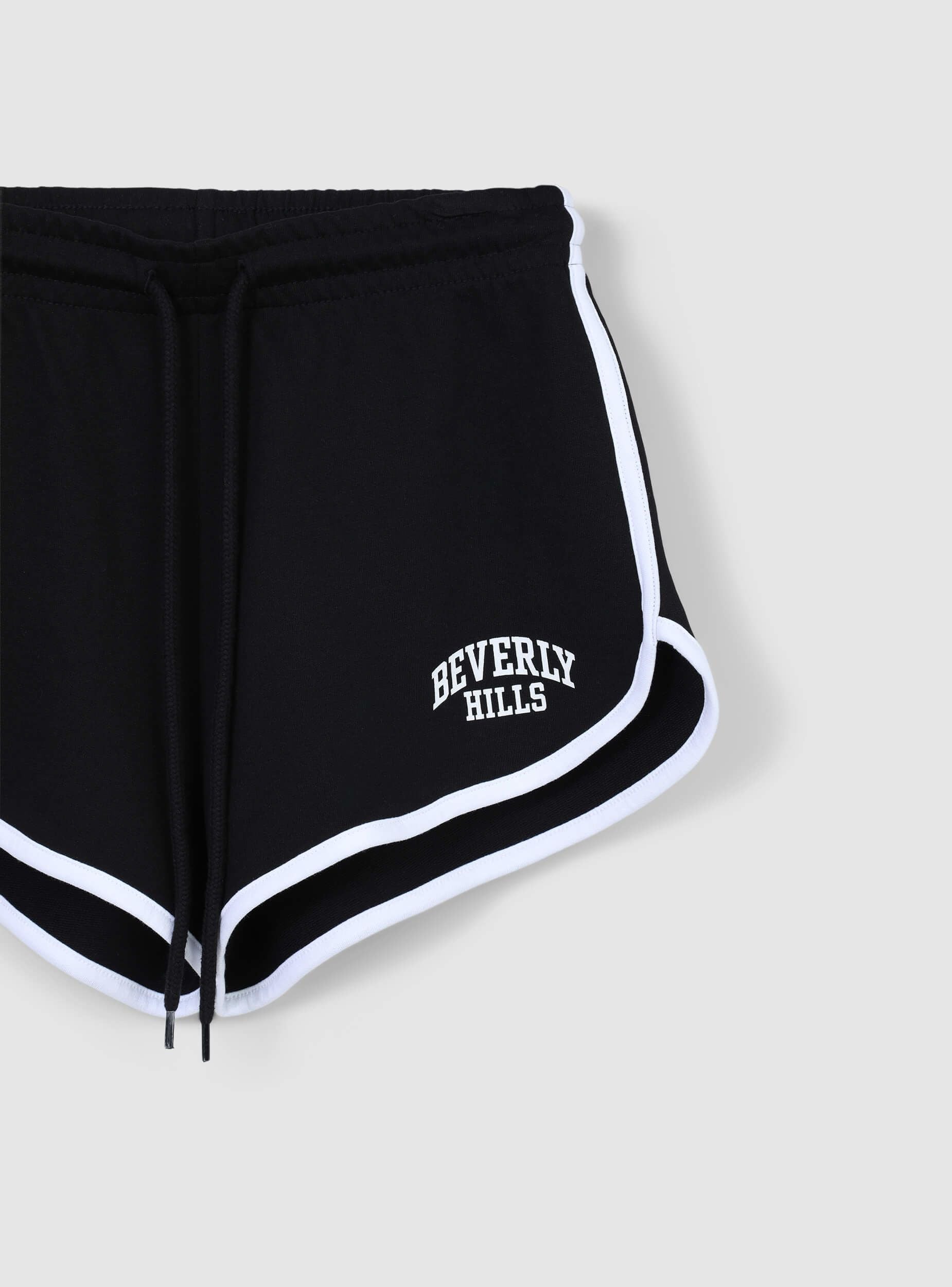 Pantaloncini da donna leggeri con un design sportivo e una stampa college sul davanti. Presentano una comoda coulisse in vita per regolarne la vestibilità e sono rifiniti con profili a contrasto che donano un tocco dinamico al look. Ideali per il tempo libero, questi pantaloncini offrono praticità e stile con un aspetto casual ma curato.