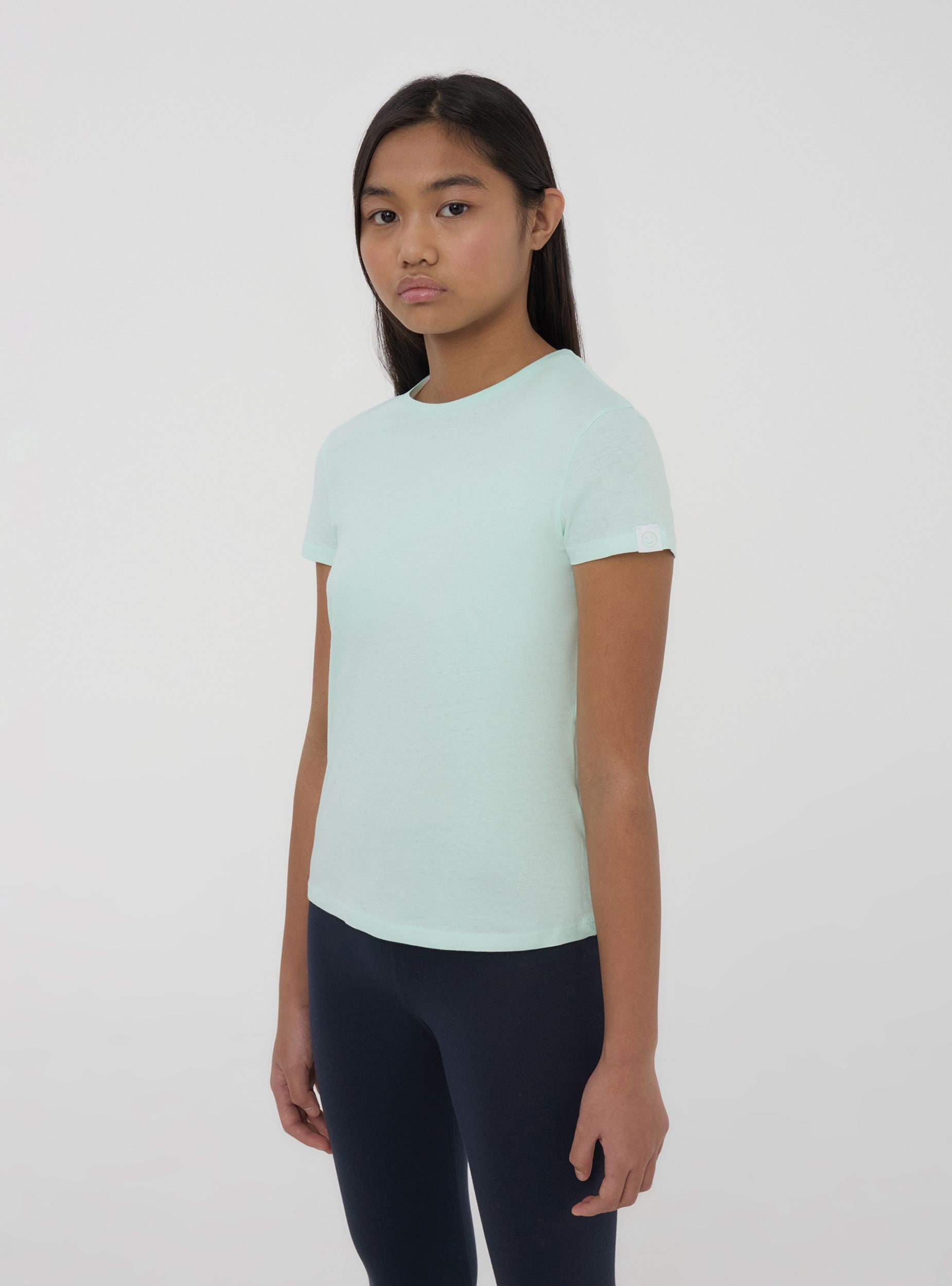 Maglietta da bambina caratterizzata da un design a tinta unita, perfetta per ogni occasione. Il girocollo e le maniche corte aggiungono un tocco di praticità e comfort al capo, realizzato in morbido cotone per una vestibilità piacevole sulla pelle. Il dettaglio dell'etichetta sulla manica impreziosisce il look, rendendolo unico e allegro. Ideale da abbinare a pantaloni o gonne per creare outfit versatili e adatti a ogni stagione.