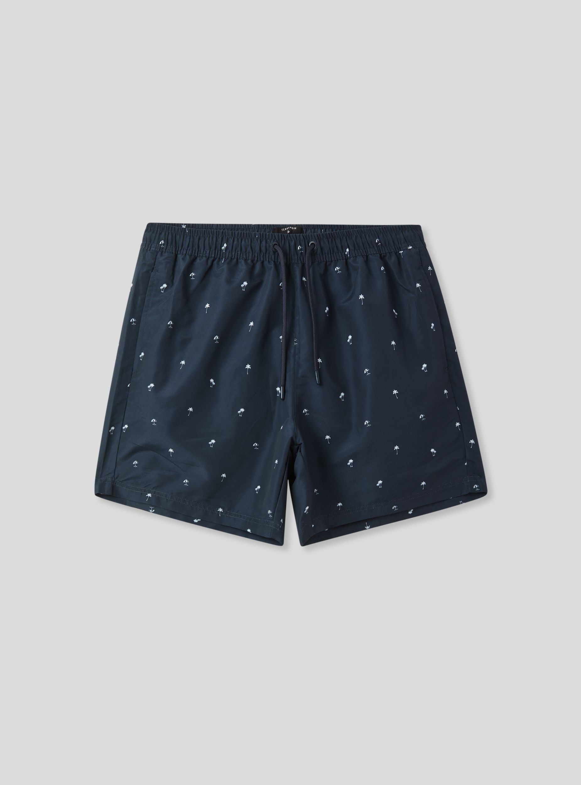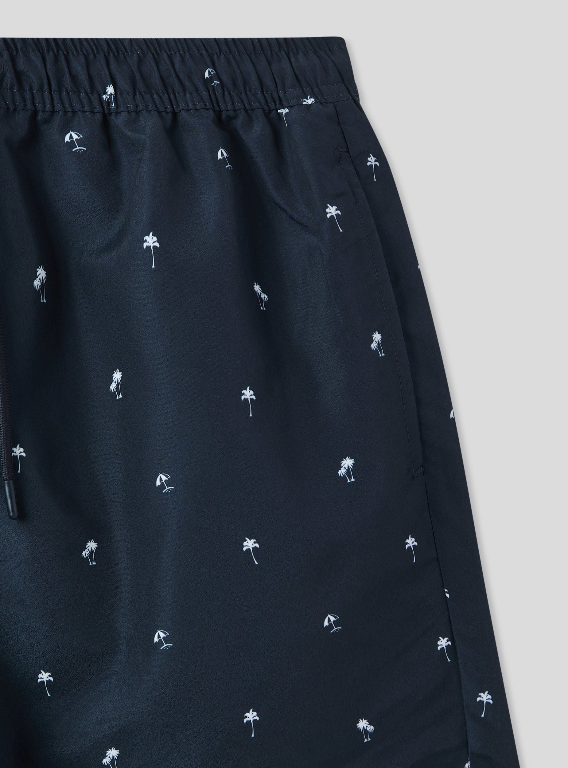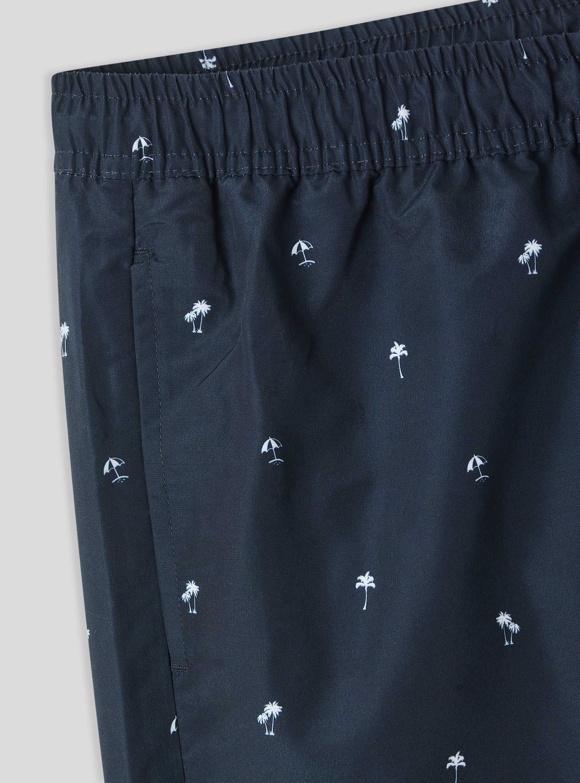 Costume da uomo perfetto per l'estate, questi bermuda con microfantasia di palme e ombrelloni evocano un mood vacanziero e rilassato. La coulisse regolabile garantisce una vestibilità confortevole, mentre le tasche laterali aggiungono praticità. La tasca posteriore con chiusura in velcro è ideale per custodire piccoli oggetti. Ideali da abbinare a una t-shirt e infradito per un look casual da spiaggia.