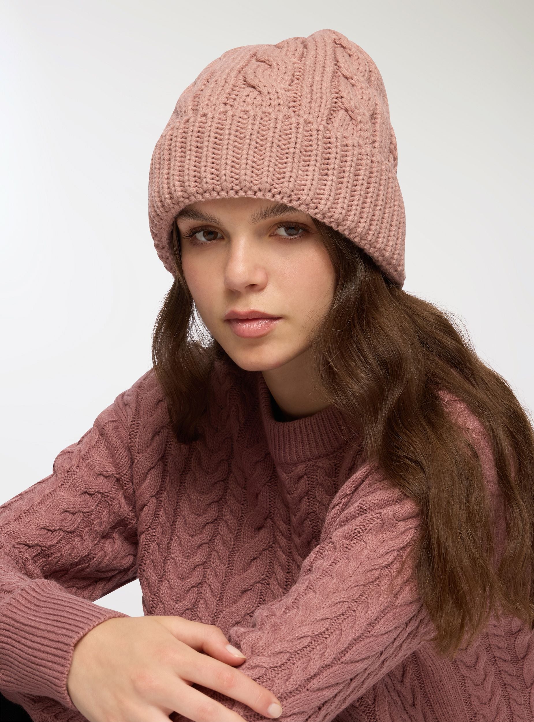 Berretto da donna a tinta unita con lavorazione a treccia, ideale per completare outfit casual e sportivi. Perfetto per proteggersi dal freddo con stile, grazie all'imbottitura interna, si abbina facilmente a giacche e cappotti. La lavorazione a treccia dona un tocco di eleganza e originalità, rendendolo un accessorio versatile per diverse occasioni.