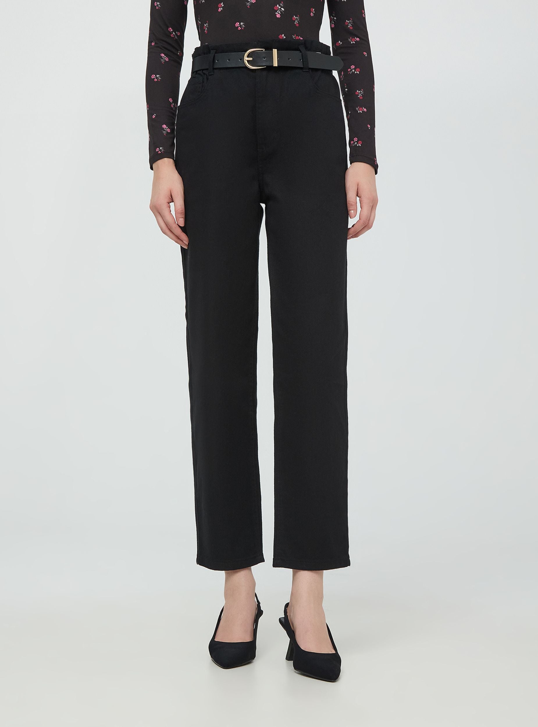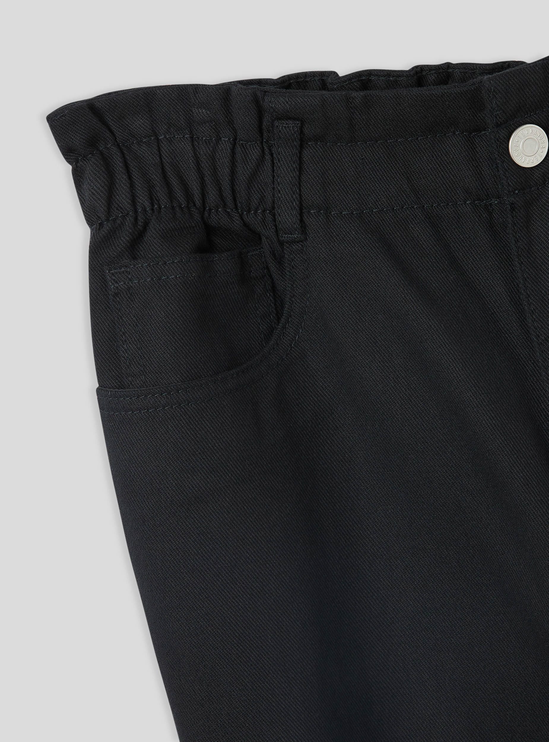 Pantaloni da donna realizzati in twill di cotone a tinta unita. Il design presenta cinque tasche e una chiusura con bottone e zip. La vestibilità è ampia e rilassata, perfetta per un look casual e sofisticato. Ideali per un abbigliamento quotidiano o per un’occasione informale.