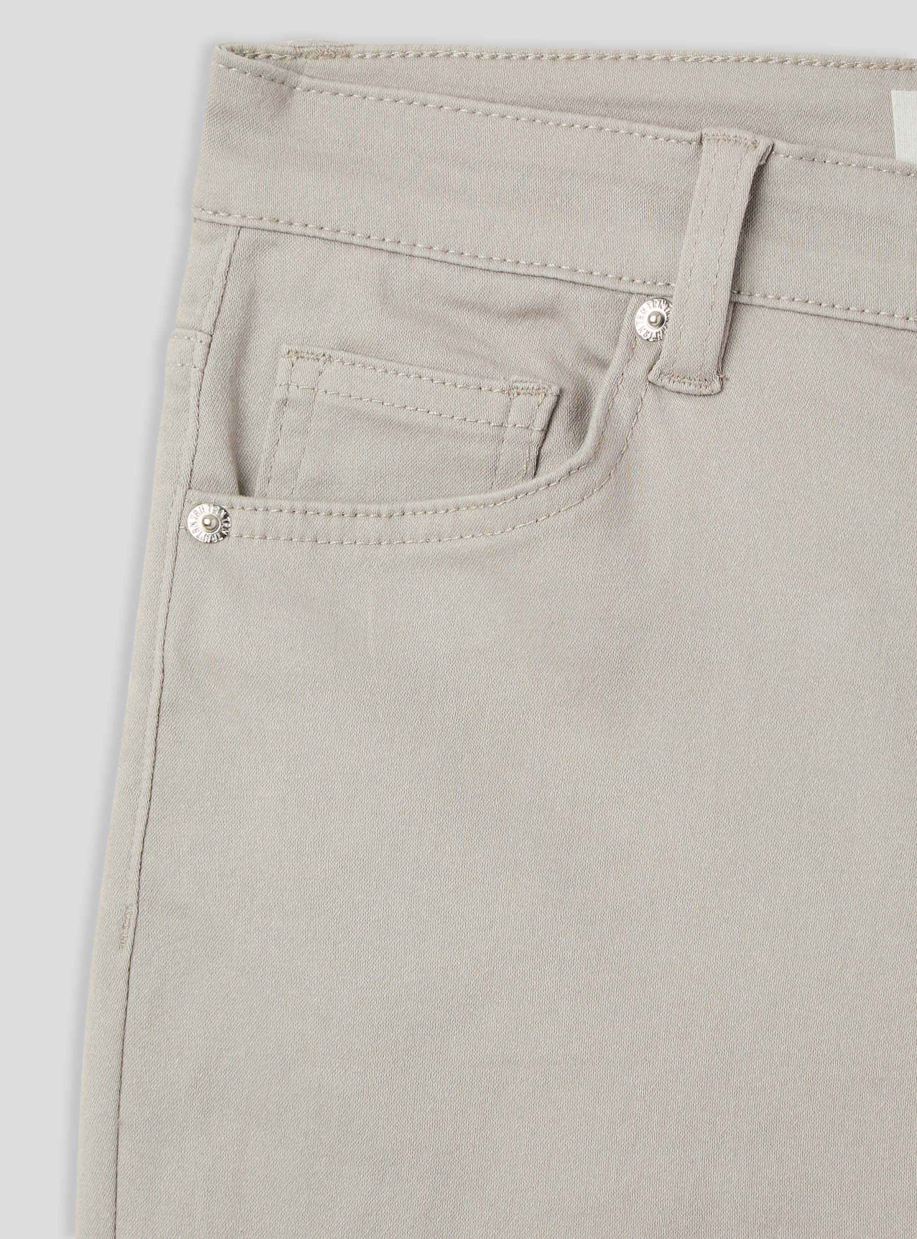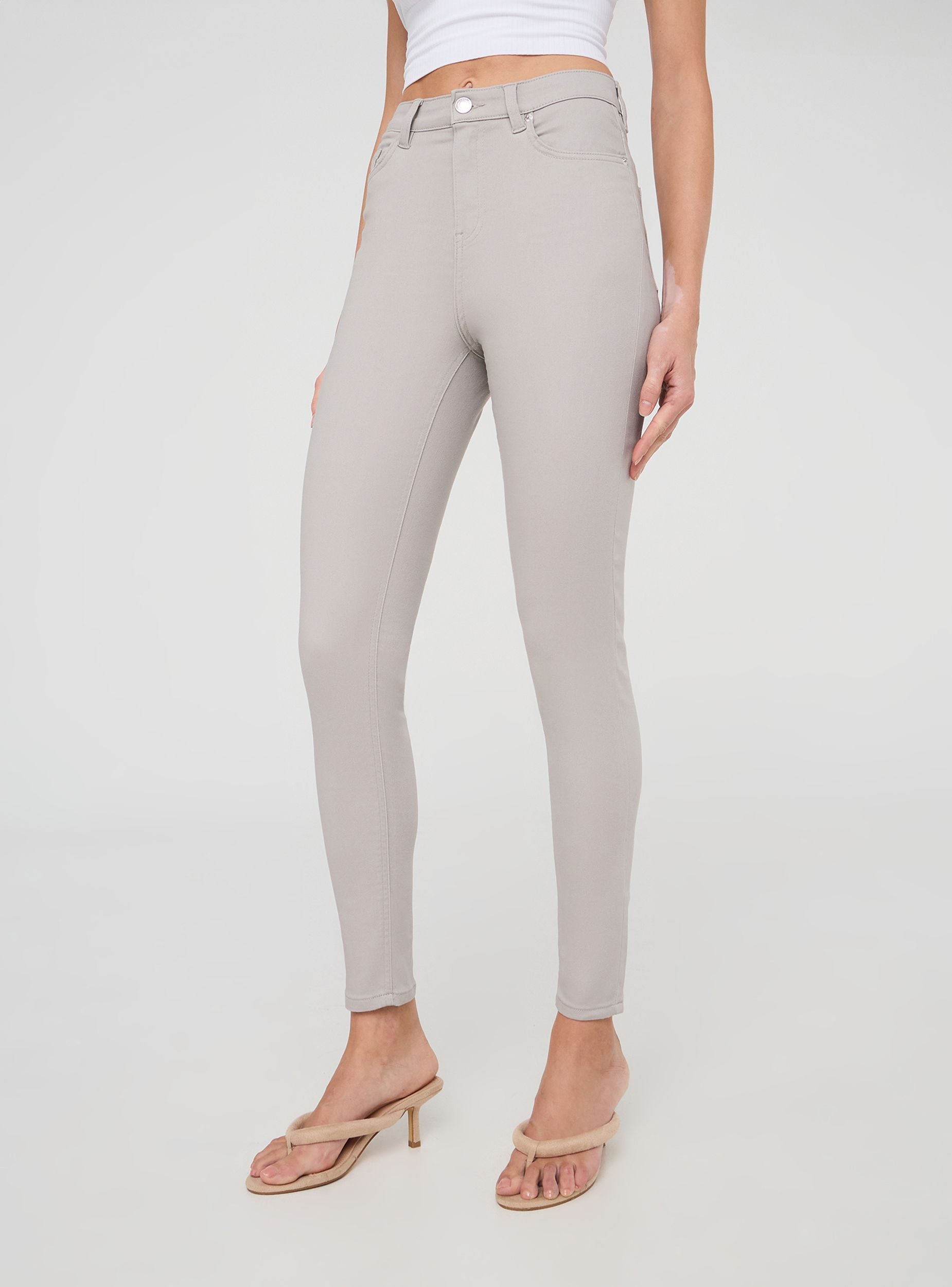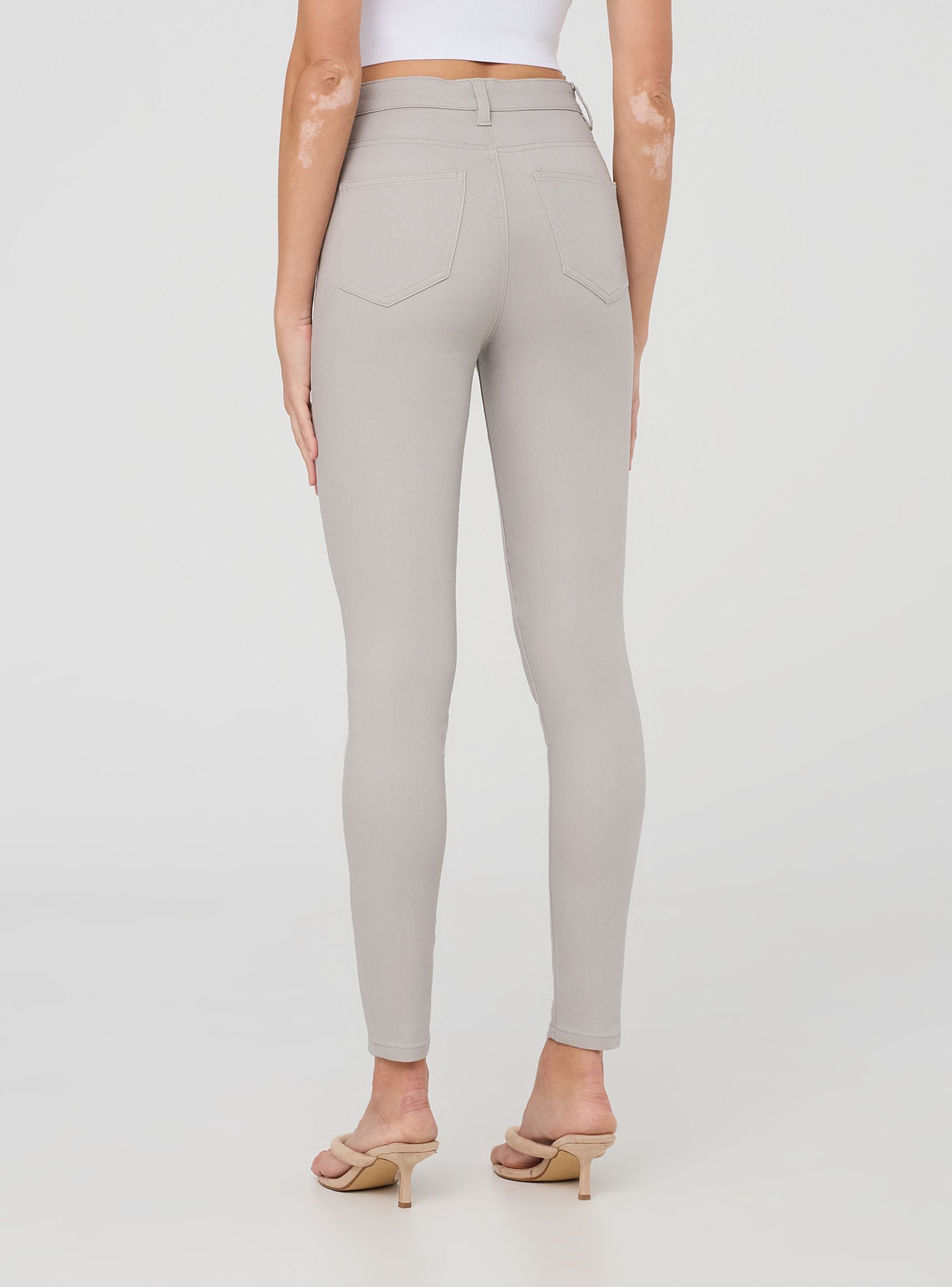 Pantaloni da donna, modello skinny a vita alta, perfetti per valorizzare la silhouette con eleganza. Presentano una chiusura con bottone e zip, passanti in vita e cinque tasche funzionali. La tinta unita li rende ideali per look casual o formali, abbinandoli a camicie o maglie aderenti e scarpe con tacco o sneakers per uno stile versatile e sofisticato.