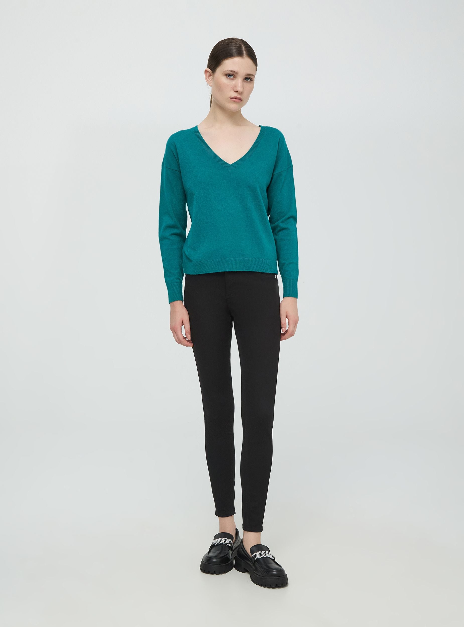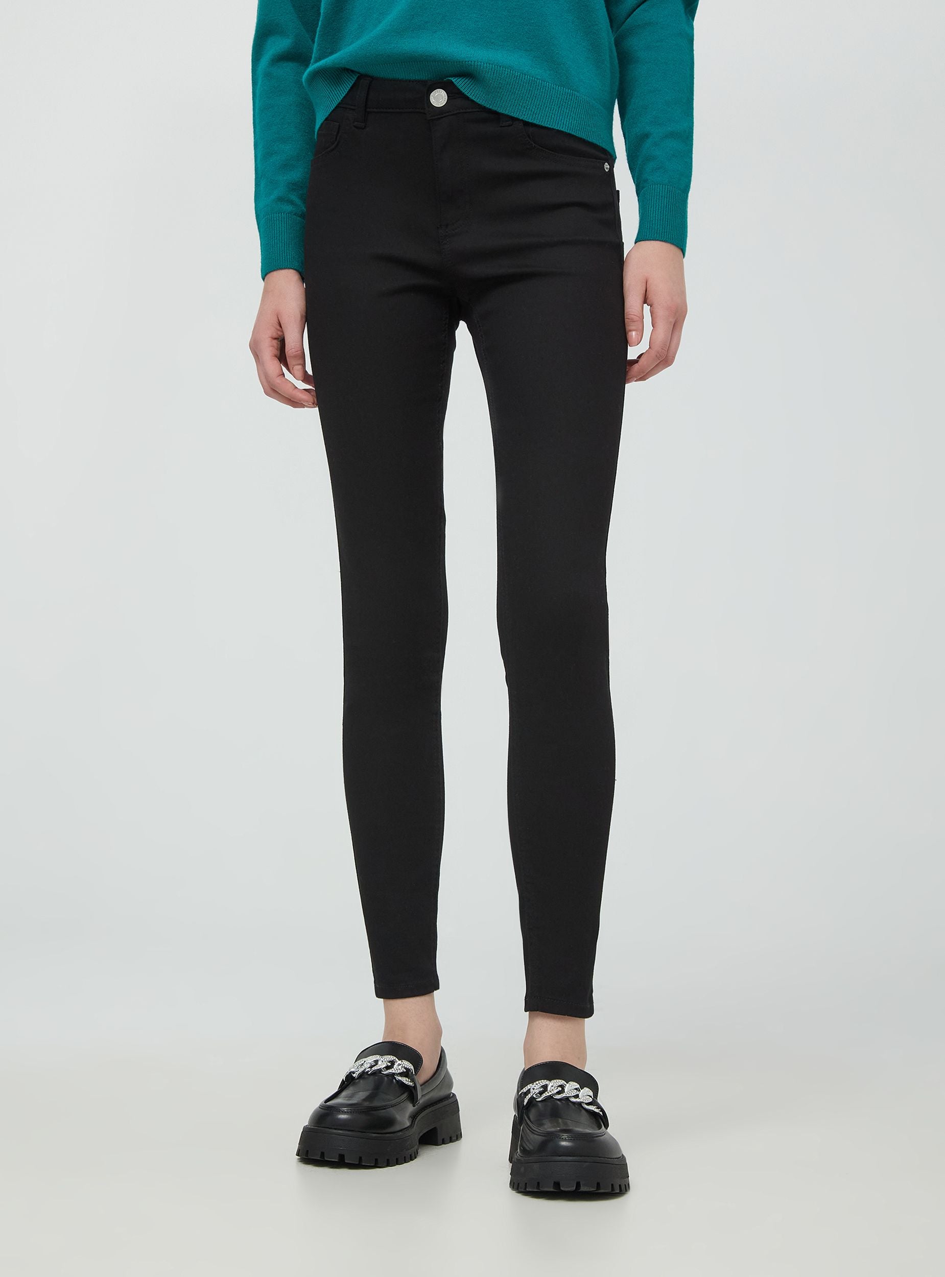 Pantaloni skinny a vita alta