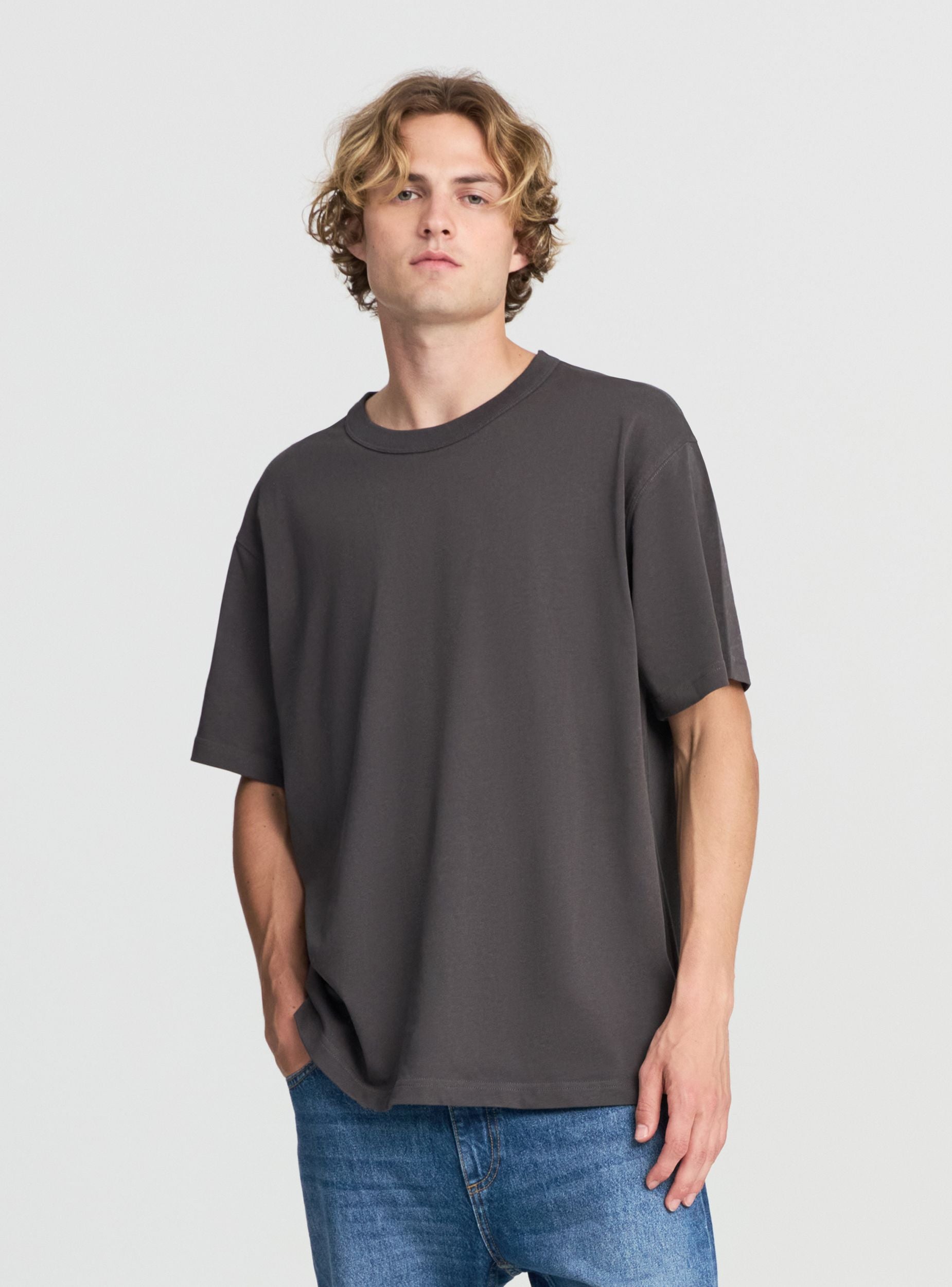 Maglietta da uomo in jersey pesante di cotone, pensata per offrire comfort e resistenza durante l’uso quotidiano. Il tessuto compatto garantisce una vestibilità strutturata e duratura, ideale per affrontare la mezza stagione con stile. Il taglio con girocollo e maniche corte la rende perfetta da indossare da sola o sotto felpe e giacche. Un capo tinta unita essenziale e versatile per ogni guardaroba.