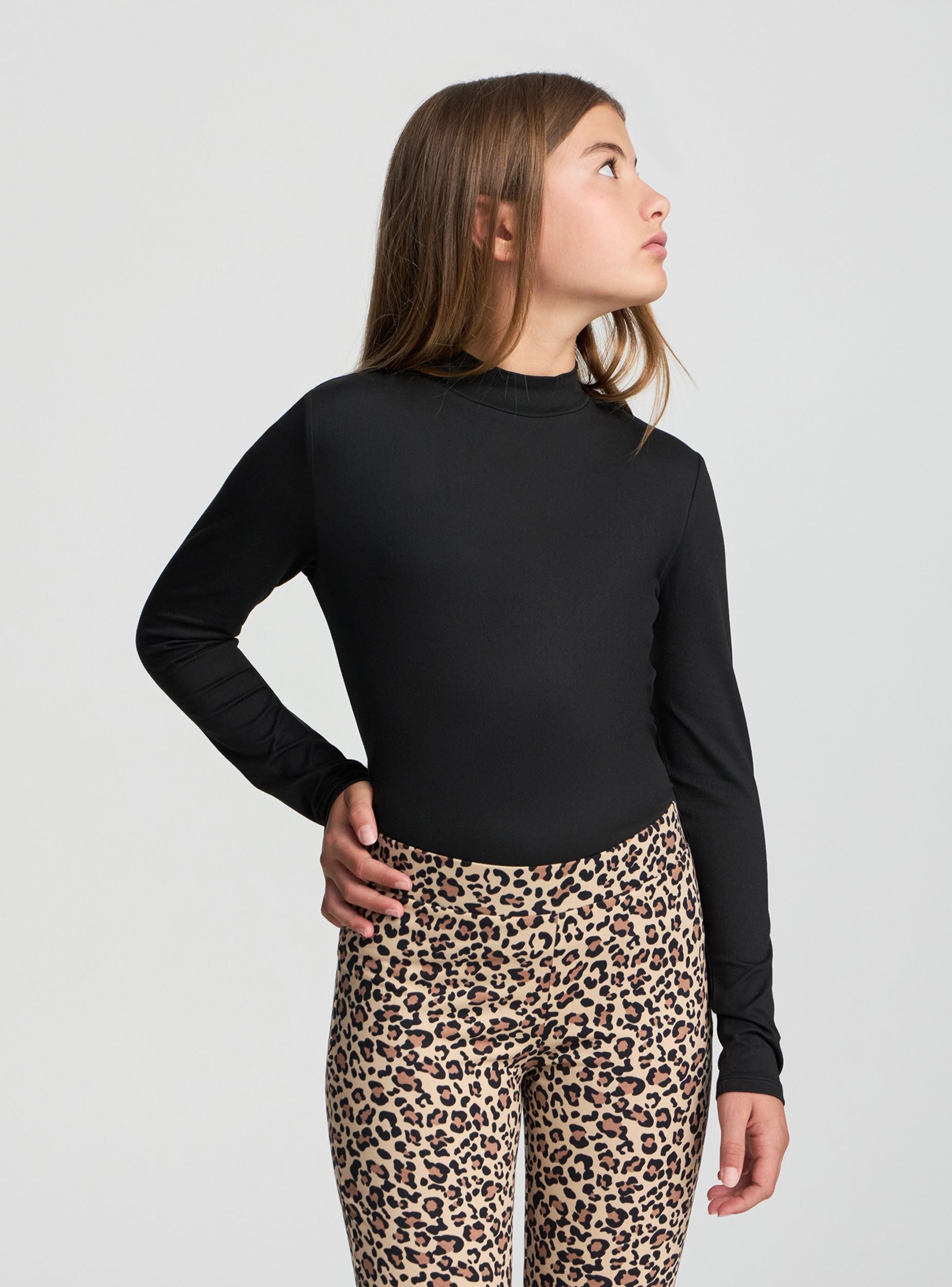 Tessuto caldo. Maglietta da bambina con maniche lunghe e collo alto, ideale per un look casual e versatile. Perfetta per essere indossata sotto maglioni o giacche durante le stagioni piu fresche. La vestibilità comoda e il design tinta unita la rendono adatta a molteplici abbinamenti, sia per la scuola che per il tempo libero.
