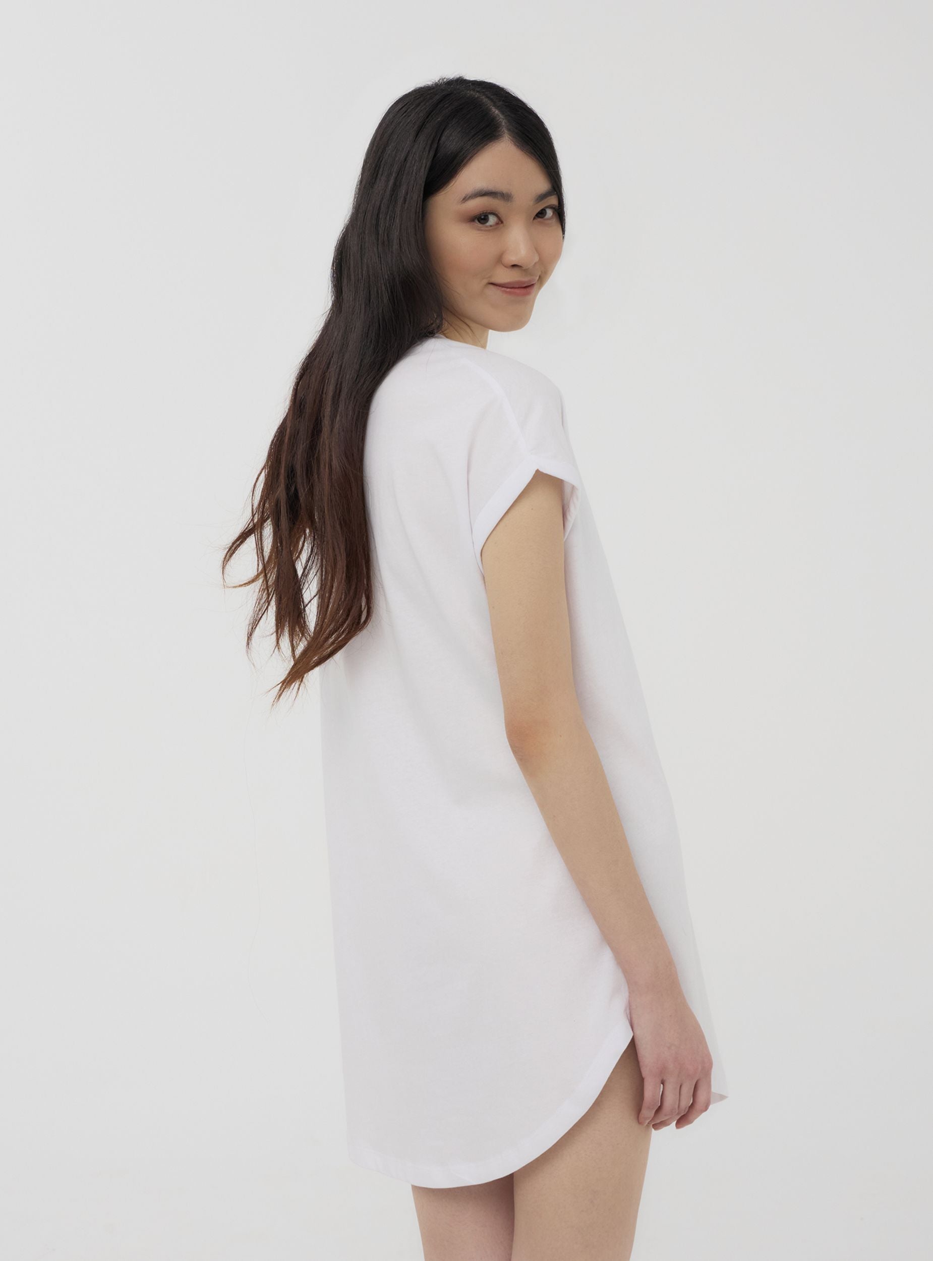 Maglietta del pigiama da donna con maniche corte e girocollo, perfetta per notti all'insegna del comfort. Il design lungo e il fondo stondato offrono una vestibilità rilassata, ideale per il relax. La simpatica stampa con scritta aggiunge un tocco divertente e giocoso. Perfetta da abbinare a leggings o pantaloncini per un look comodo e accogliente nelle serate a casa.