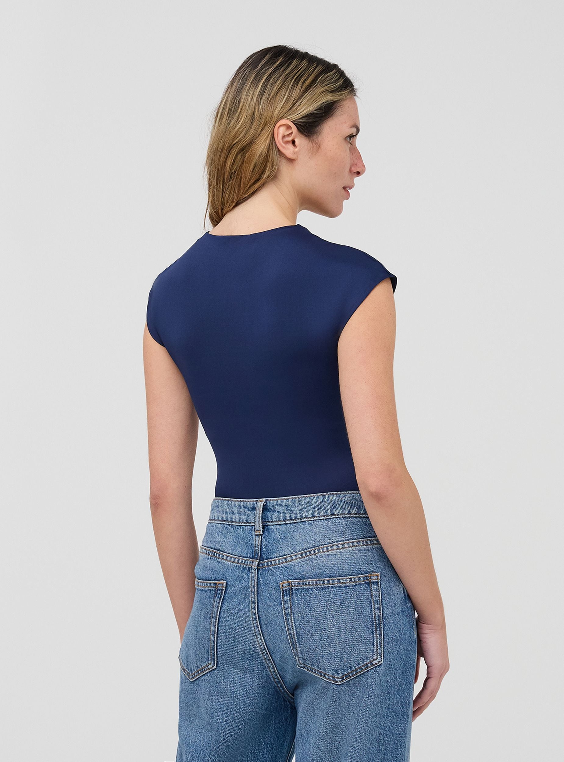 Body da donna con maniche aletta. Presenta un design aderente ma comodo grazie al tessuto elasticizzato. Il capo è a tinta unita e risulta ideale per un look basico ma elegante. Dotato di chiusura con bottoni a pressione.