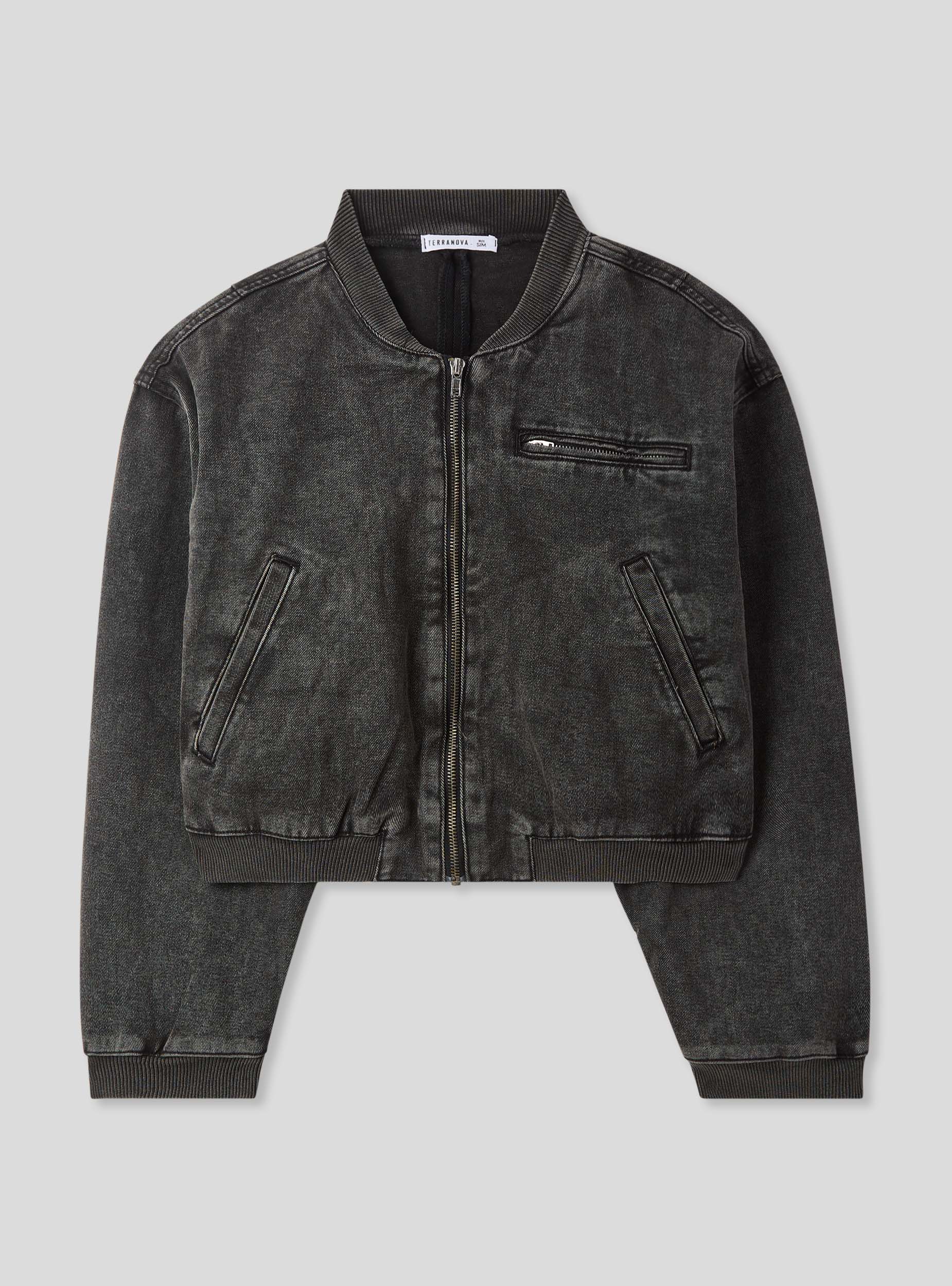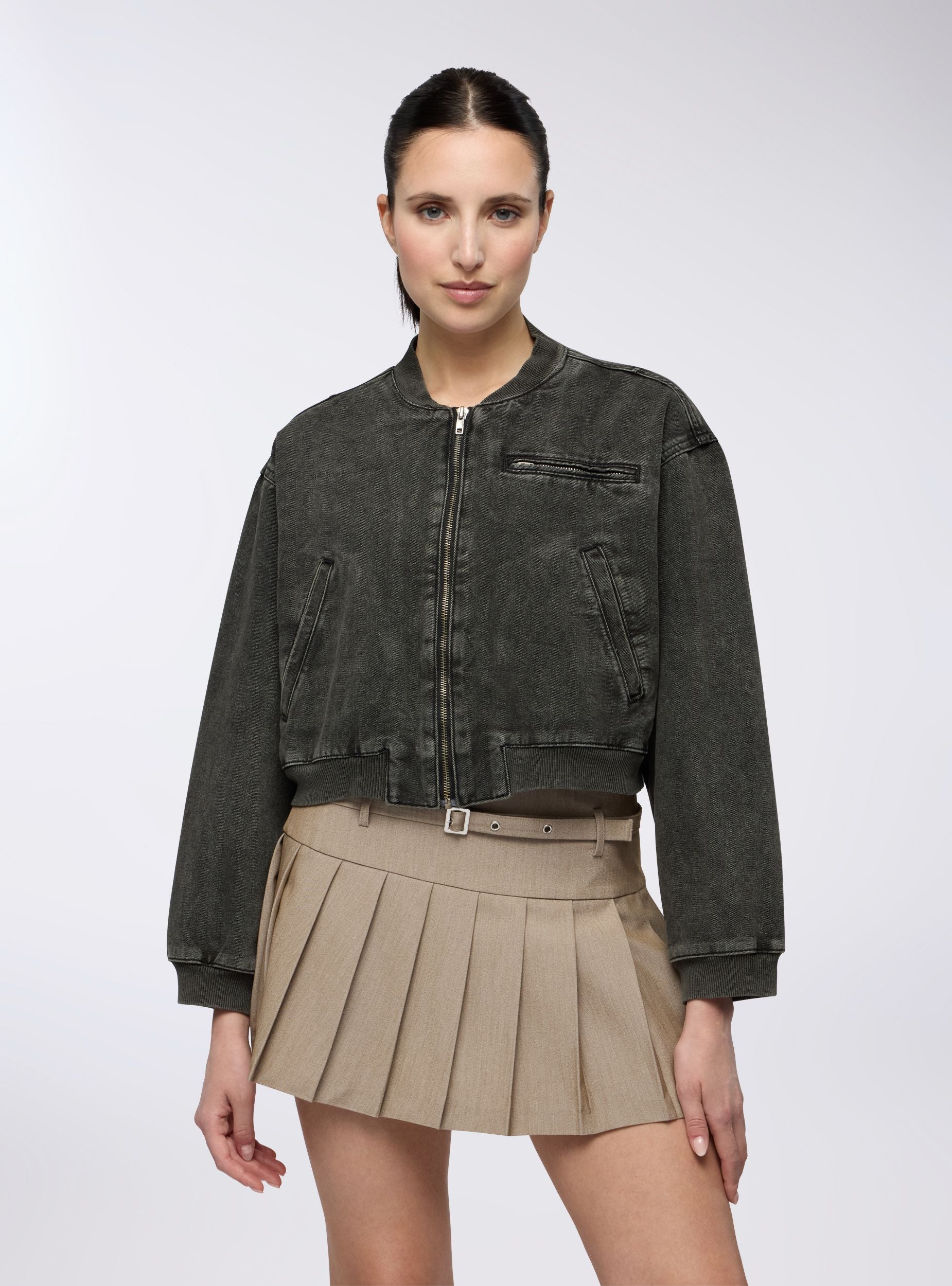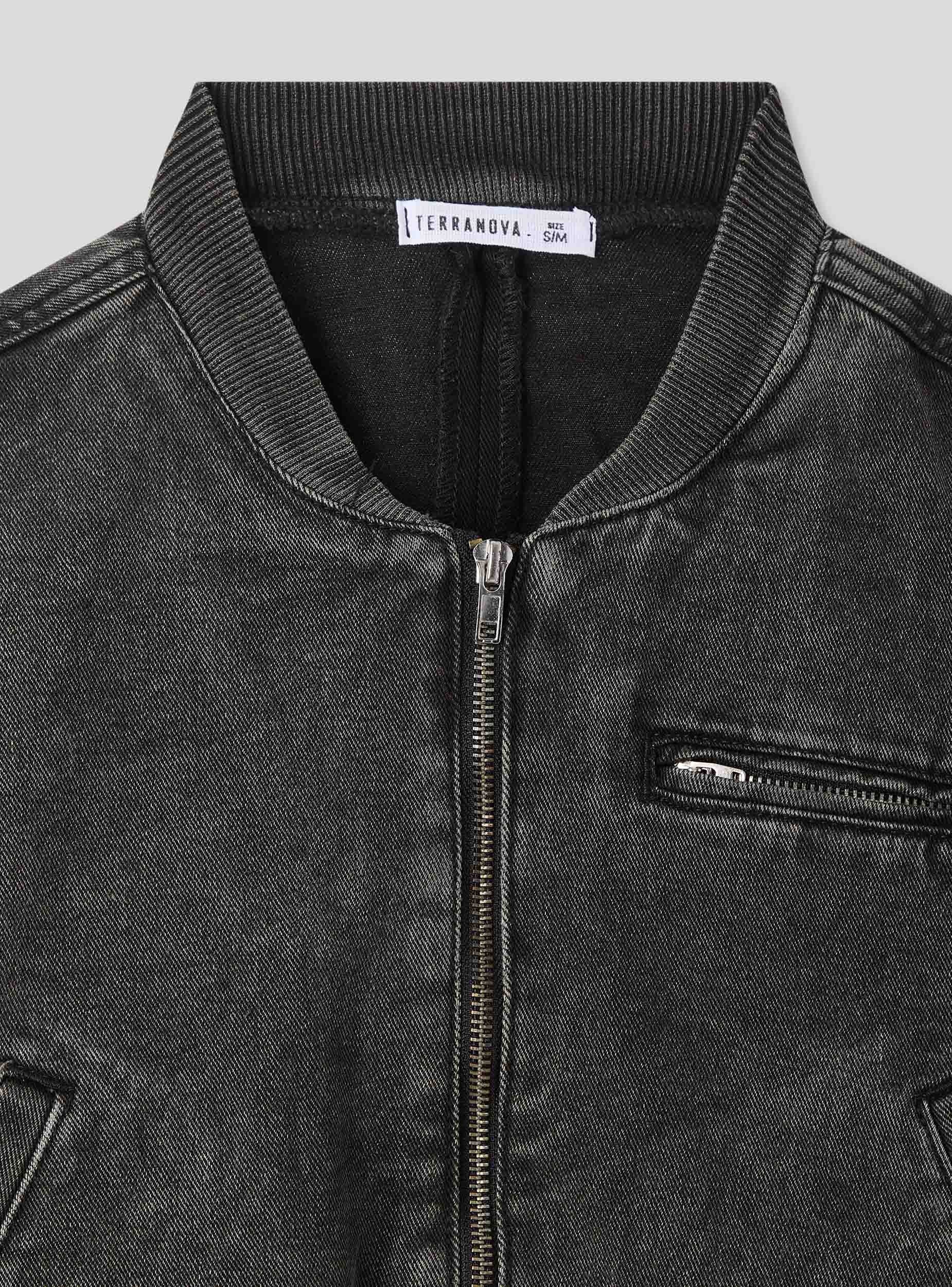 Bomber da donna di jeans, ideale per un look casual e versatile. Perfetto per completare outfit urbani, si abbina facilmente a jeans o pantaloni per un tocco moderno. Dotato di chiusura frontale con zip, tasche laterali e tasca sul petto con zip. La sua silhouette e il design lo rendono adatto a diverse occasioni, garantendo comfort e stile.Dettagli