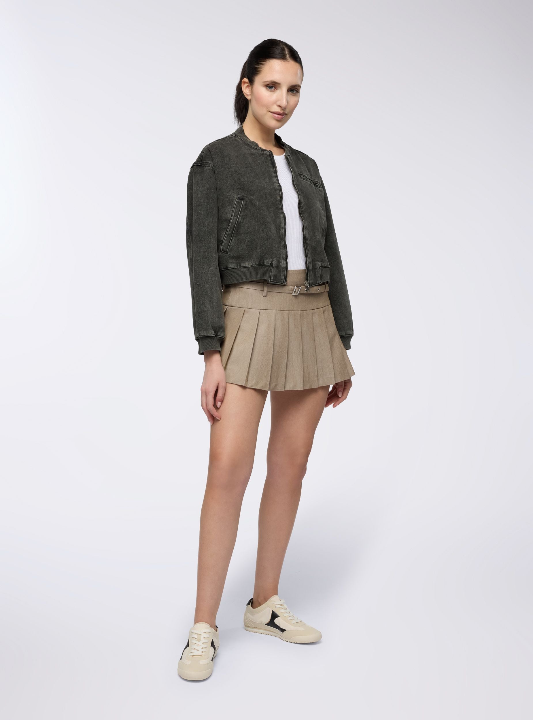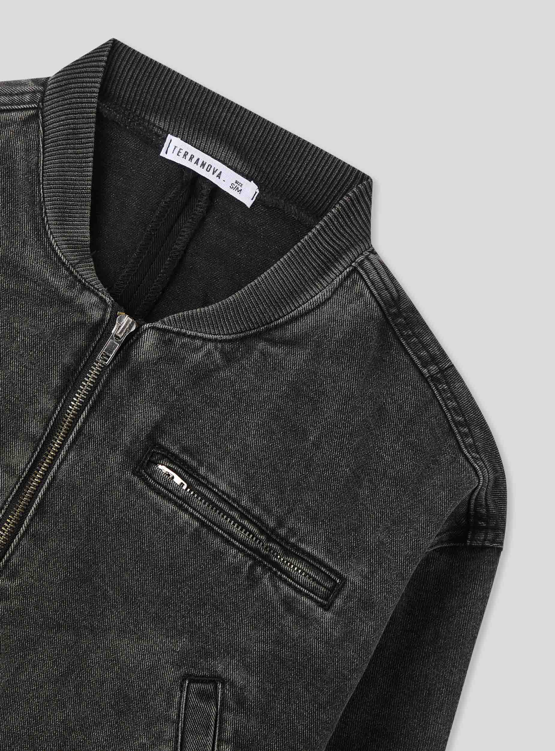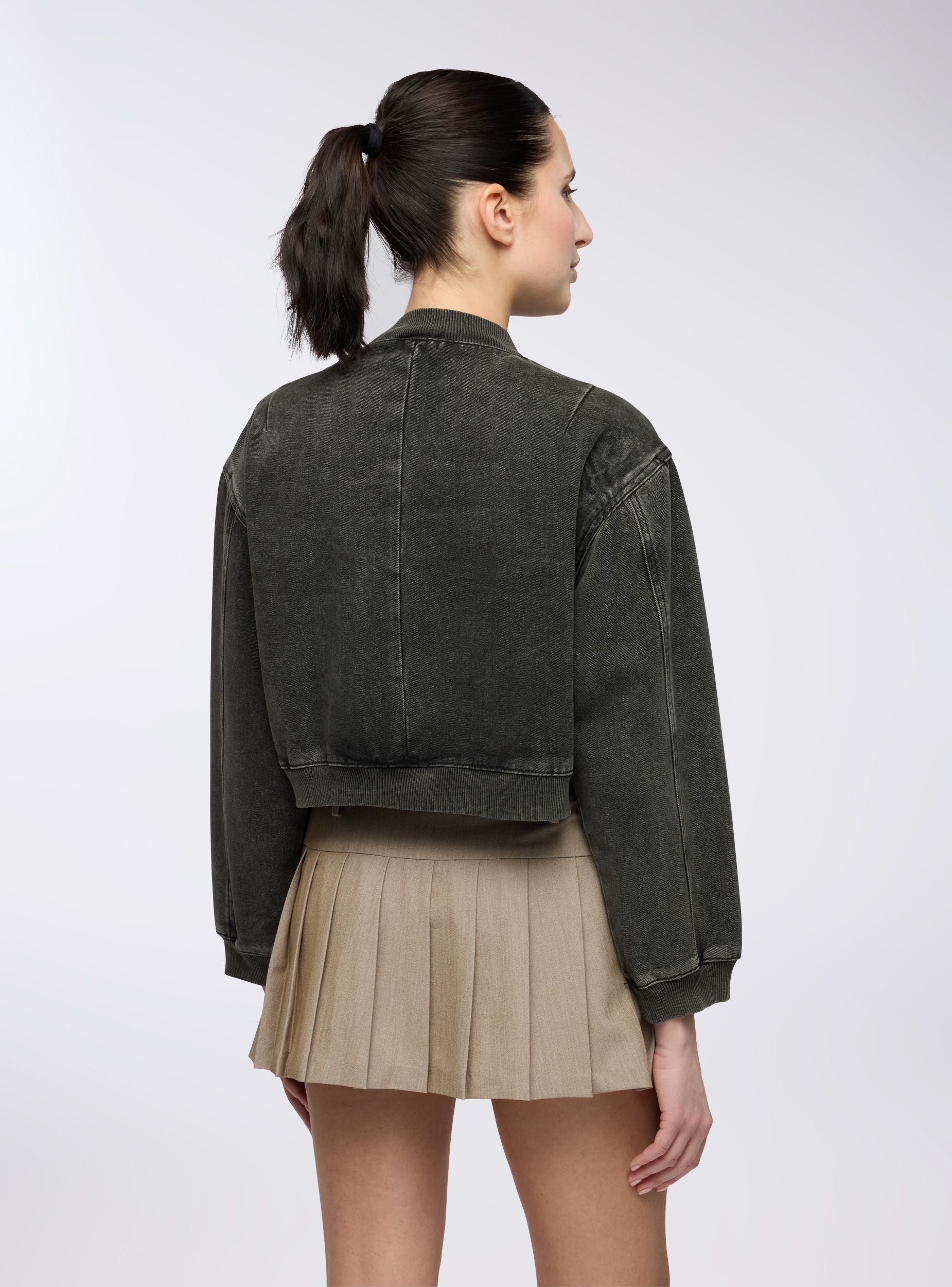 Bomber da donna di jeans, ideale per un look casual e versatile. Perfetto per completare outfit urbani, si abbina facilmente a jeans o pantaloni per un tocco moderno. Dotato di chiusura frontale con zip, tasche laterali e tasca sul petto con zip. La sua silhouette e il design lo rendono adatto a diverse occasioni, garantendo comfort e stile.Dettagli