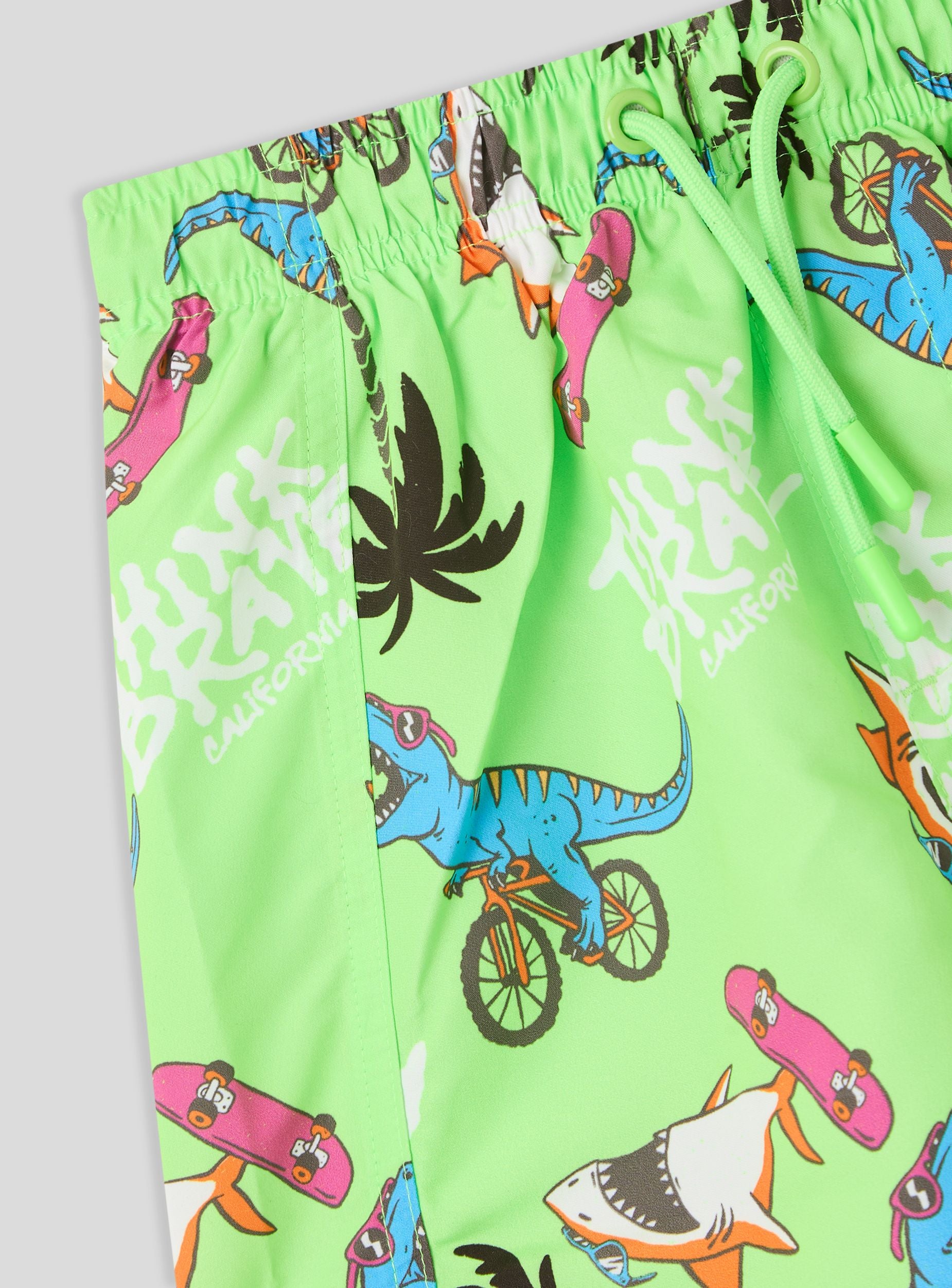 Costume da bimbo perfetto per un'estate di divertimento in spiaggia o in piscina. Il design a boxer assicura comfort e libertà di movimento, mentre la coulisse regolabile garantisce una vestibilità ottimale. La fantasia vivace con squali, dinosauri, scritte e palme dona un tocco giocoso e originale. Ideale da abbinare a una t-shirt colorata e sandali per un look estivo dinamico e alla moda.Dettagli