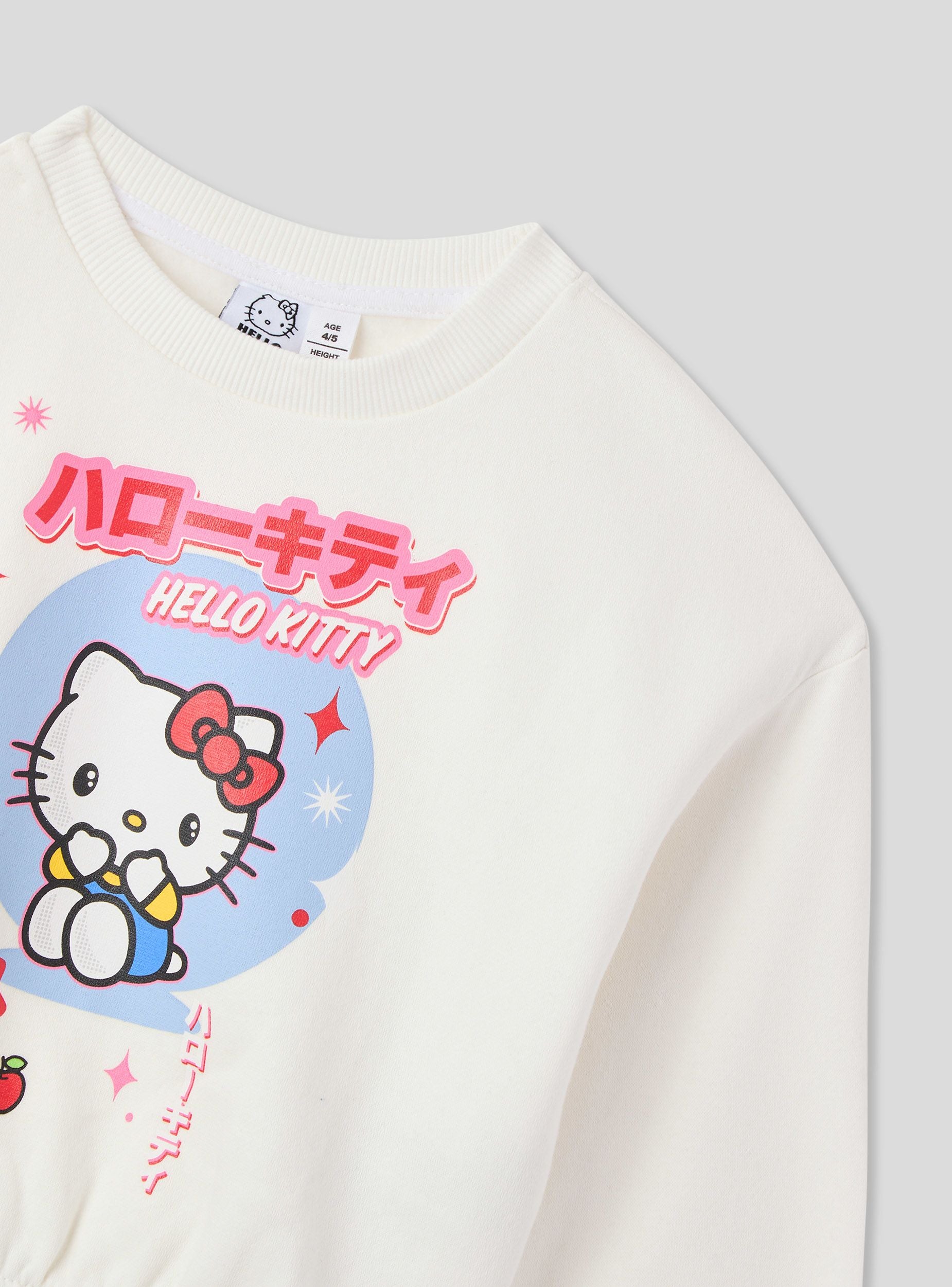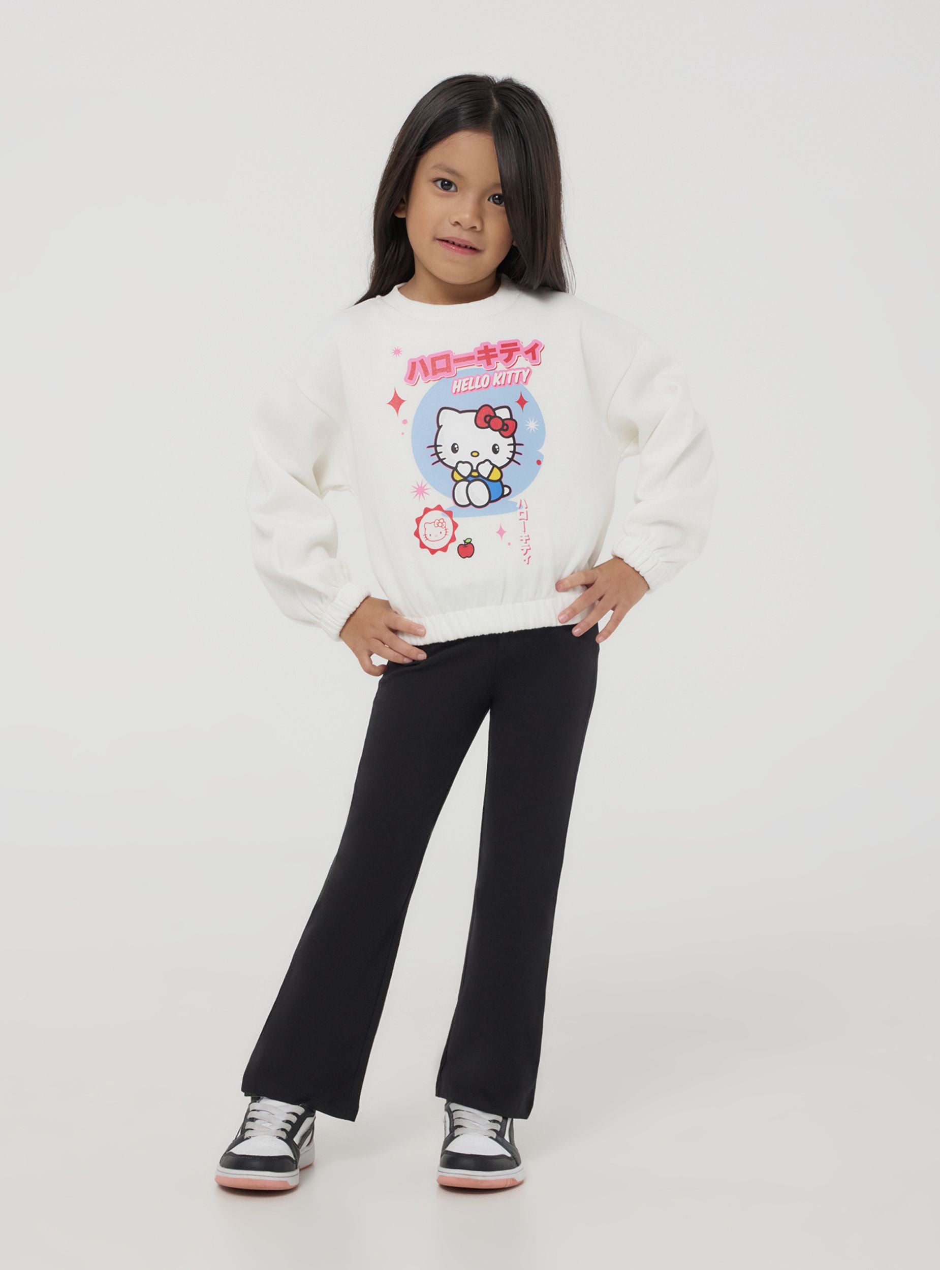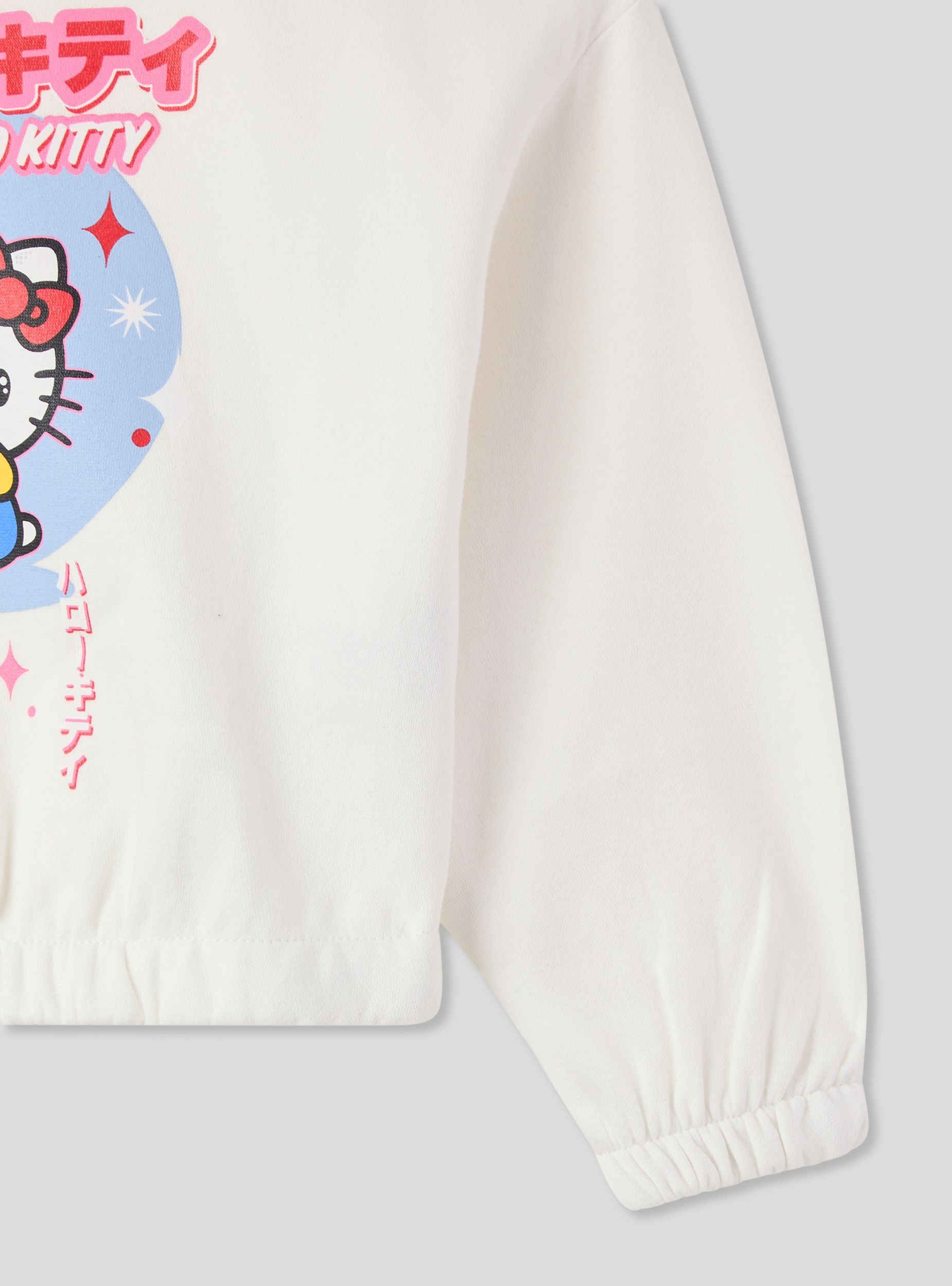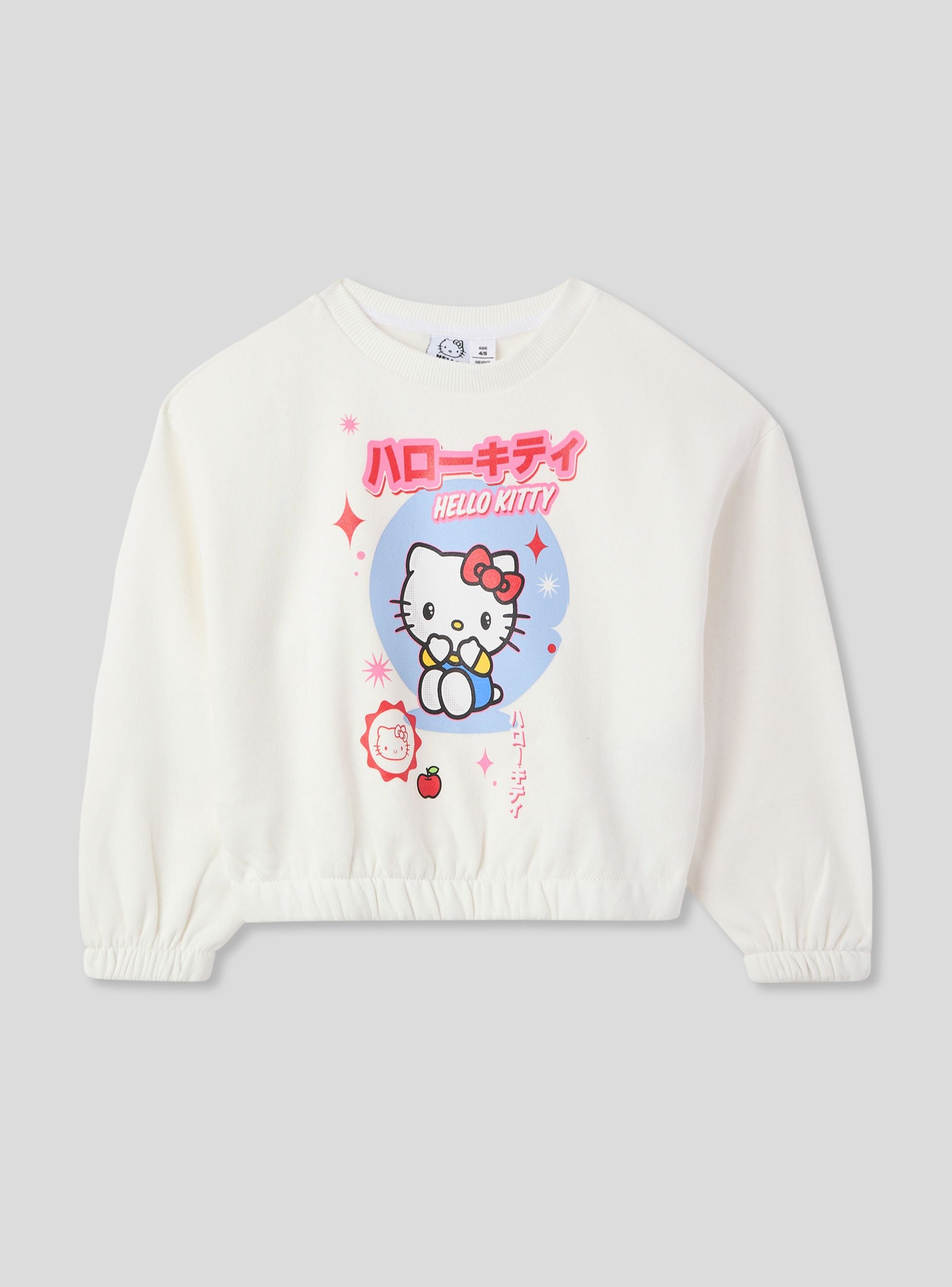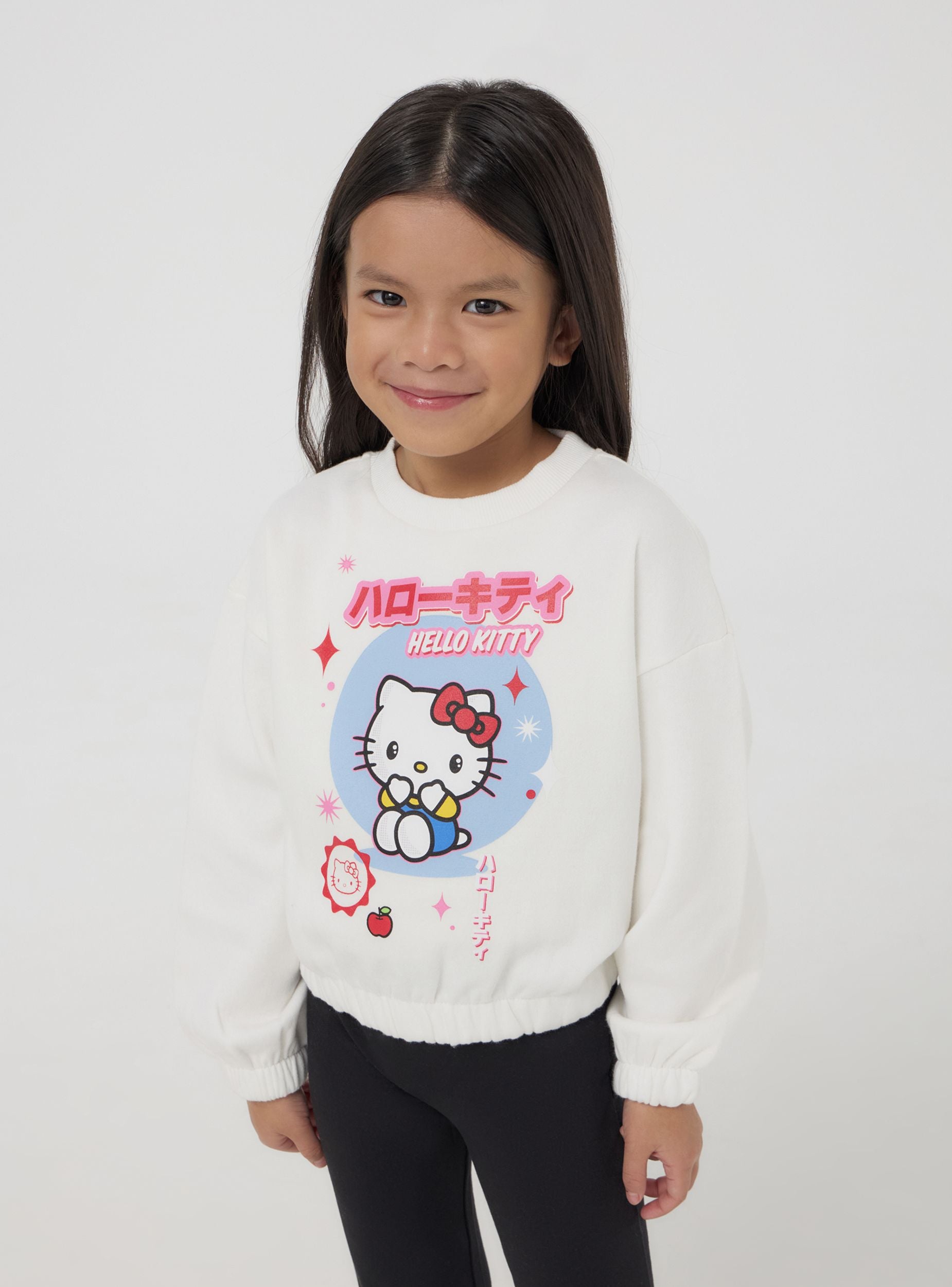 Felpa pesante da bambina con una vivace stampa Hello Kitty®, perfetta per un look casual e alla moda. Modello senza cappuccio e senza zip presenta un design a maniche lunghe e un pratico girocollo, ideale per un comfort quotidiano. L'orlo e i polsini elasticizzati con la stampa accattivante frontale rendono questa felpa un capo distintivo e versatile, adatto a ogni occasione. Un'aggiunta irrinunciabile per le piccole fan del personaggio.