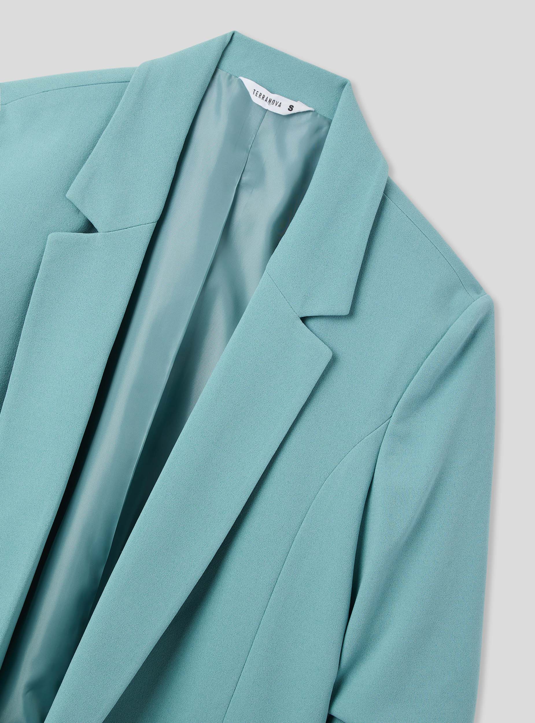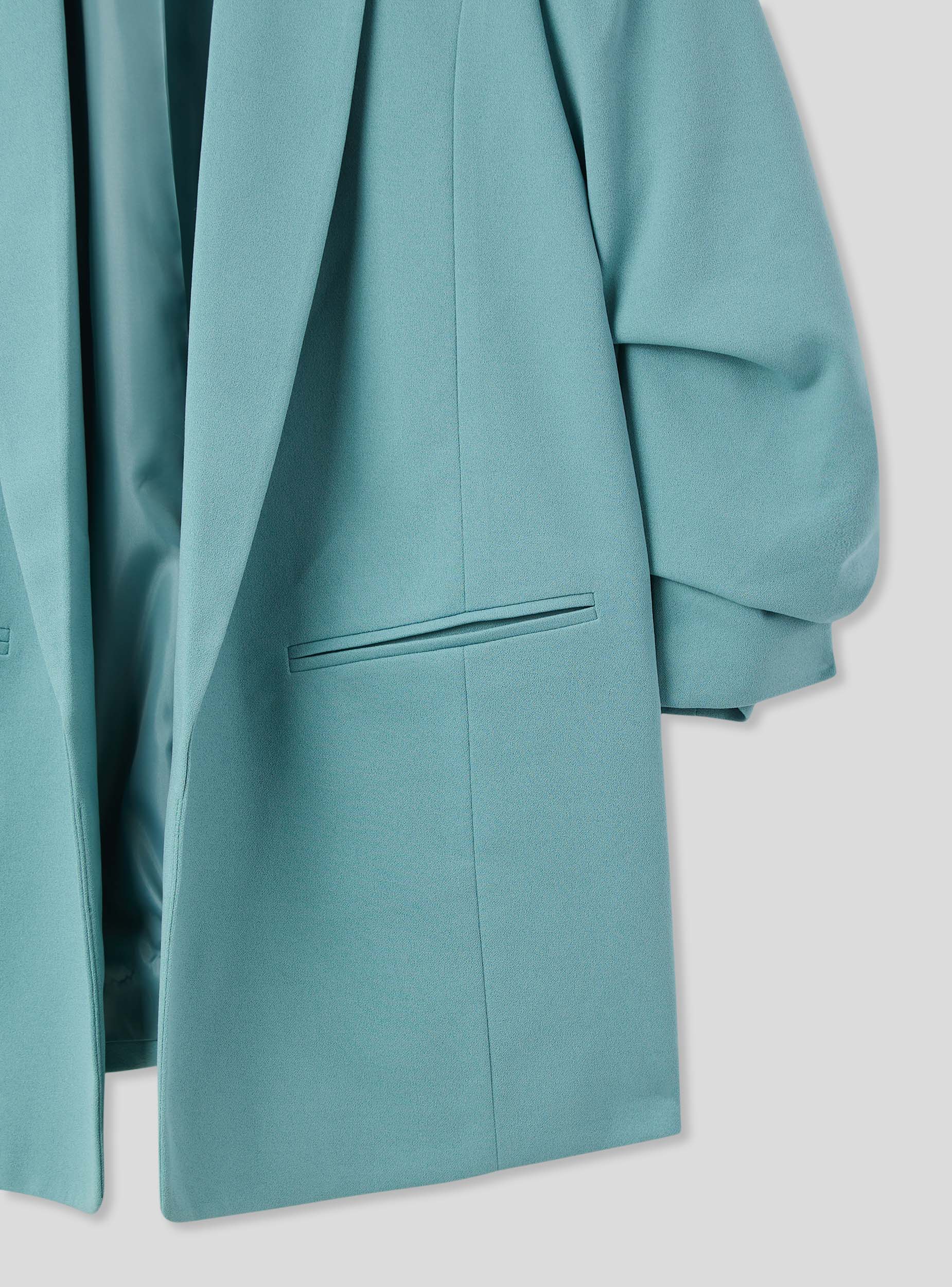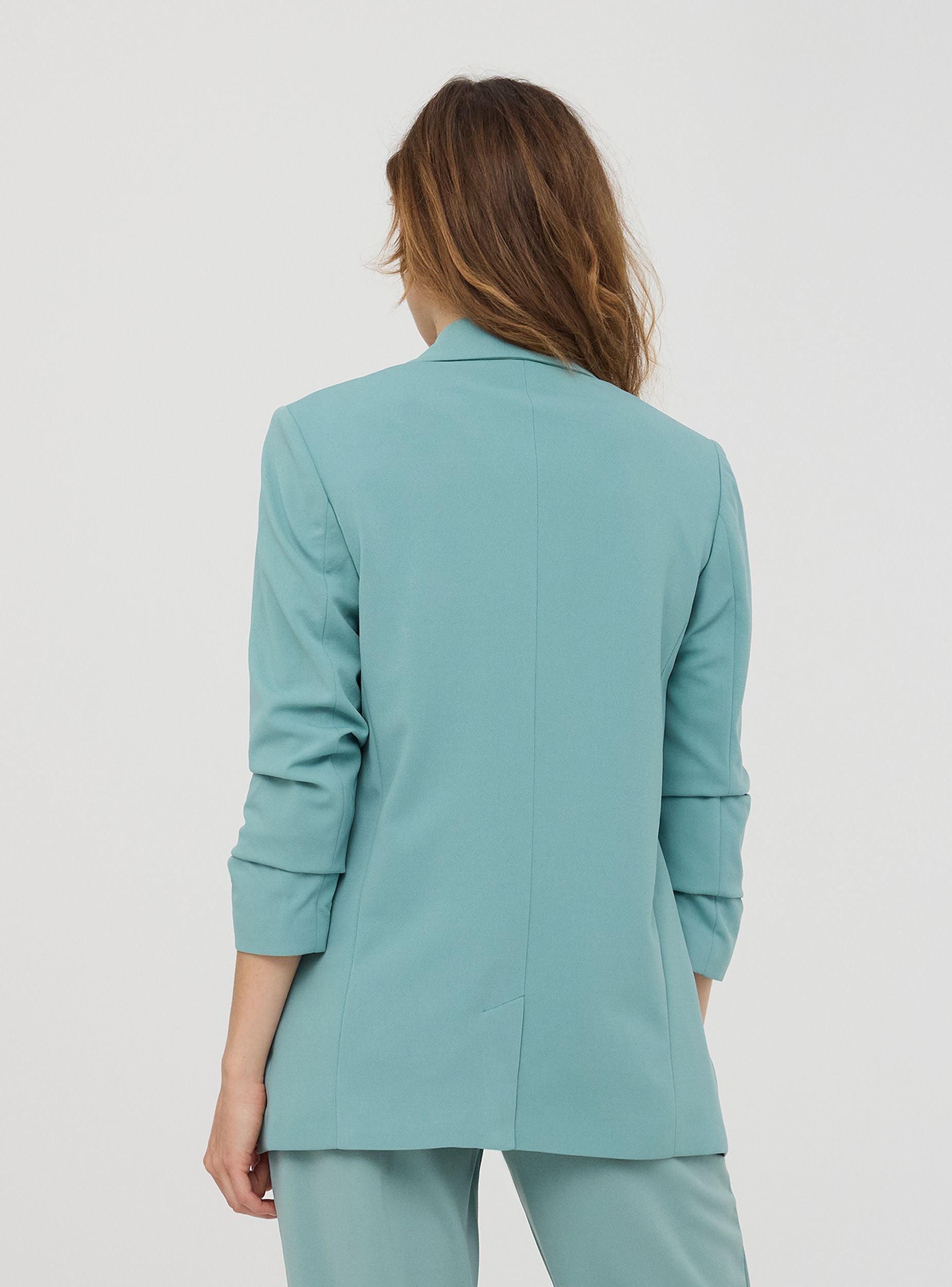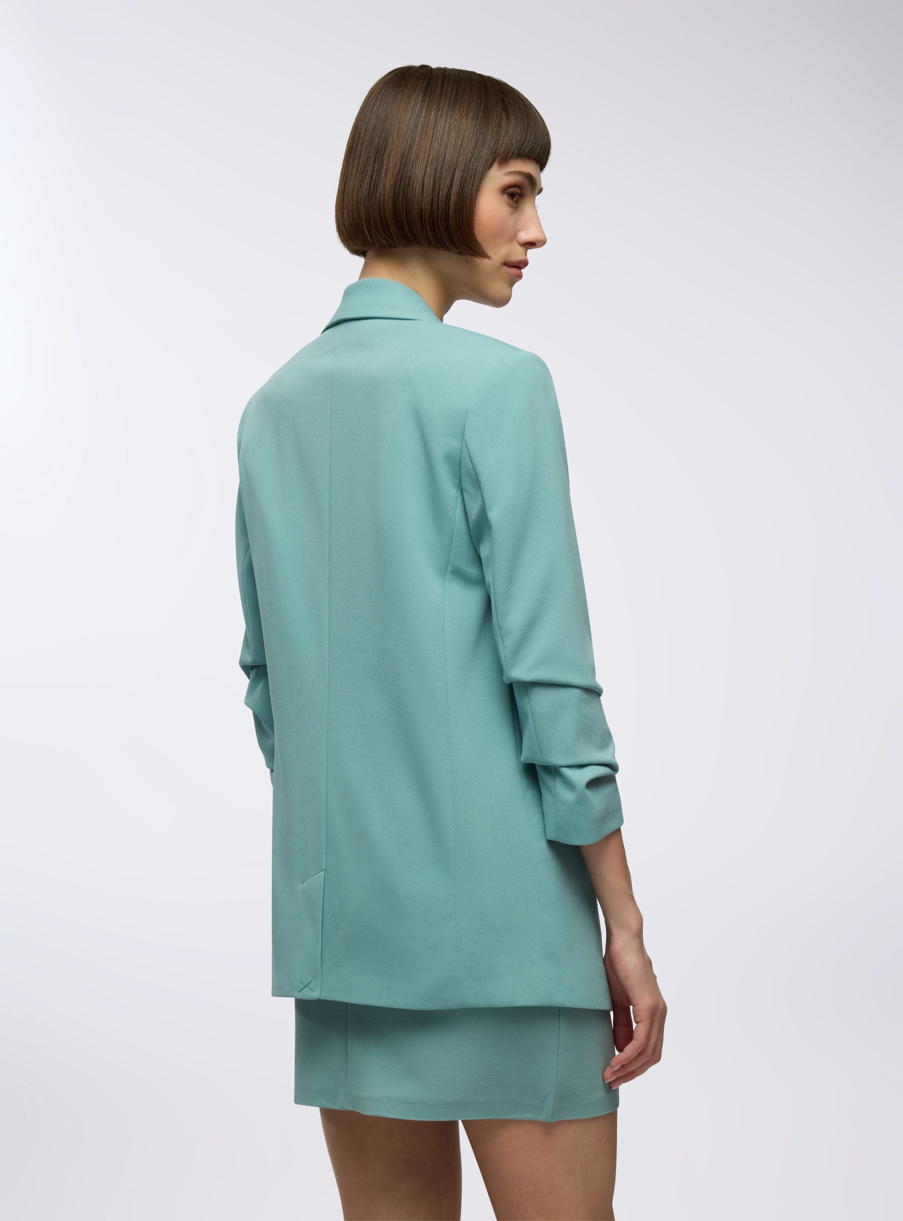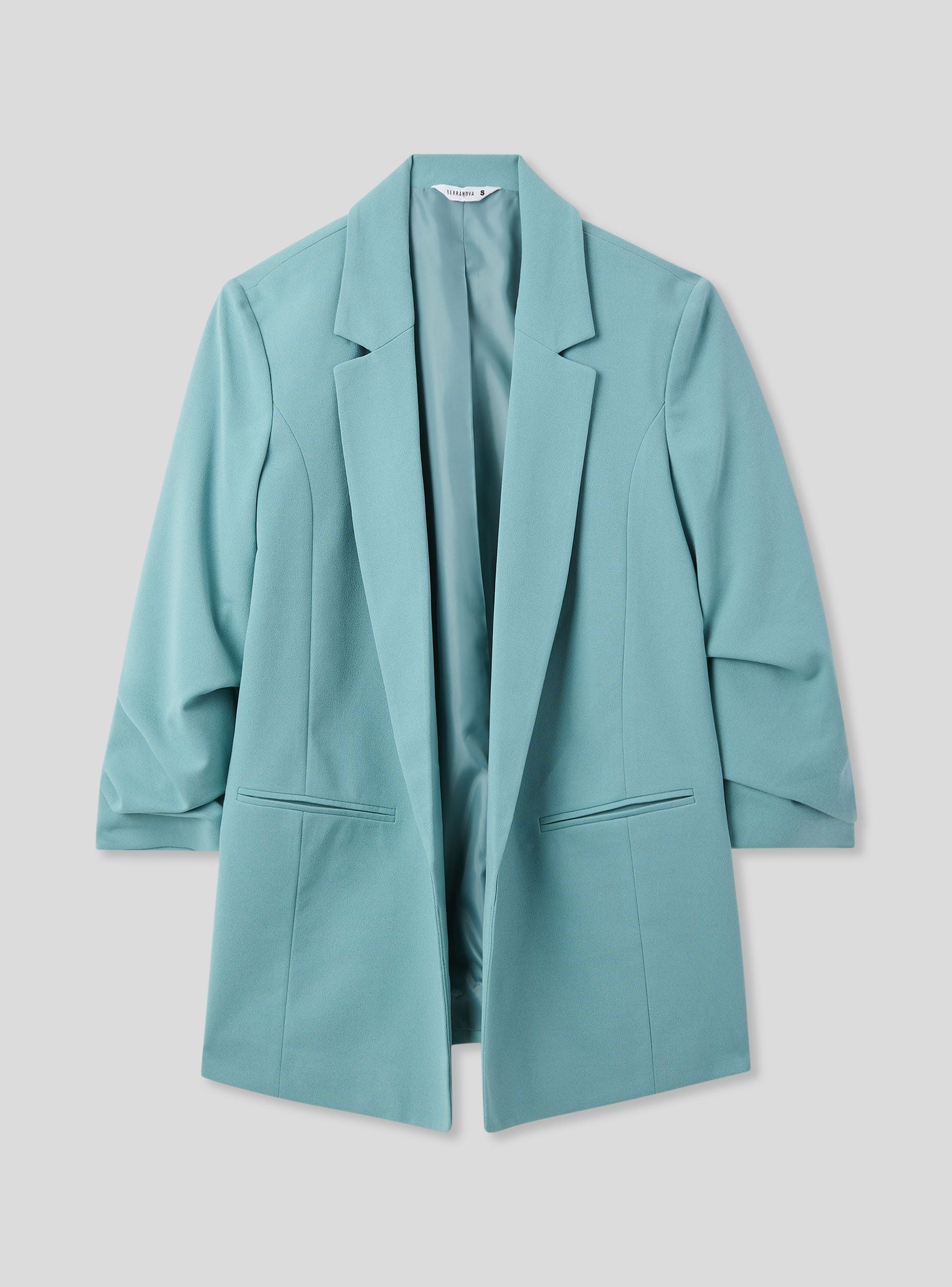Giacca da donna elegante e versatile, caratterizzata da una linea minimal a tinta unita e un design aperto senza chiusure. Le maniche arricciate aggiungono un tocco moderno e dinamico, mentre i revers definiscono uno stile sofisticato. Ideale per occasioni formali o casual chic, si abbina perfettamente a pantaloni a sigaretta, gonne midi o jeans per un look rilassato ma curato.