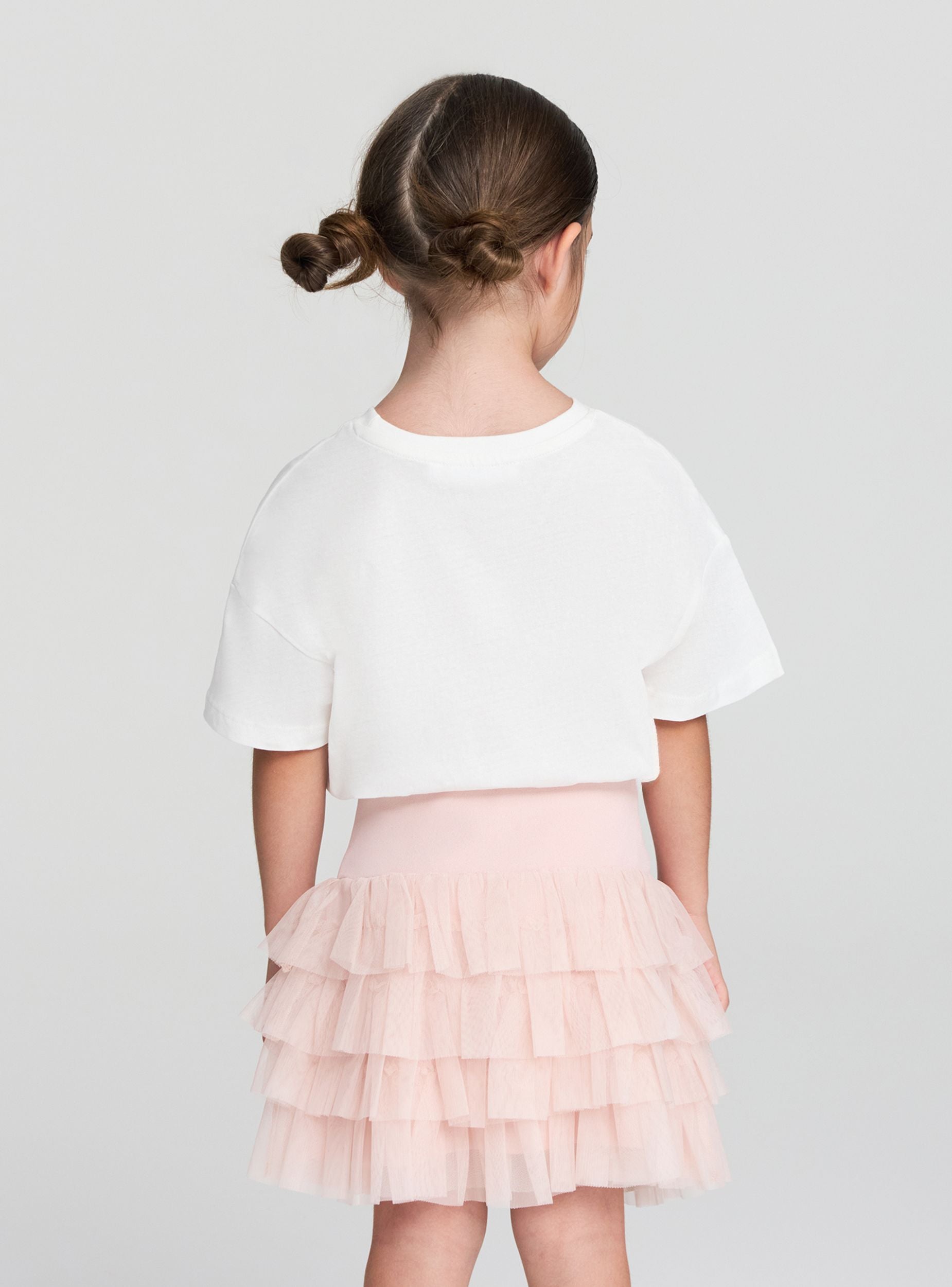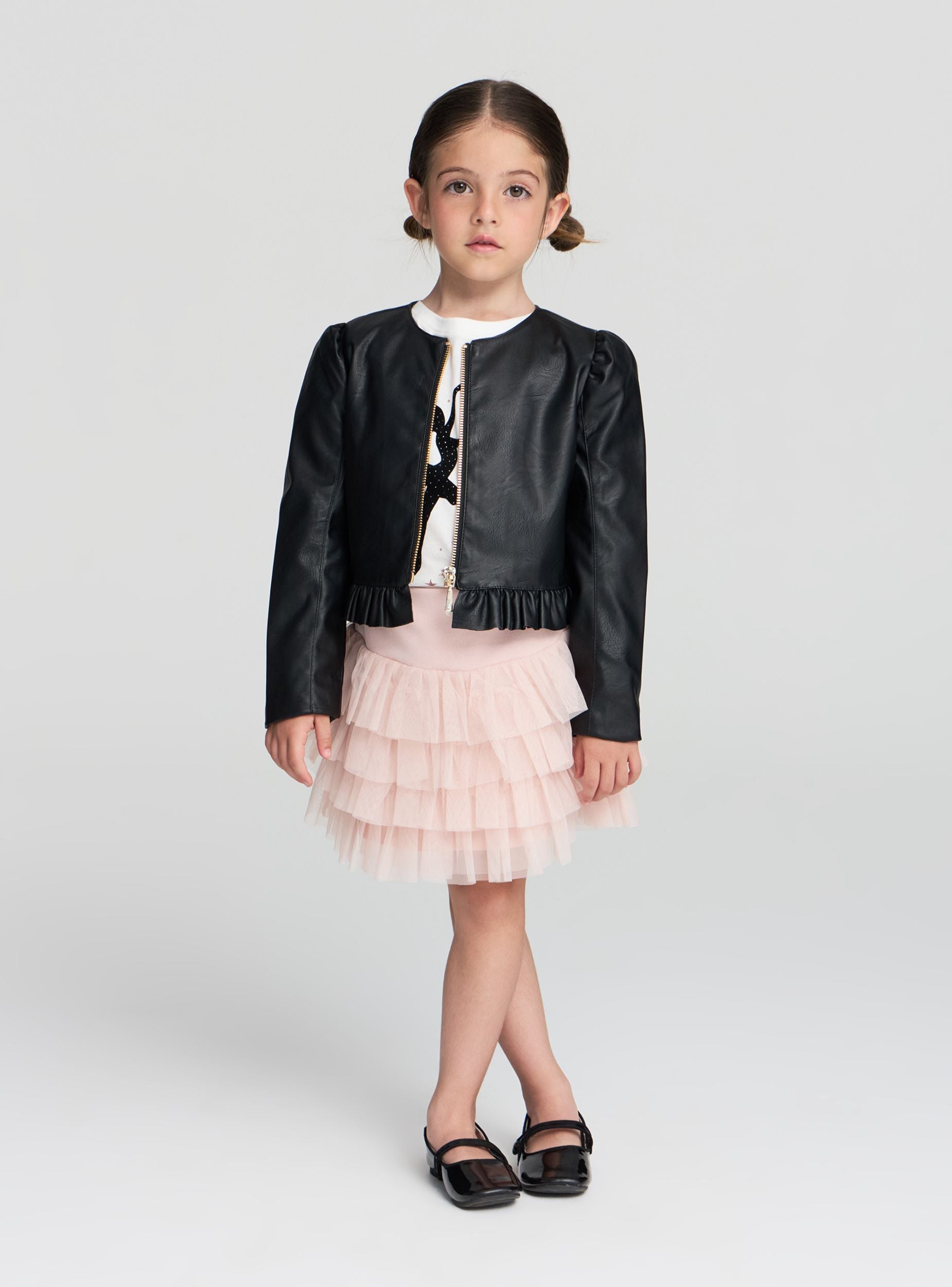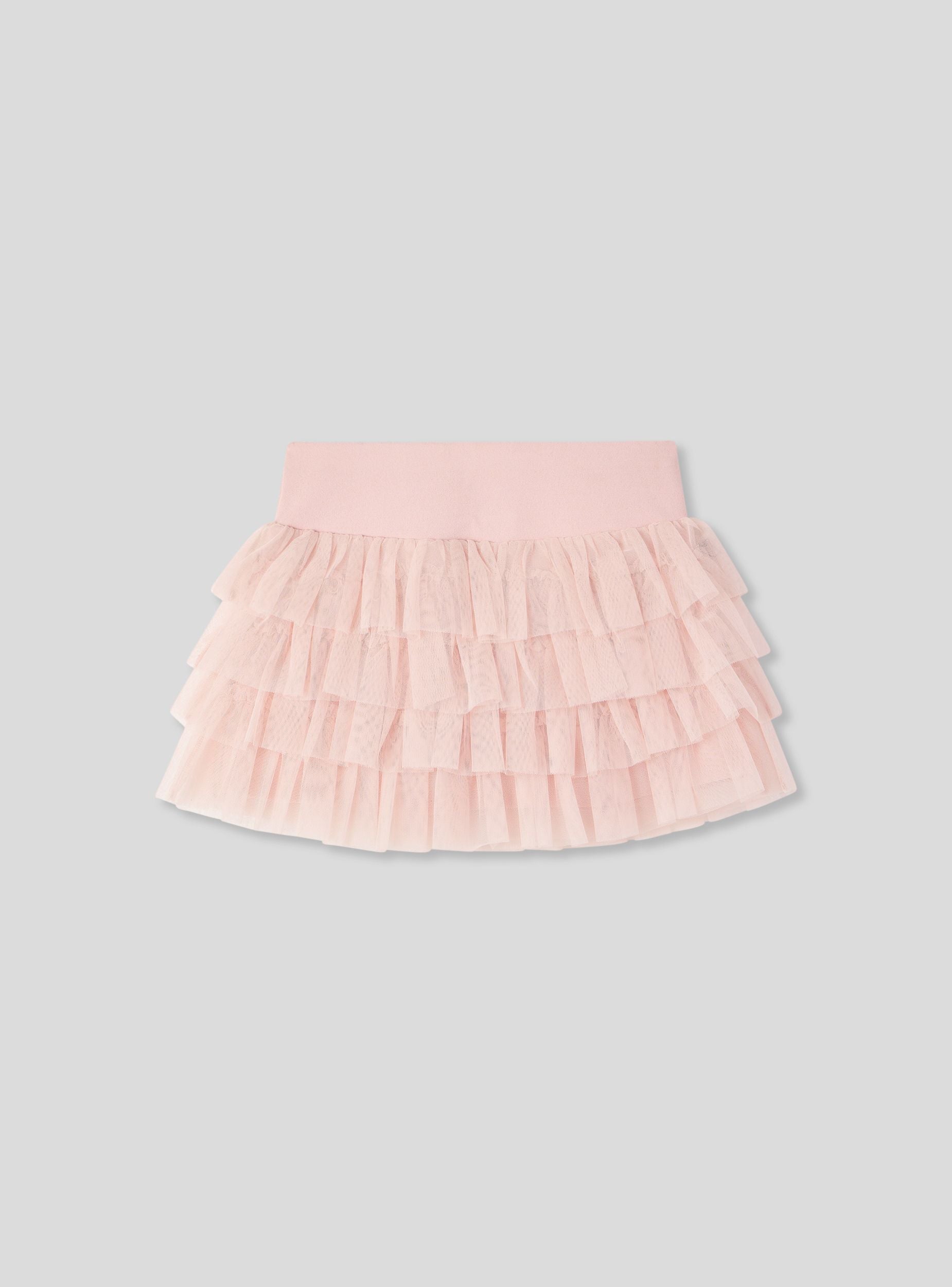 Gonna da bambina con balze in tulle, ideale per occasioni speciali o eventi eleganti. Il design con balze dona un tocco di movimento e originalità, perfetto per abbinamenti con top raffinati o magliette casual. Garantisce una vestibilità comoda. Un capo versatile che si adatta a diverse occasioni, dal giorno alla sera.Dettagli