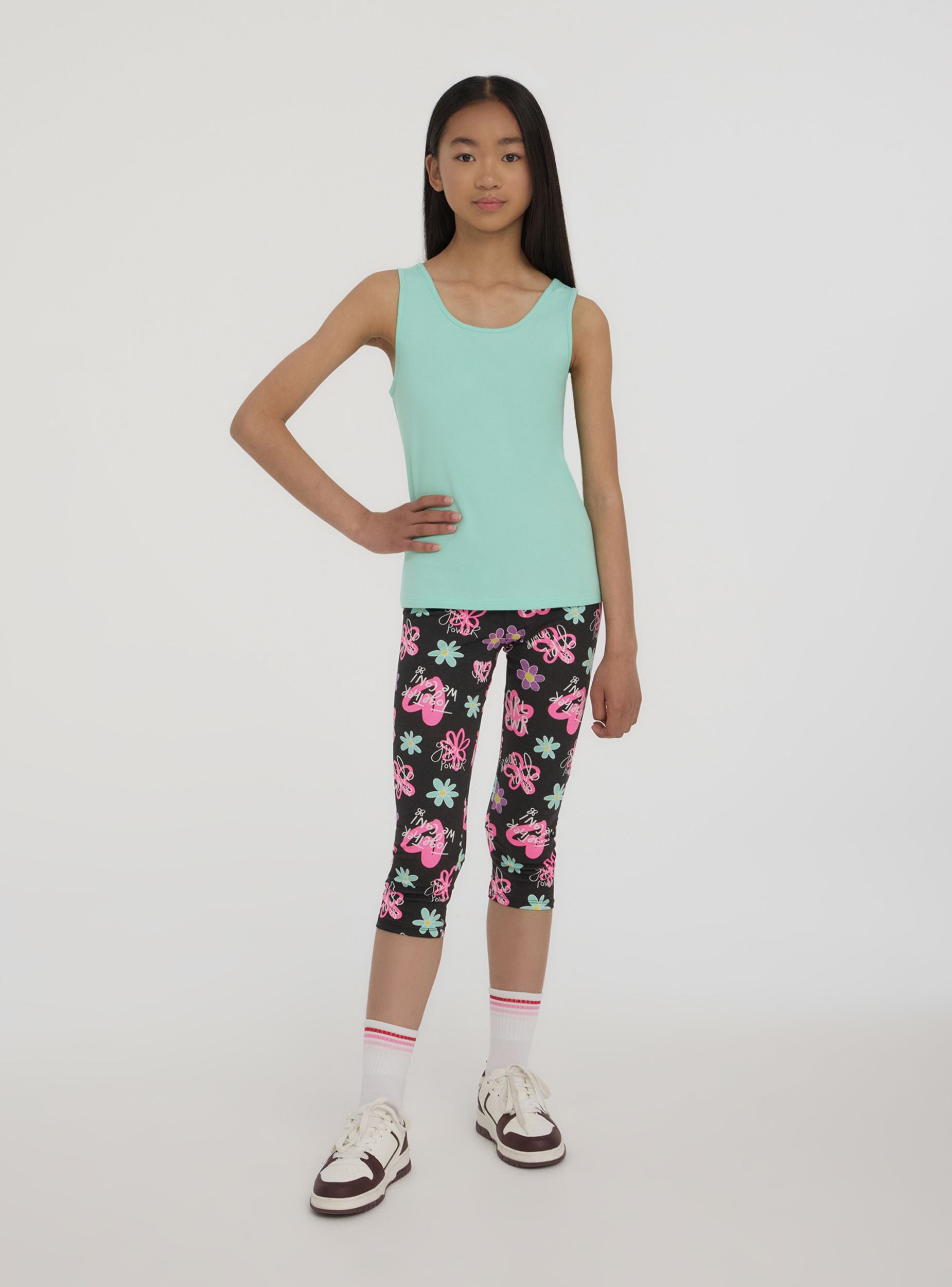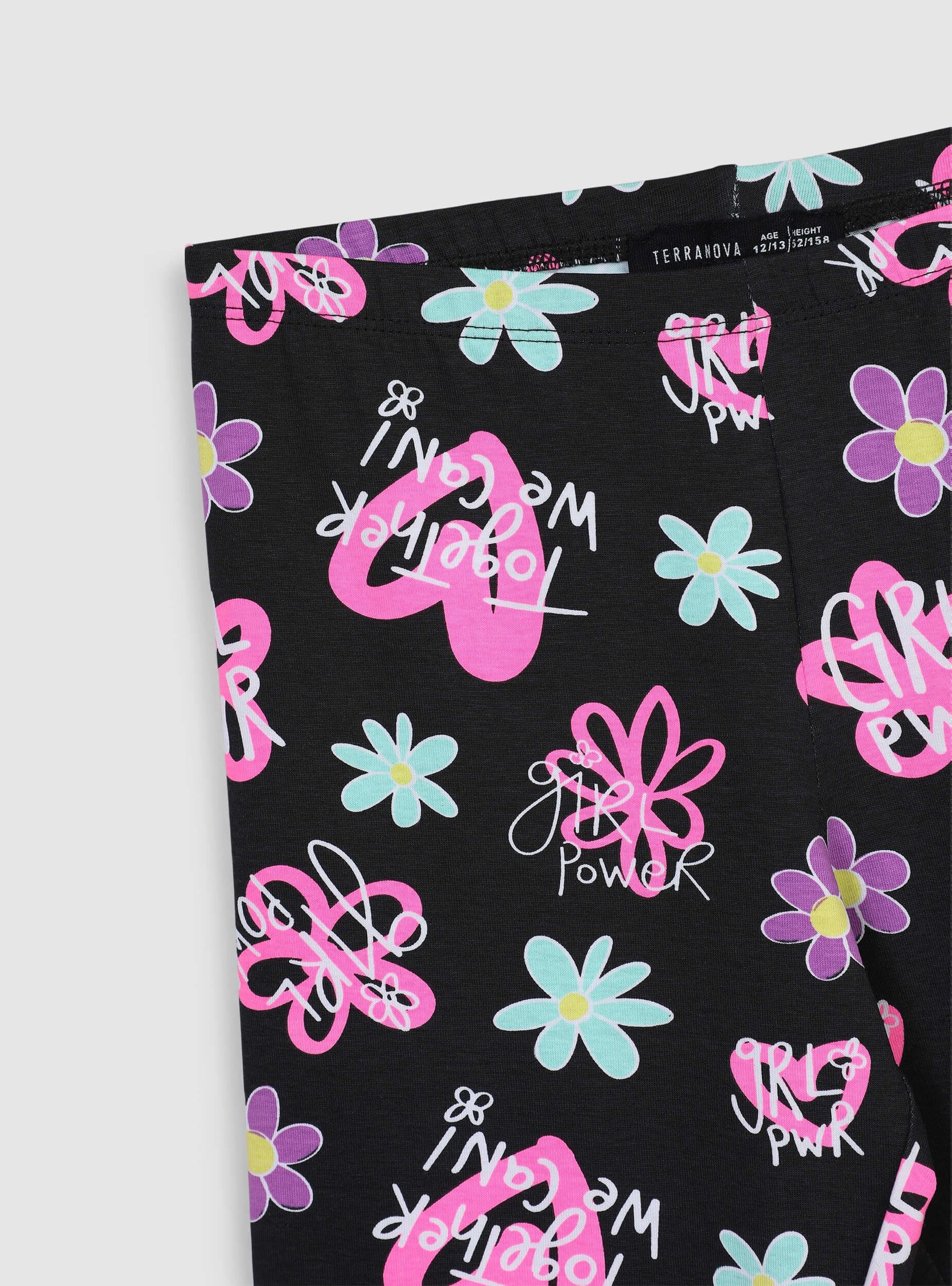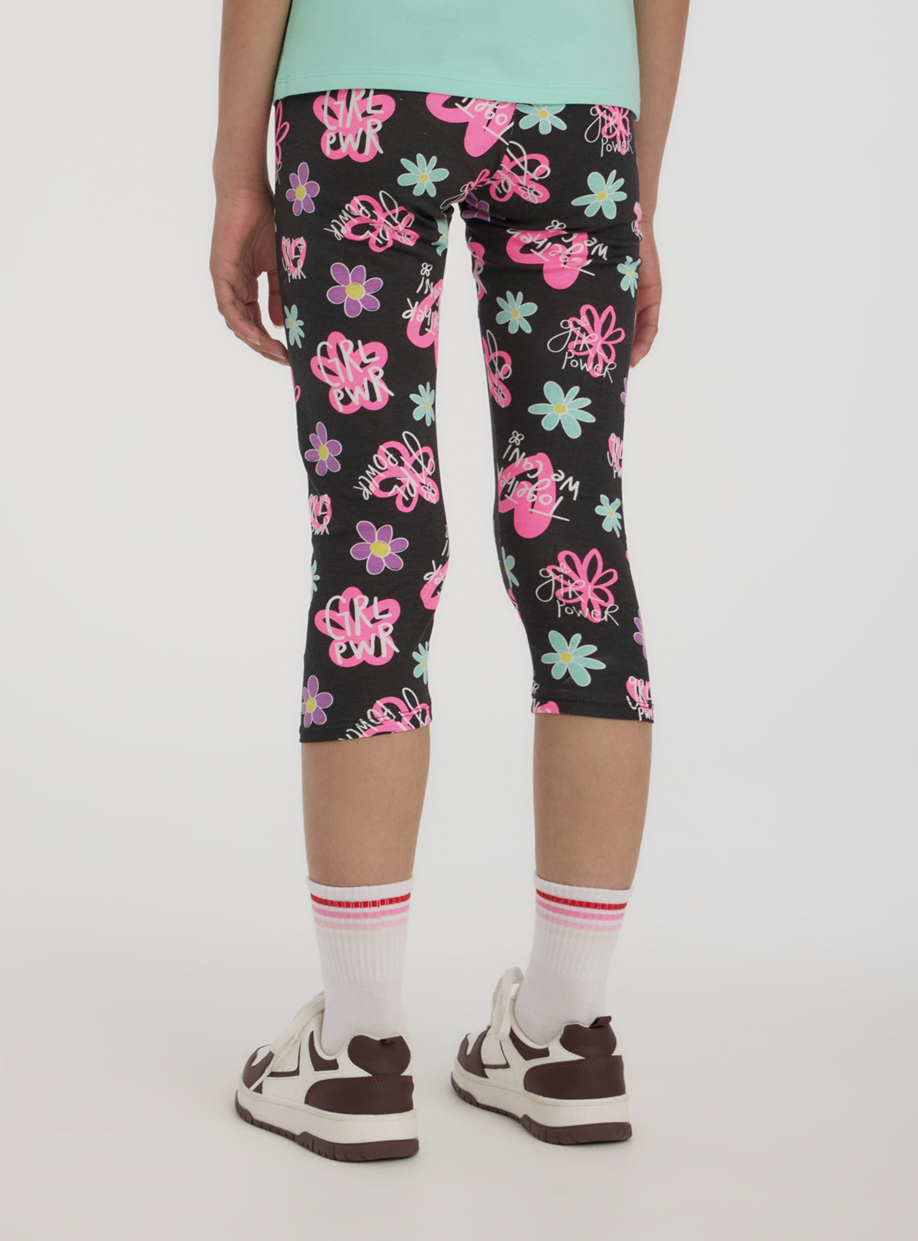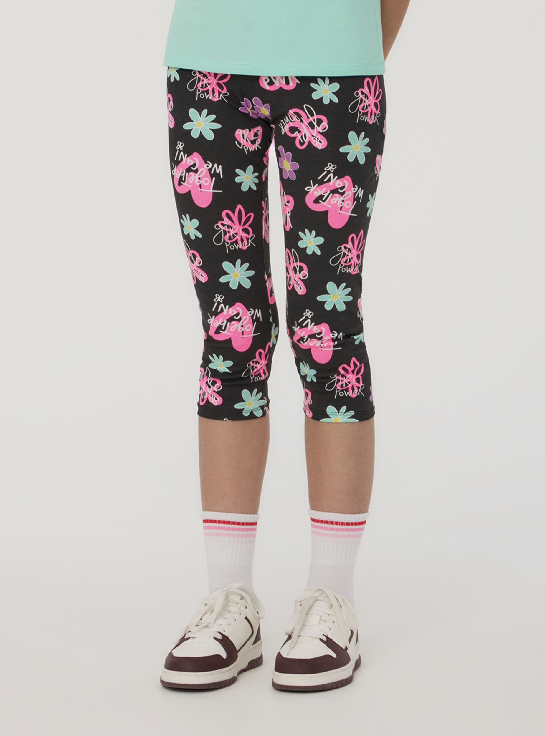 Leggings da bambina dal taglio tre quarti, perfetti per un look vivace e alla moda. La stampa colorata con fiori dona un tocco di allegria, ideale per aggiungere stile a ogni outfit. Elasticizzati e comodi, garantiscono libertà di movimento durante il gioco o le attività quotidiane. Perfetti da abbinare a t-shirt e sneakers per un look fresco e spensierato in ogni stagione.