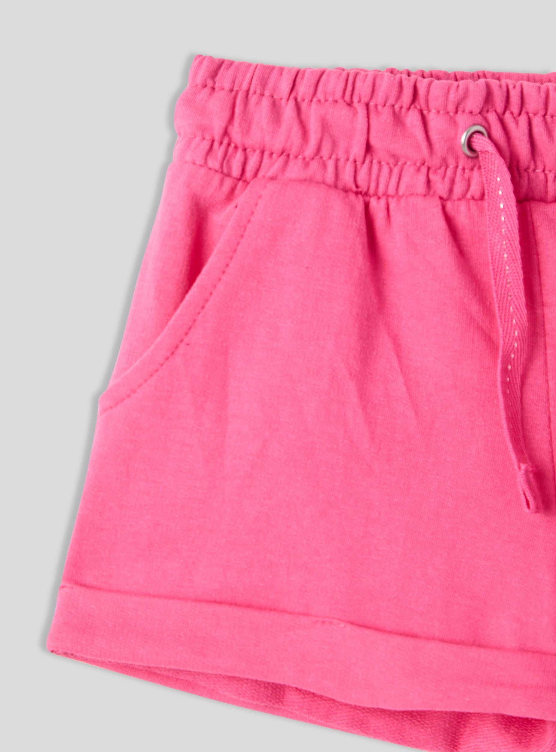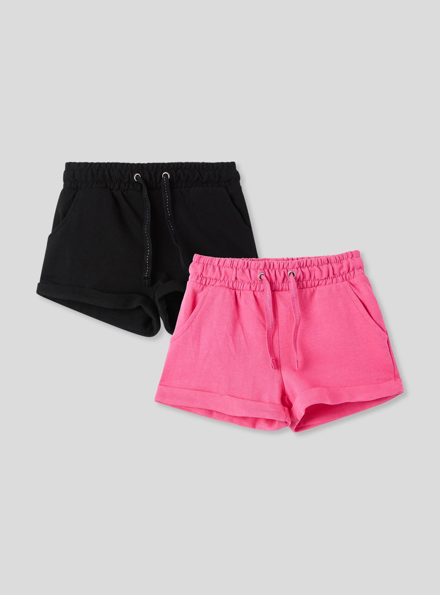 Confezione composta da 2 pantaloncini leggeri della tuta da bambina ideali per le giornate estive e il tempo libero. Caratterizzati da una tinta unita, presentano una pratica coulisse per regolare la vestibilità, comode tasche laterali e un elegante risvolto che aggiunge un tocco di stile casual e moderno.Dettagli