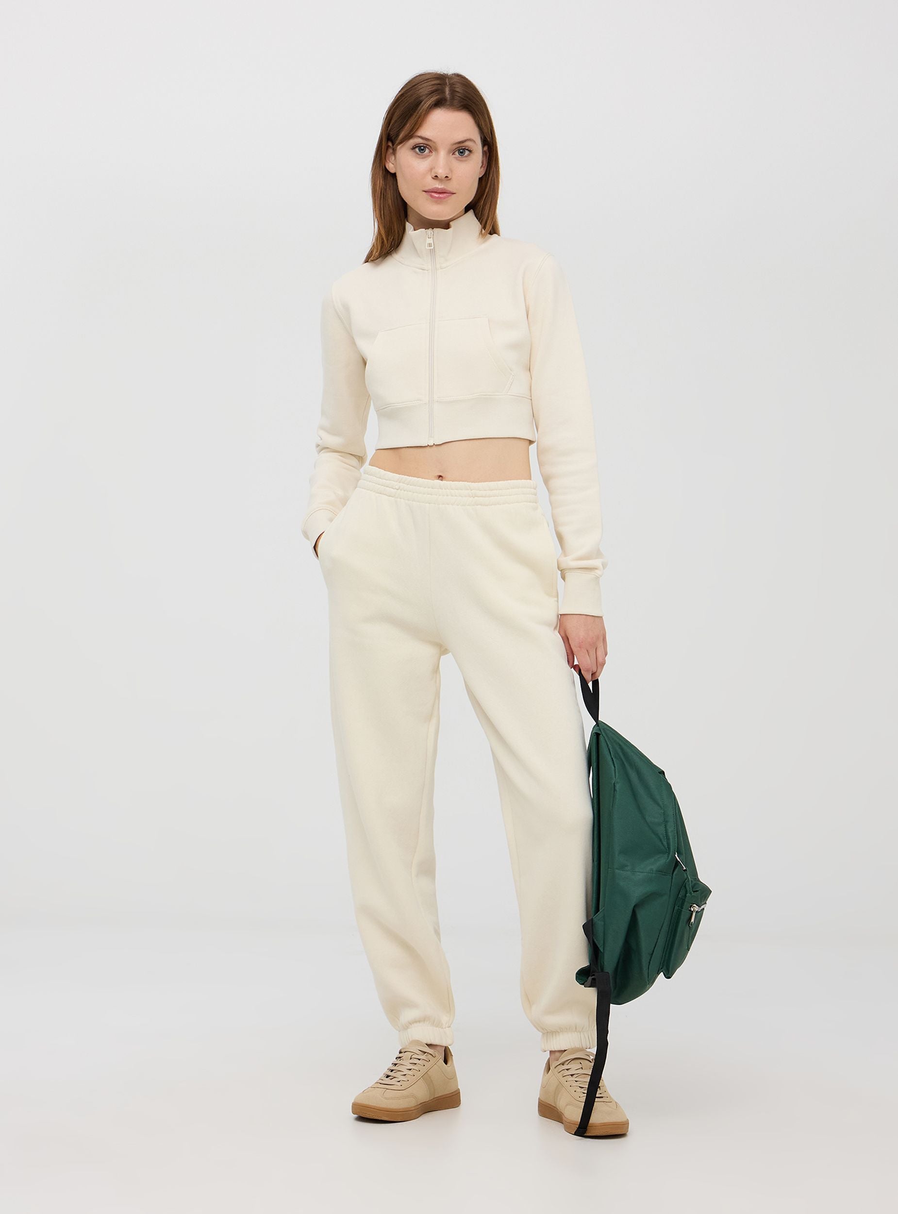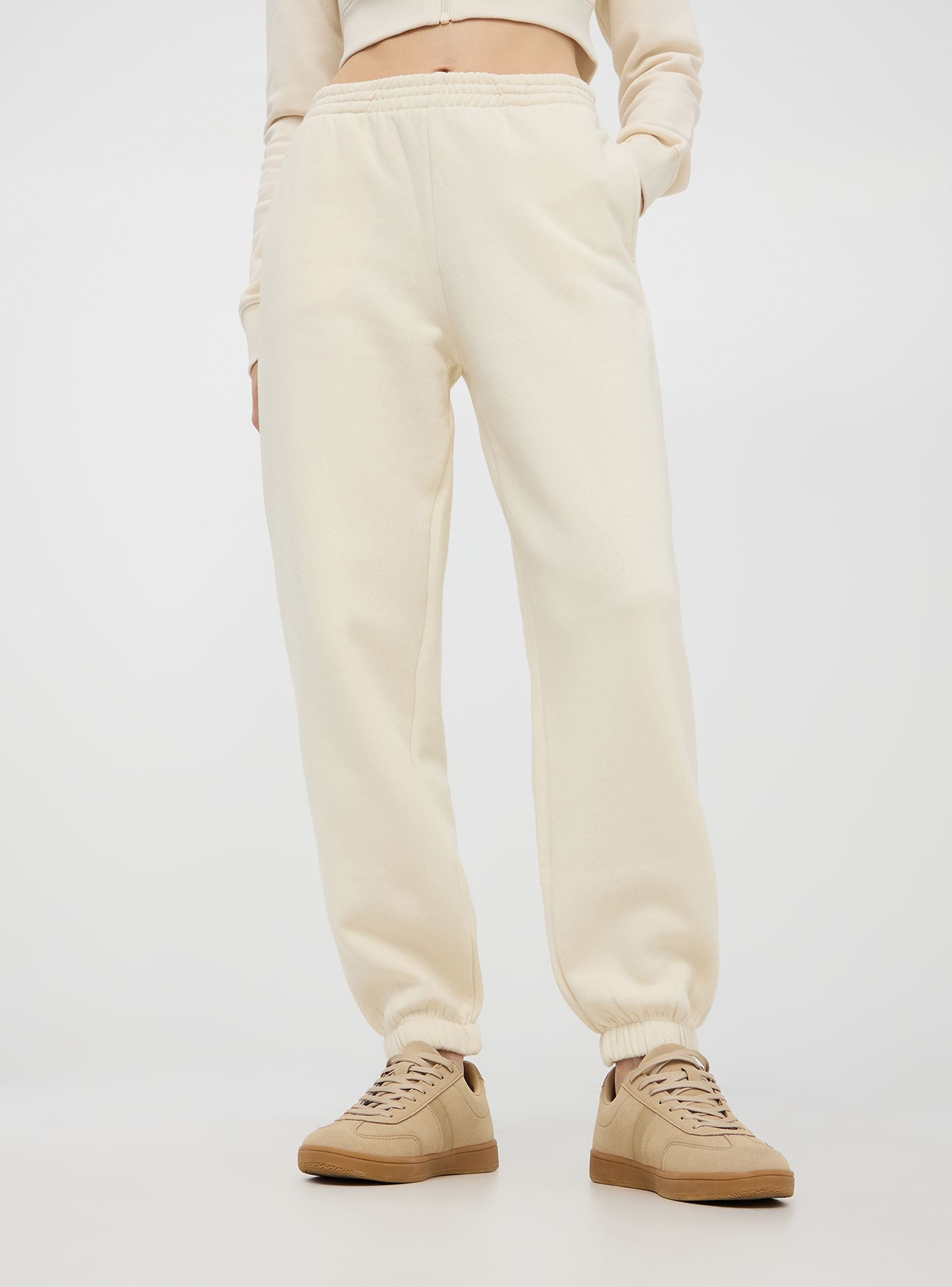 Pantaloni della tuta da donna a vita alta in tessuto pesante a tinta unita, con tasche laterali. Presentano una vestibilità comoda con elastico in vita e alle caviglie, garantendo massimo comfort durante l'uso. La tinta unita rende questi pantaloni versatili e facili da abbinare con diversi outfit. Ideali per attività sportive, giornate casual o momenti di relax in casa, questi pantaloni della tuta sono perfetti per mantenere uno stile comodo e alla moda in ogni occasione.