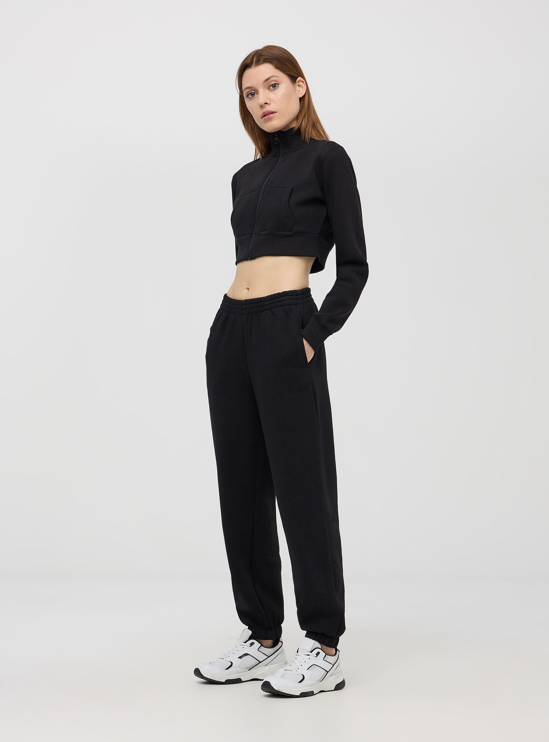Pantaloni della tuta da donna a vita alta in tessuto pesante a tinta unita, con tasche laterali. Presentano una vestibilità comoda con elastico in vita e alle caviglie, garantendo massimo comfort durante l'uso. La tinta unita rende questi pantaloni versatili e facili da abbinare con diversi outfit. Ideali per attività sportive, giornate casual o momenti di relax in casa, questi pantaloni della tuta sono perfetti per mantenere uno stile comodo e alla moda in ogni occasione.