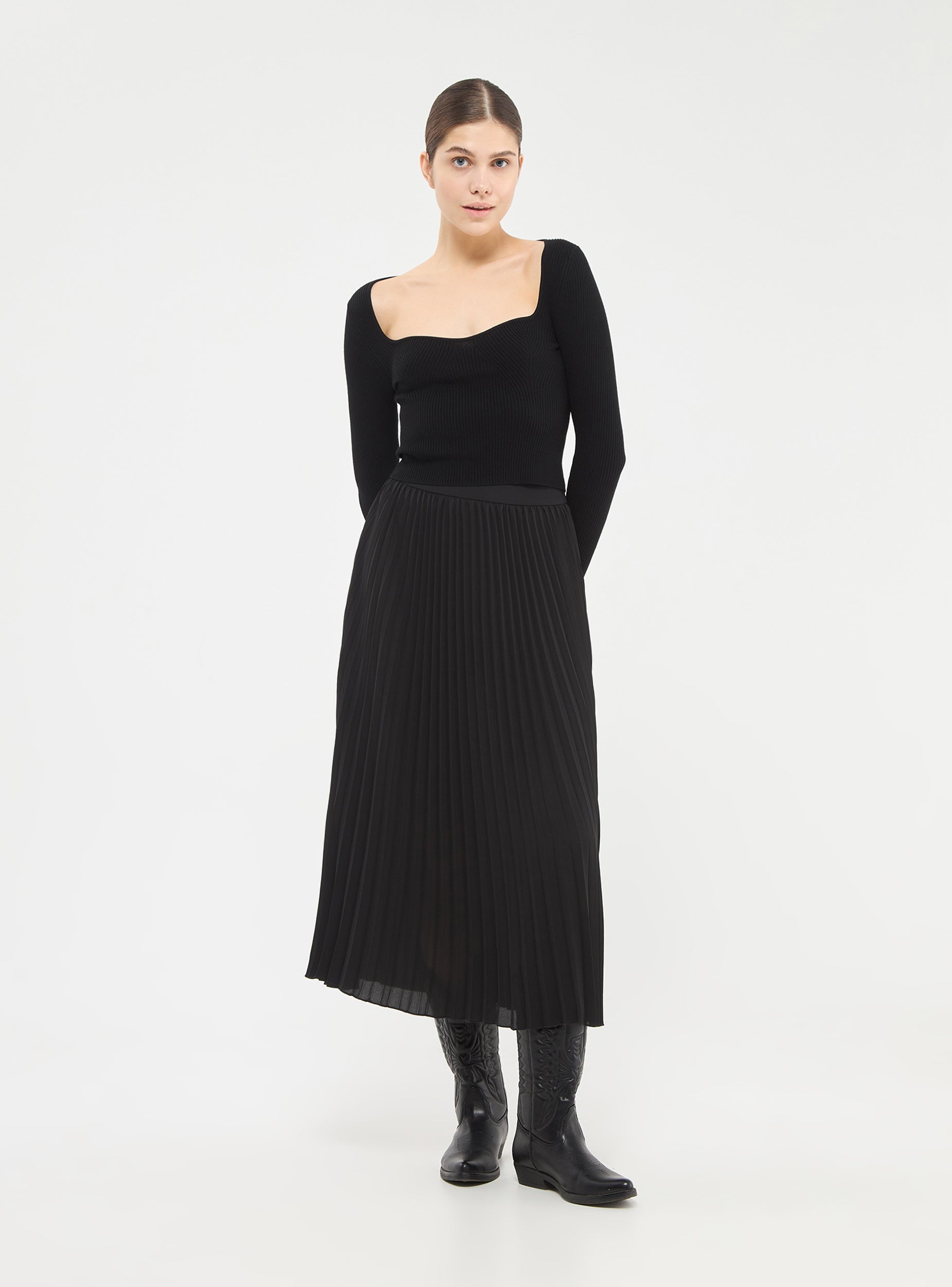Gonna da donna plissettata, elastico dietro. Lunghezza midi.