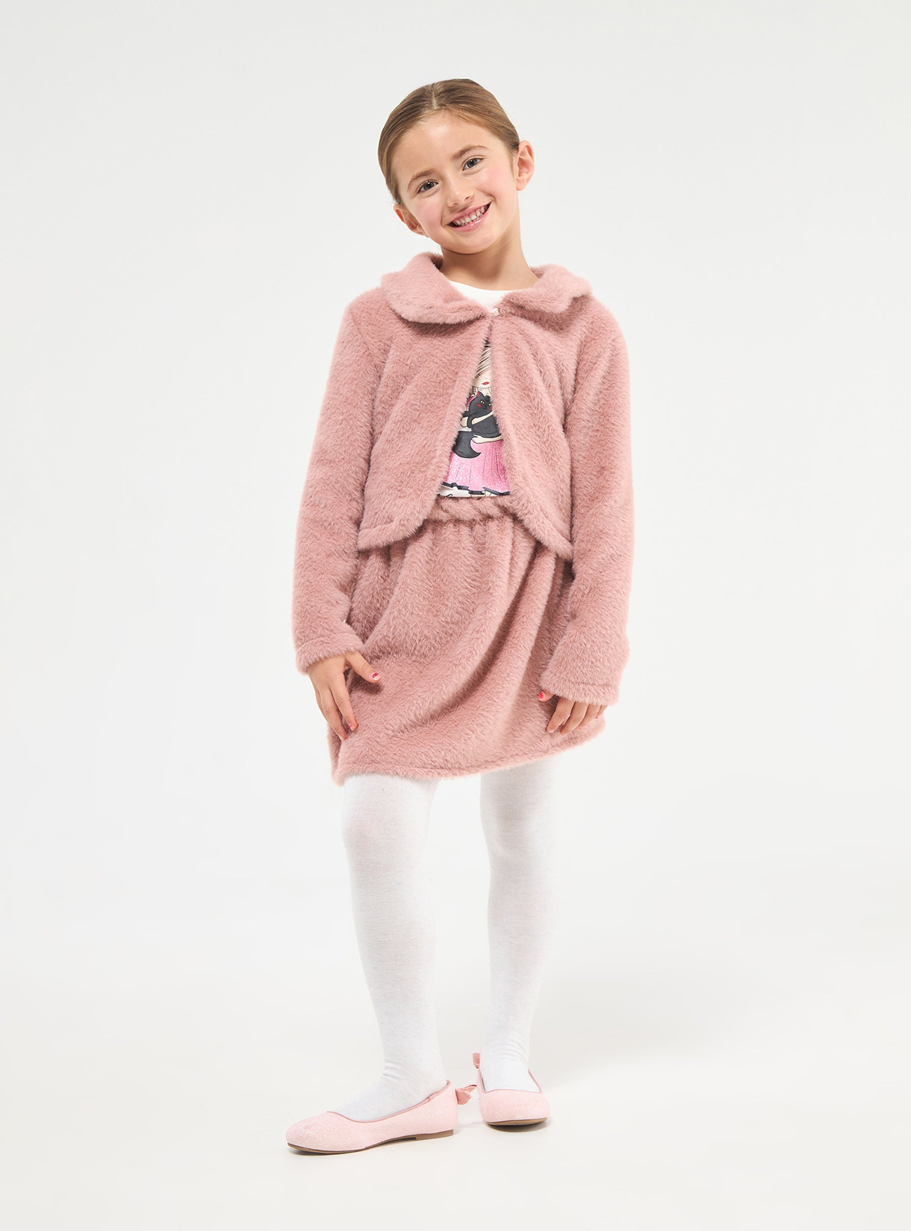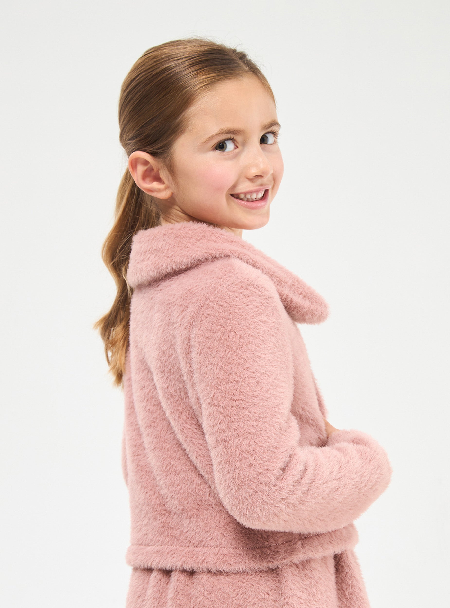Giacchina da bambina in maglia effetto pelliccia . Chiusura con bottone gioielloDettagli