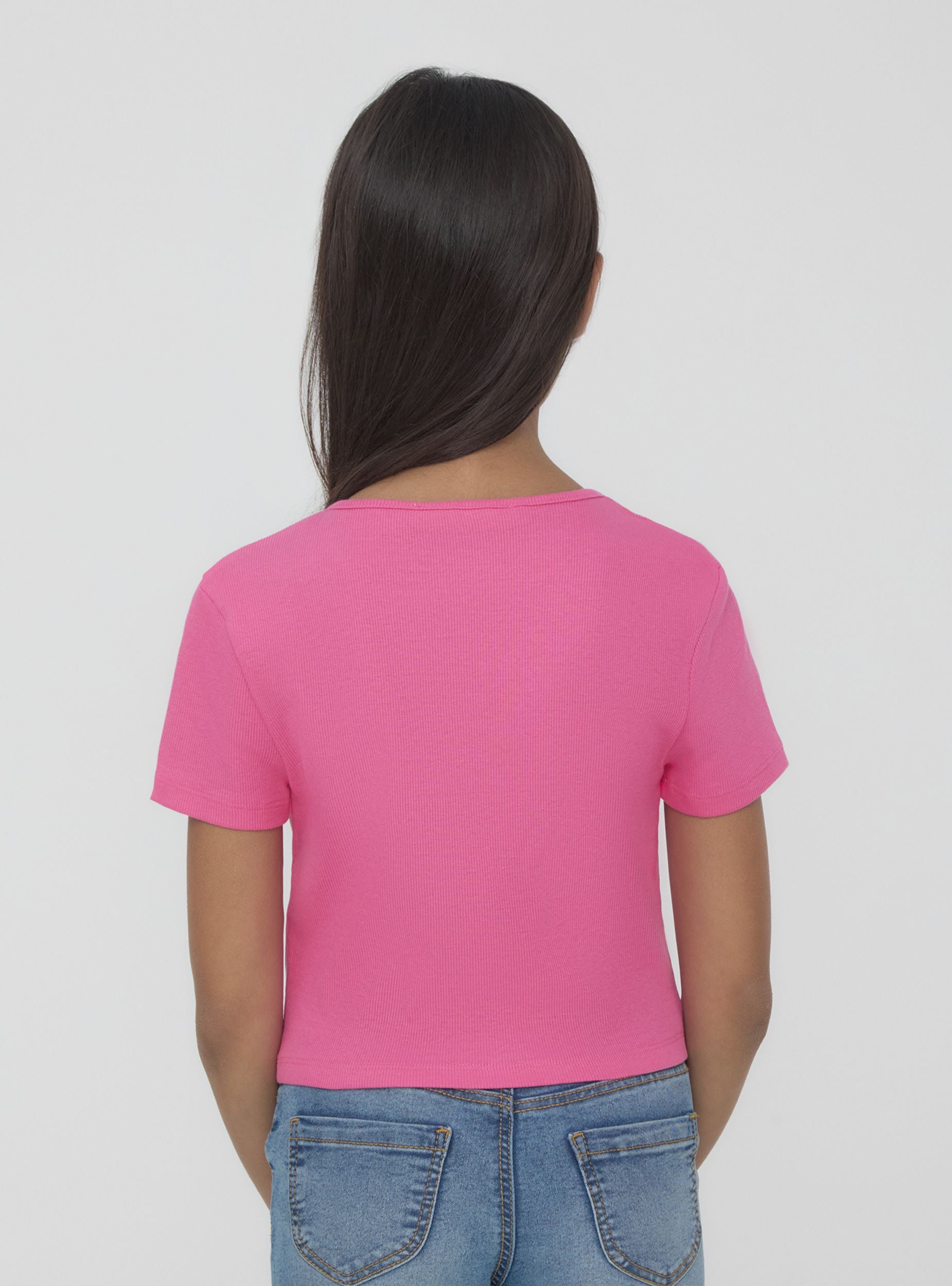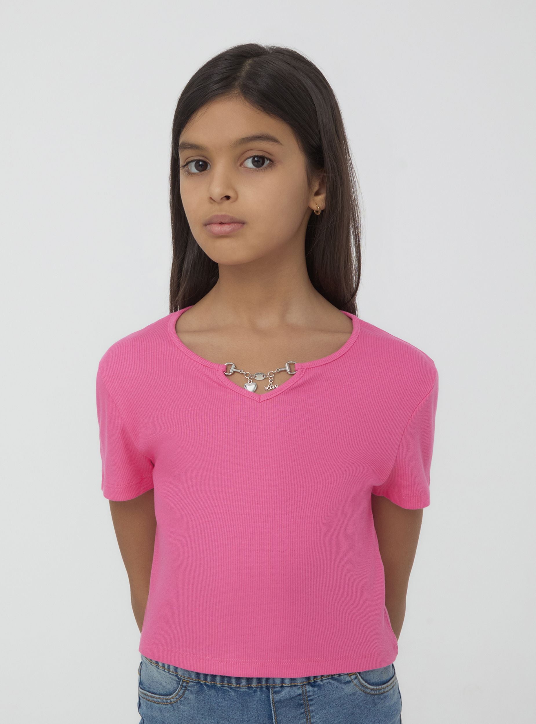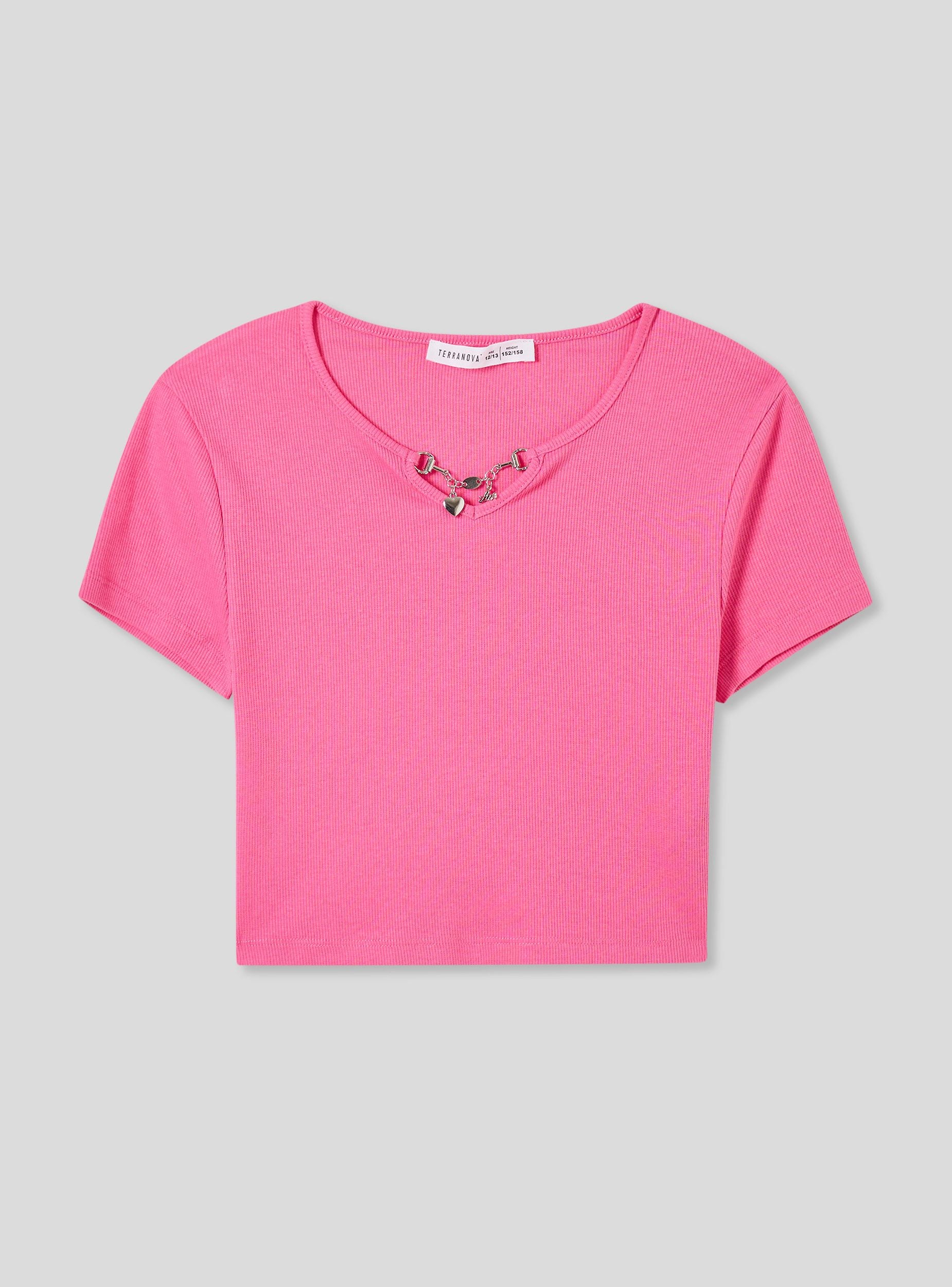Maglietta da bambina dallo stile trendy e femminile, con maniche corte e tessuto a costine che assicura comfort e vestibilità perfetta. Il design crop aggiunge un tocco alla moda, mentre il dettaglio decorativo con cuori e scritta "Love" impreziosisce il look. Perfetta da abbinare a jeans, gonne o shorts, è ideale per il tempo libero, le uscite con le amiche e le giornate più dinamiche.Dettagli