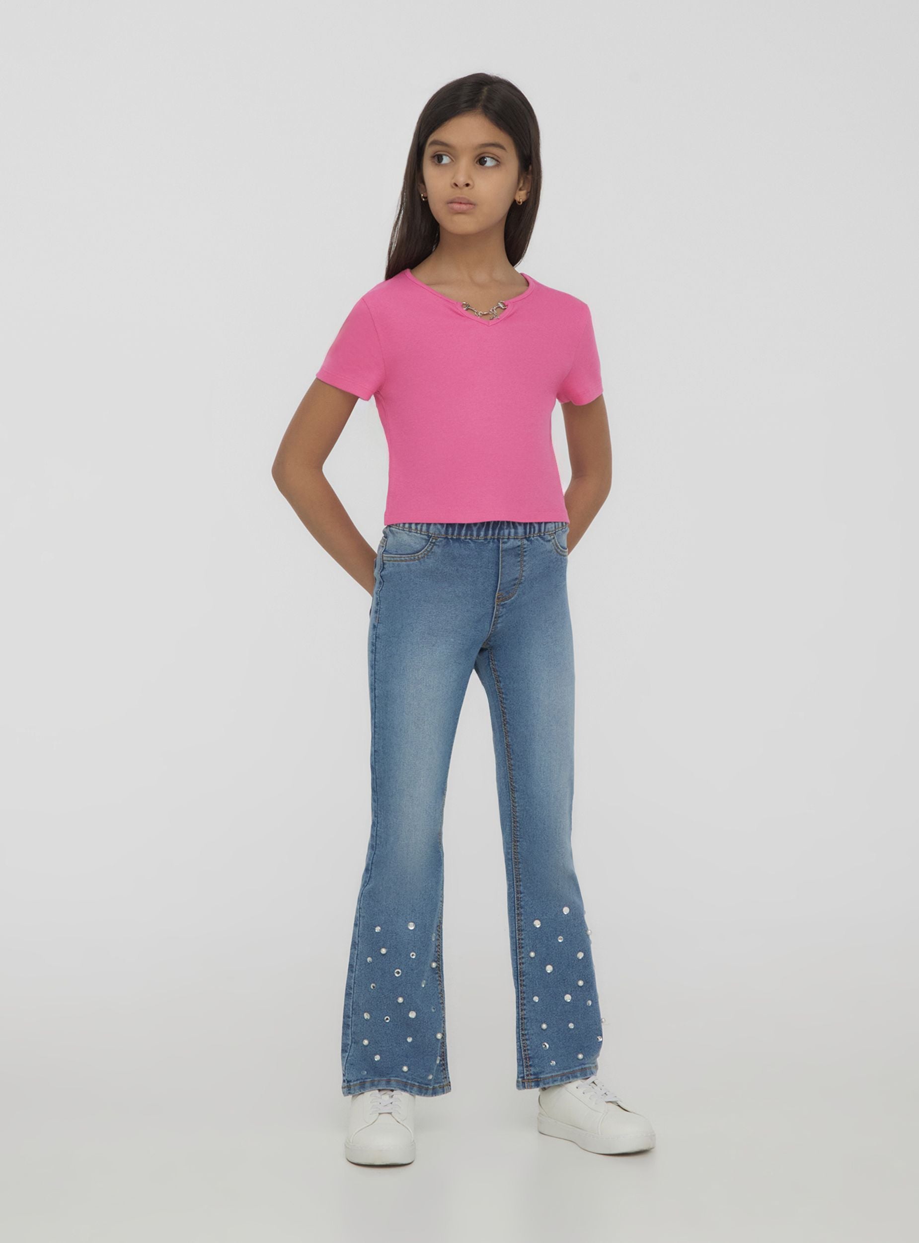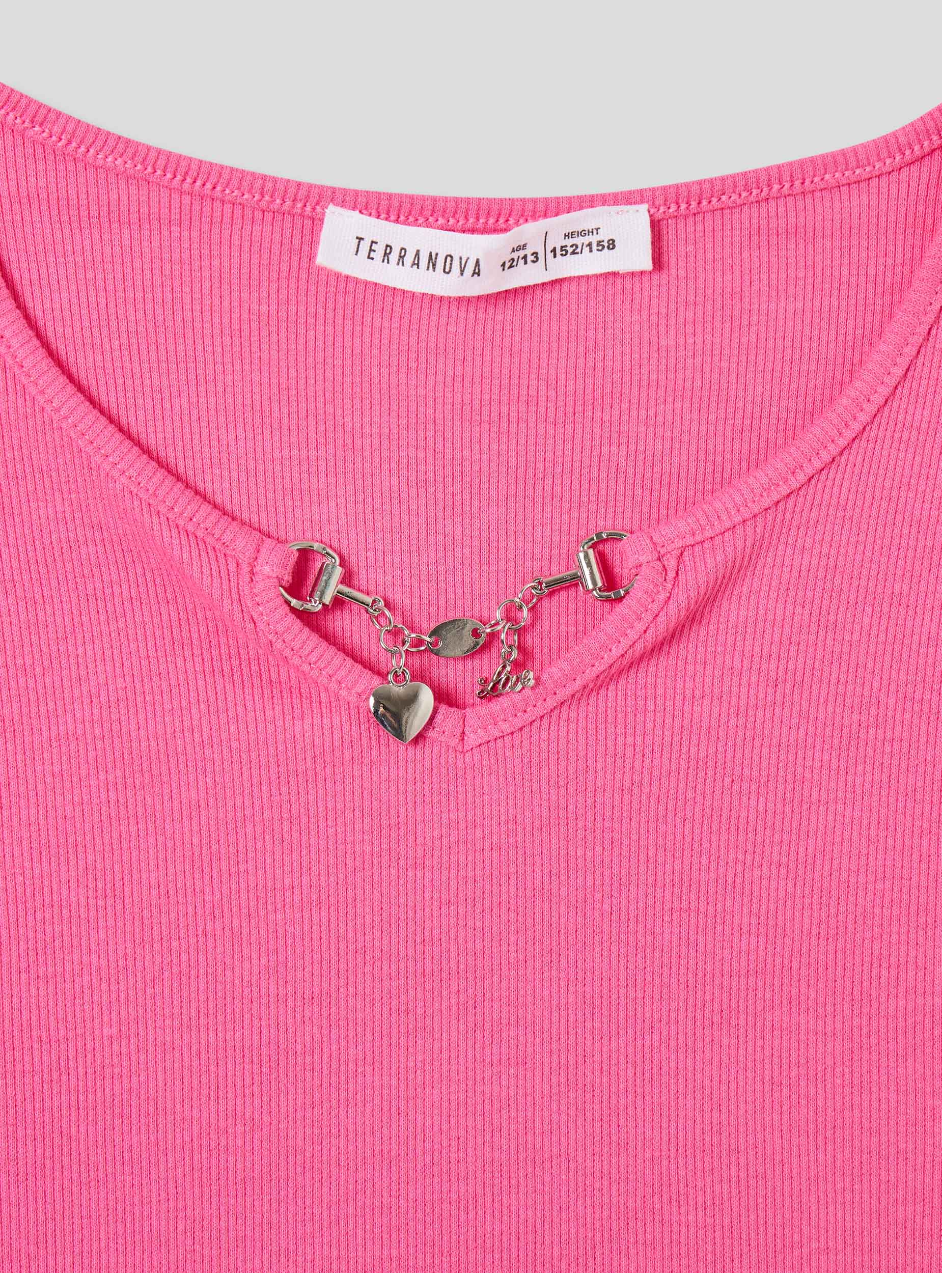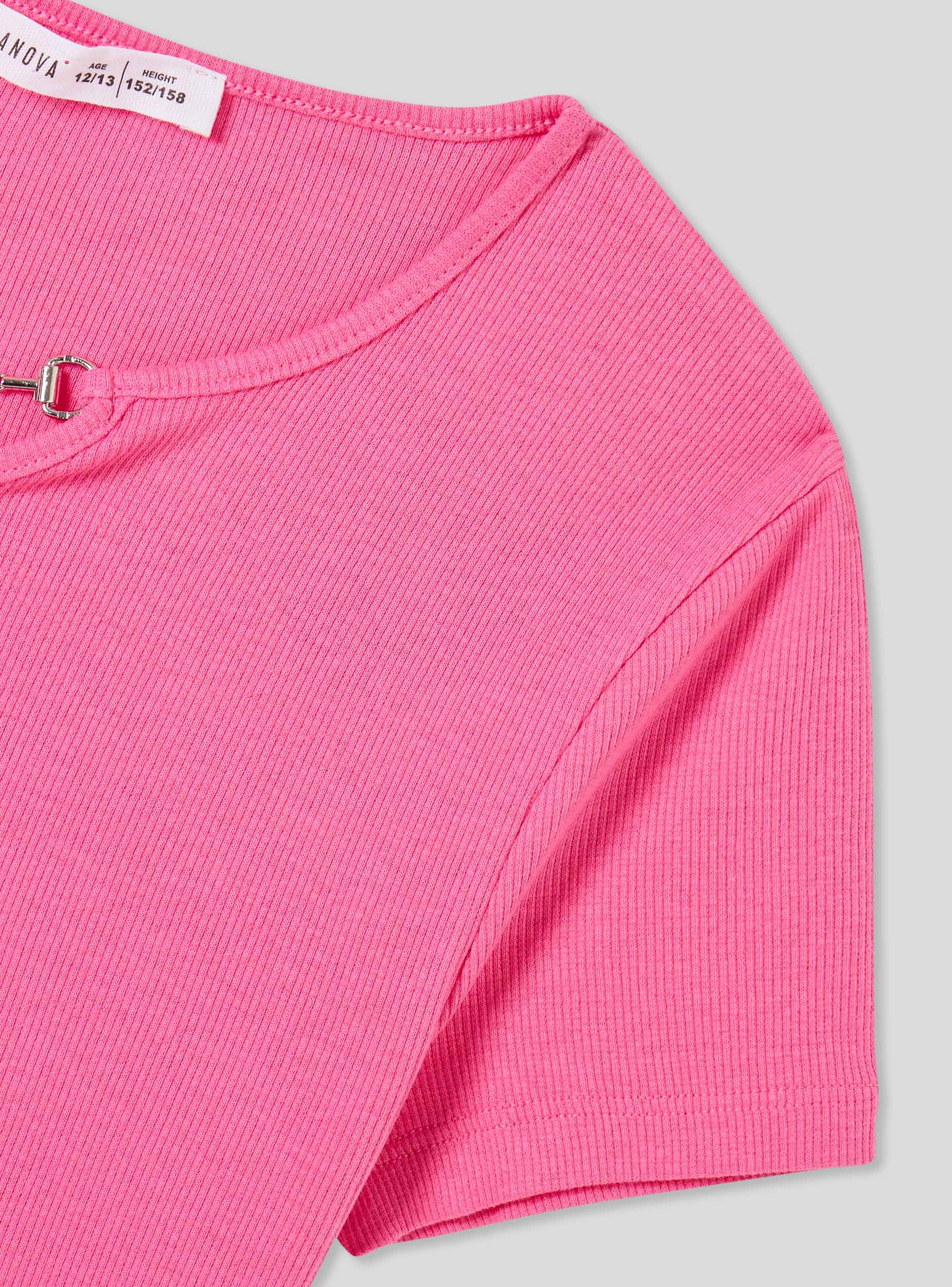 Maglietta da bambina dallo stile trendy e femminile, con maniche corte e tessuto a costine che assicura comfort e vestibilità perfetta. Il design crop aggiunge un tocco alla moda, mentre il dettaglio decorativo con cuori e scritta "Love" impreziosisce il look. Perfetta da abbinare a jeans, gonne o shorts, è ideale per il tempo libero, le uscite con le amiche e le giornate più dinamiche.Dettagli