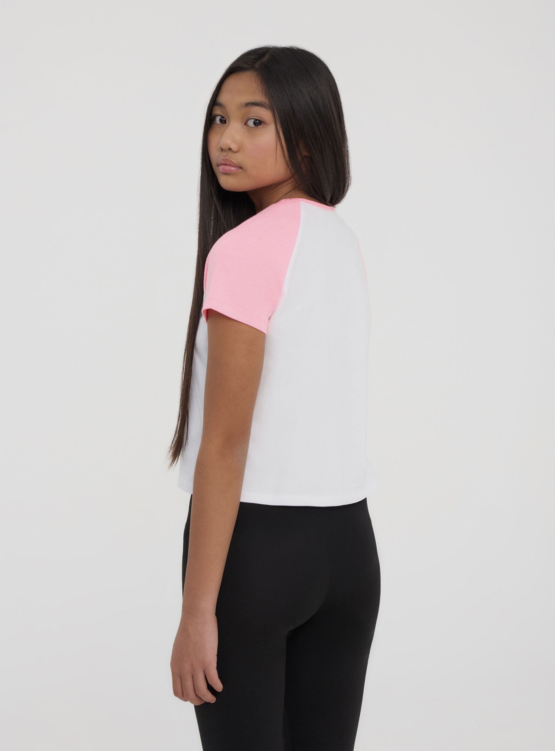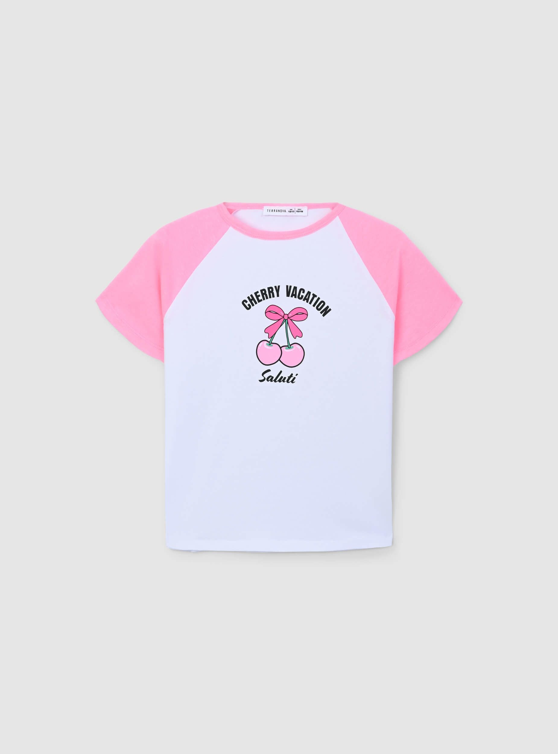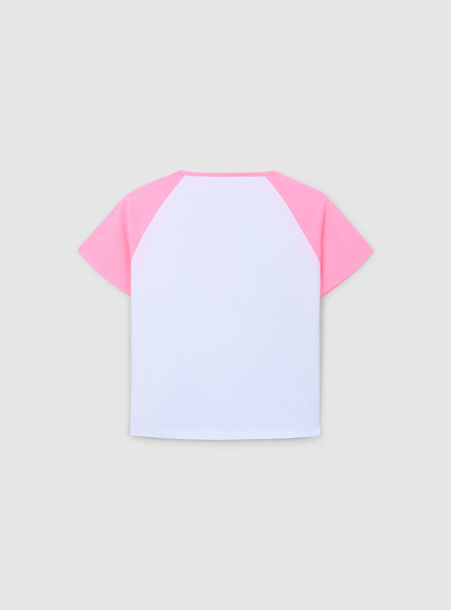 Maglietta da bambina a maniche corte raglan e girocollo, perfetta per un look dinamico e giocoso. La stampa vivace aggiunge un tocco di originalità, ideale per creare outfit casual e colorati. Perfetta da abbinare a jeans, leggings o shorts per il tempo libero e le giornate di svago. Comoda e versatile, è un must-have per chi ama vestire con stile e comfort.