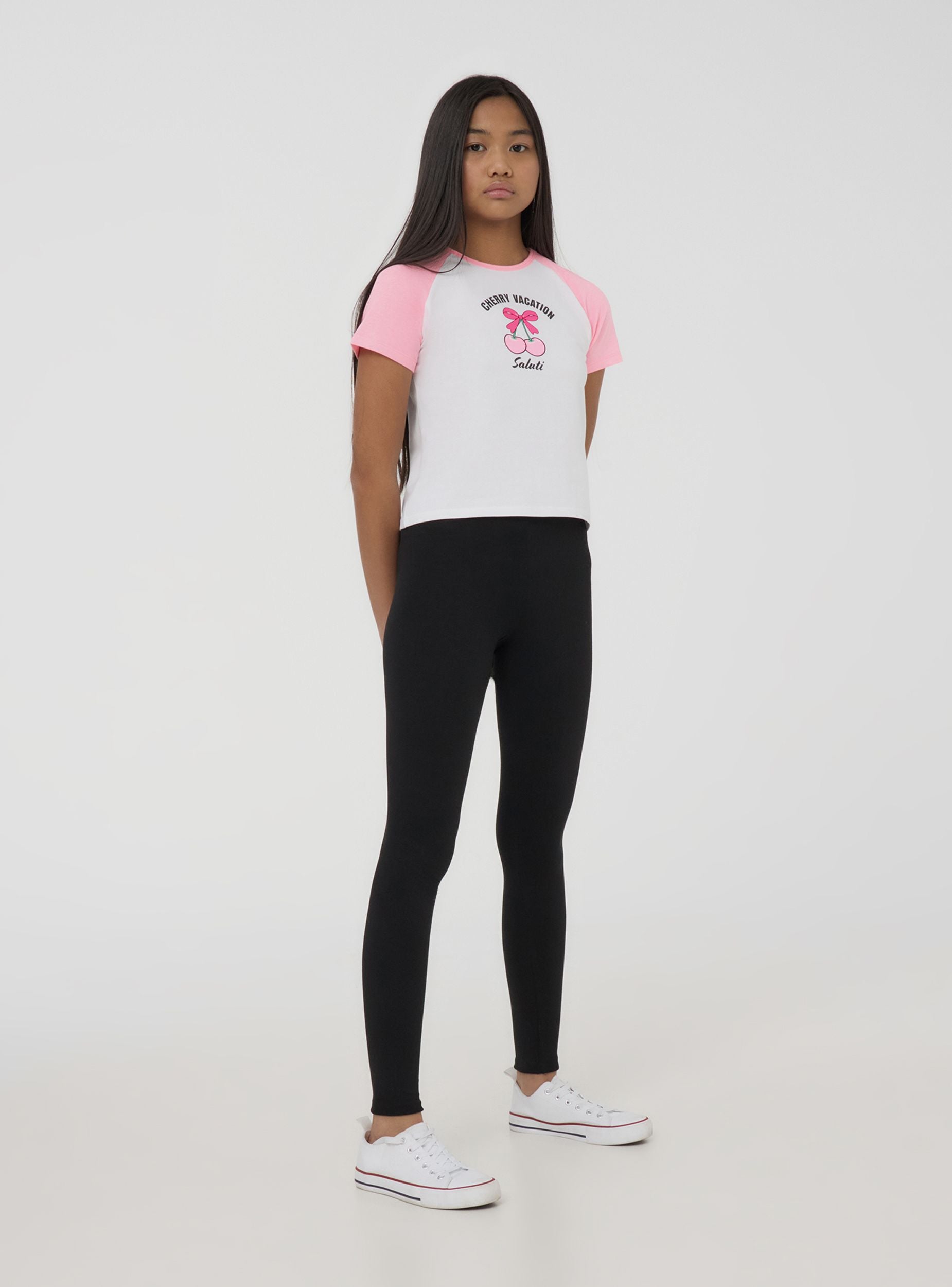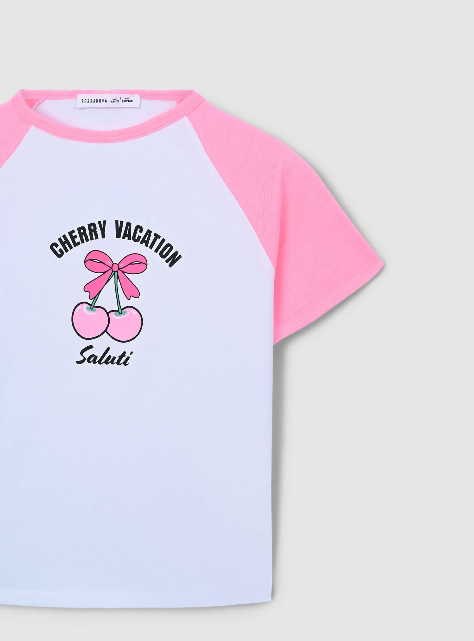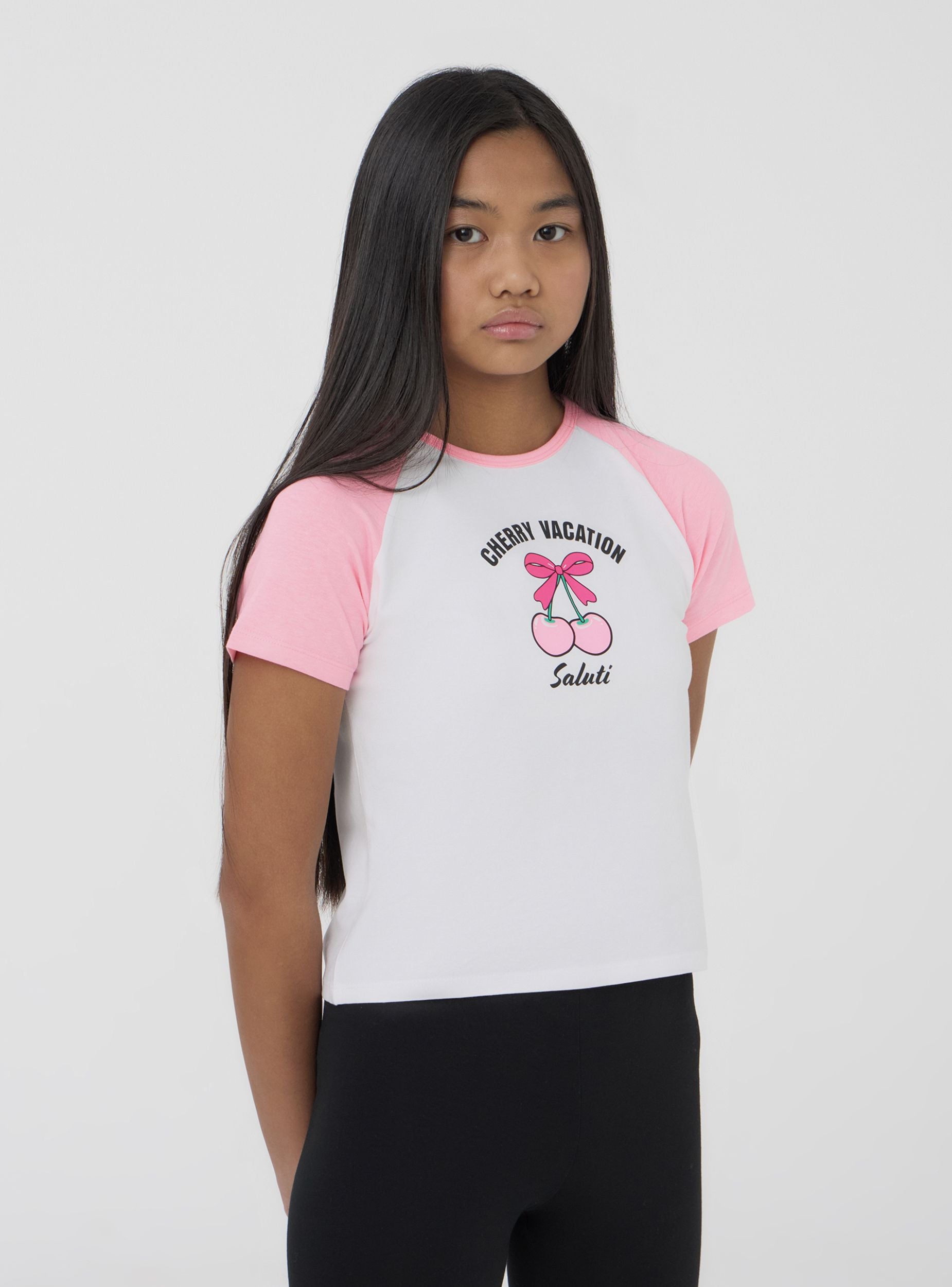 Maglietta da bambina a maniche corte raglan e girocollo, perfetta per un look dinamico e giocoso. La stampa vivace aggiunge un tocco di originalità, ideale per creare outfit casual e colorati. Perfetta da abbinare a jeans, leggings o shorts per il tempo libero e le giornate di svago. Comoda e versatile, è un must-have per chi ama vestire con stile e comfort.