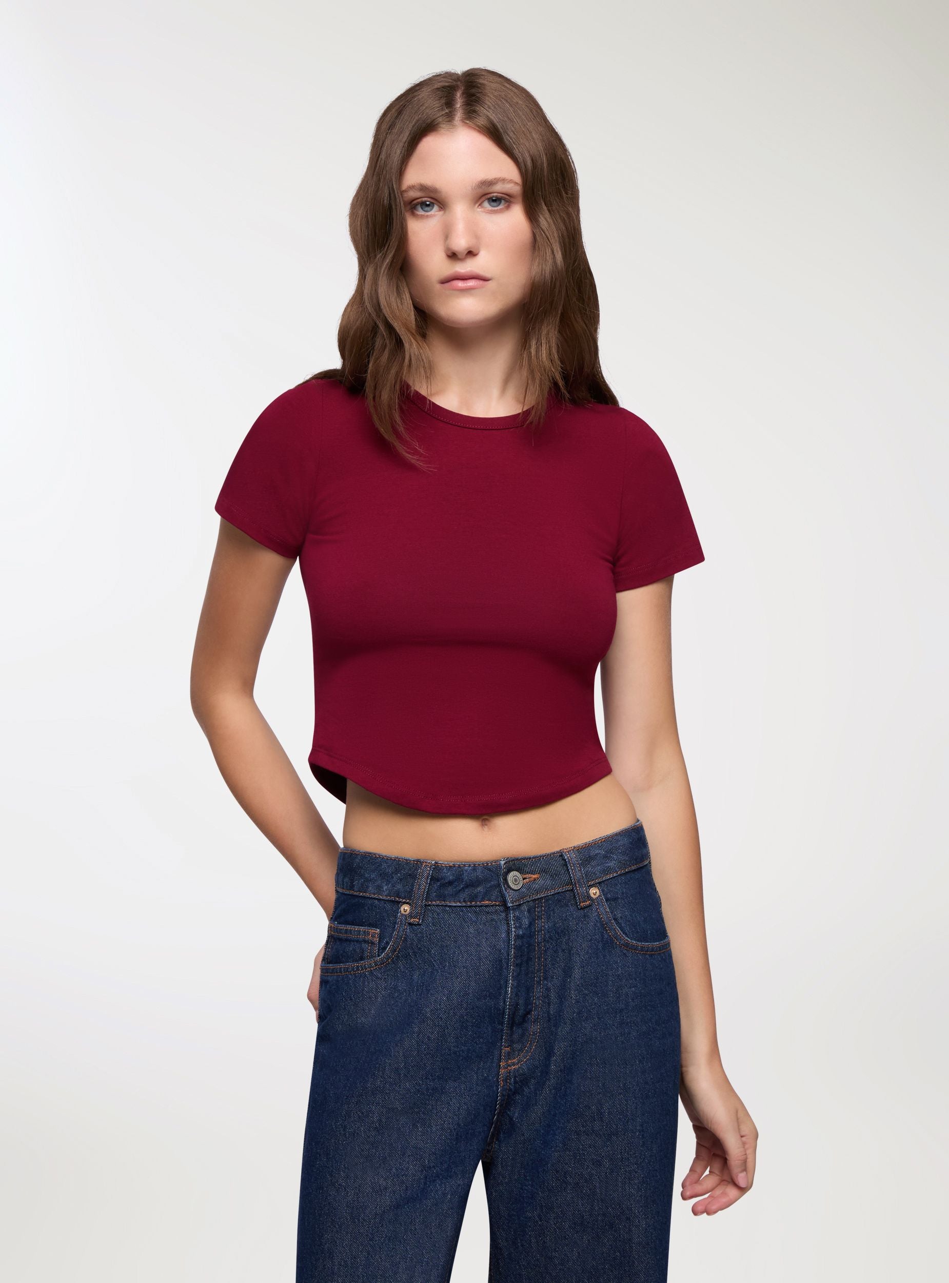 T-shirt crop a tinta unita