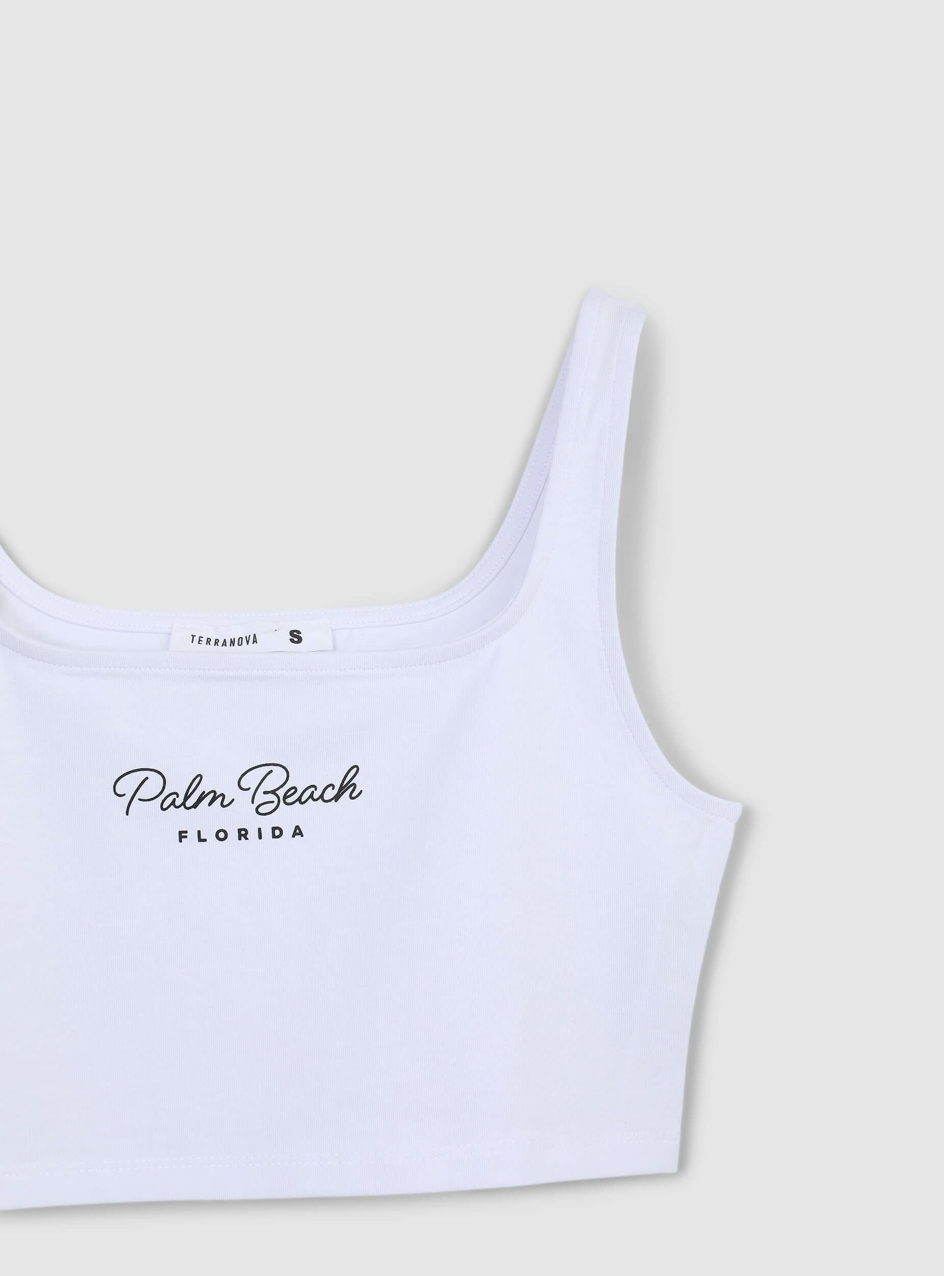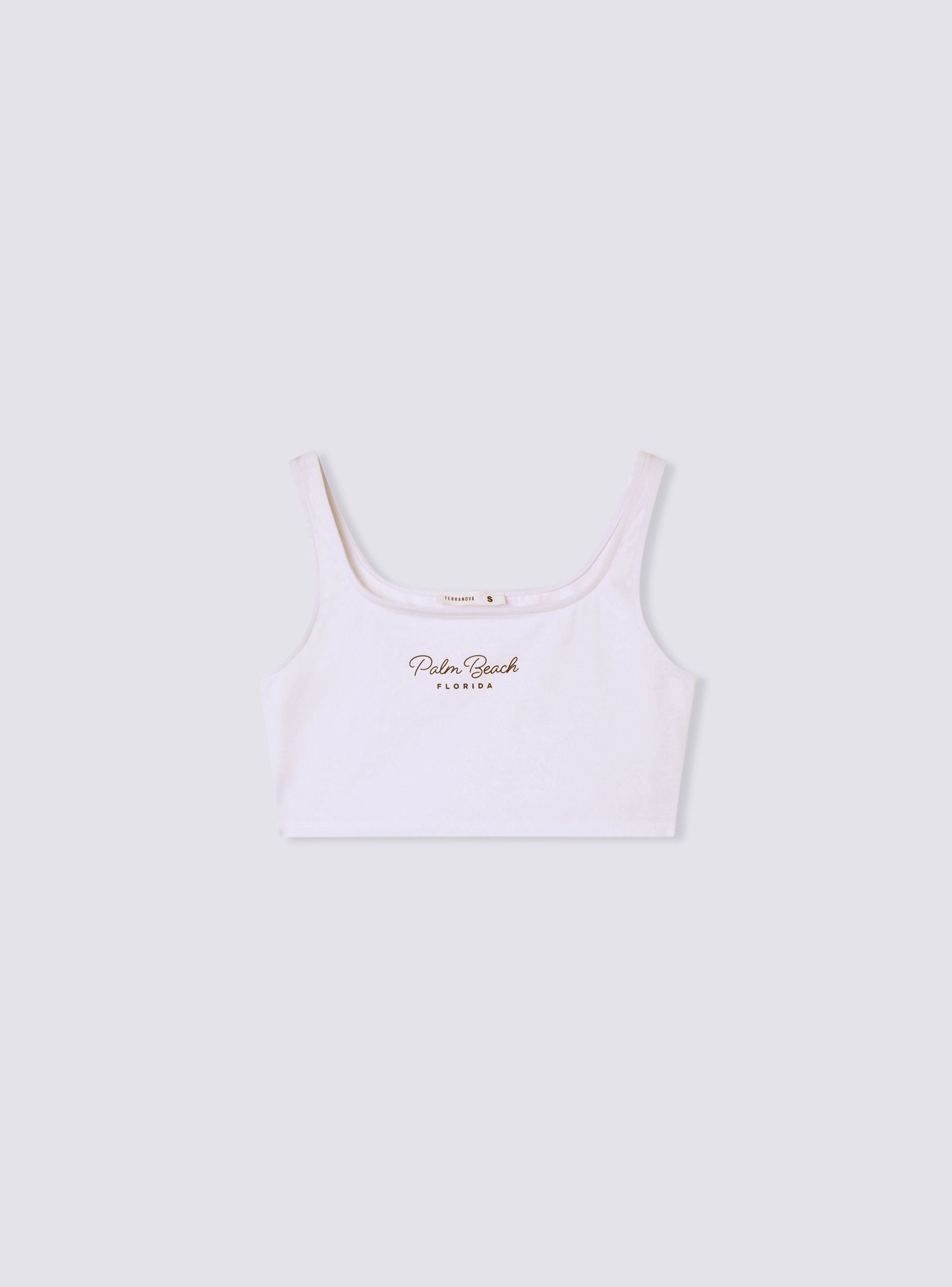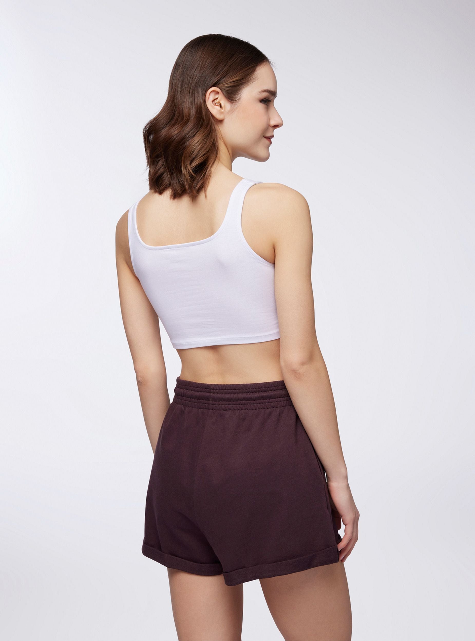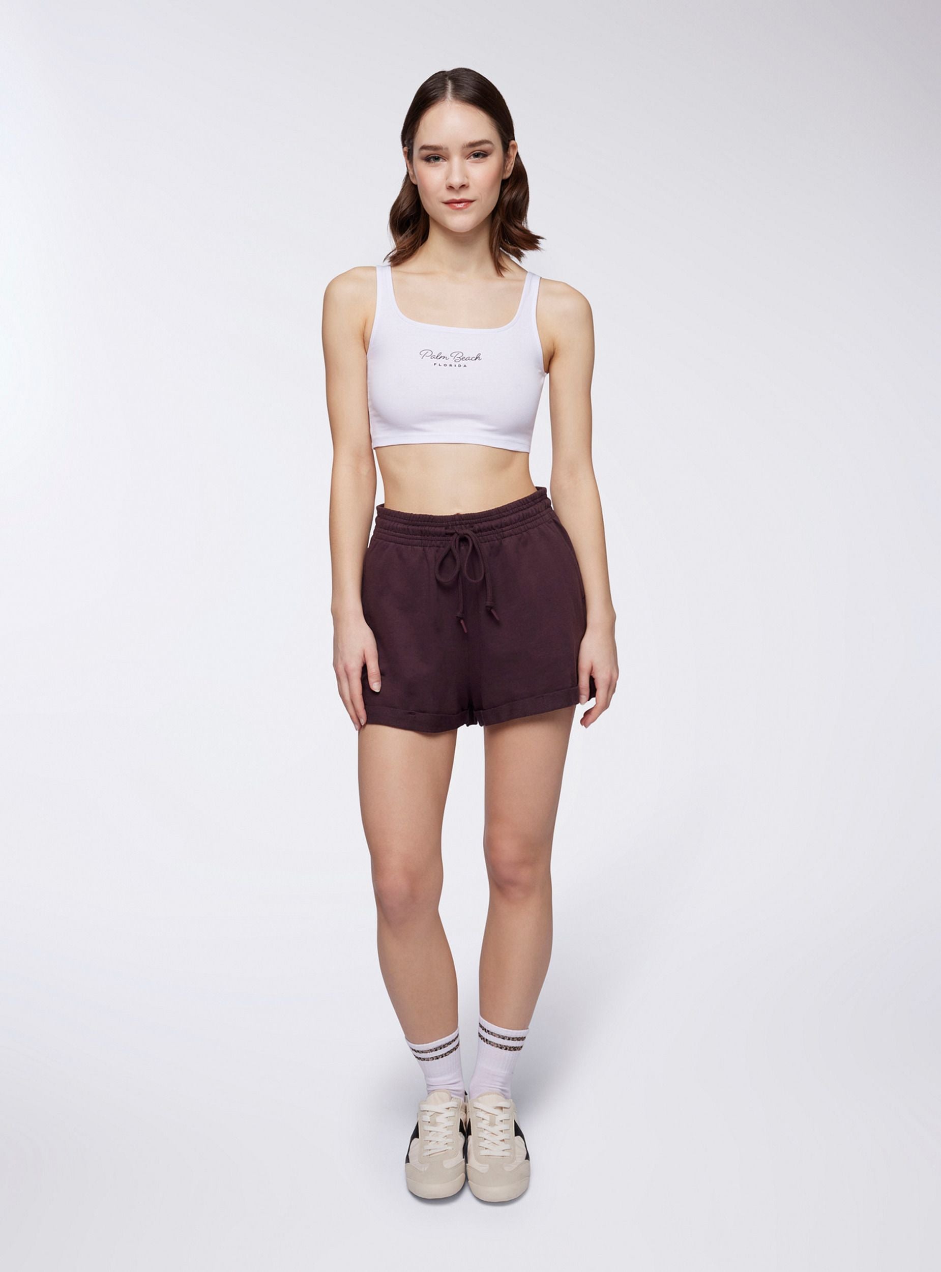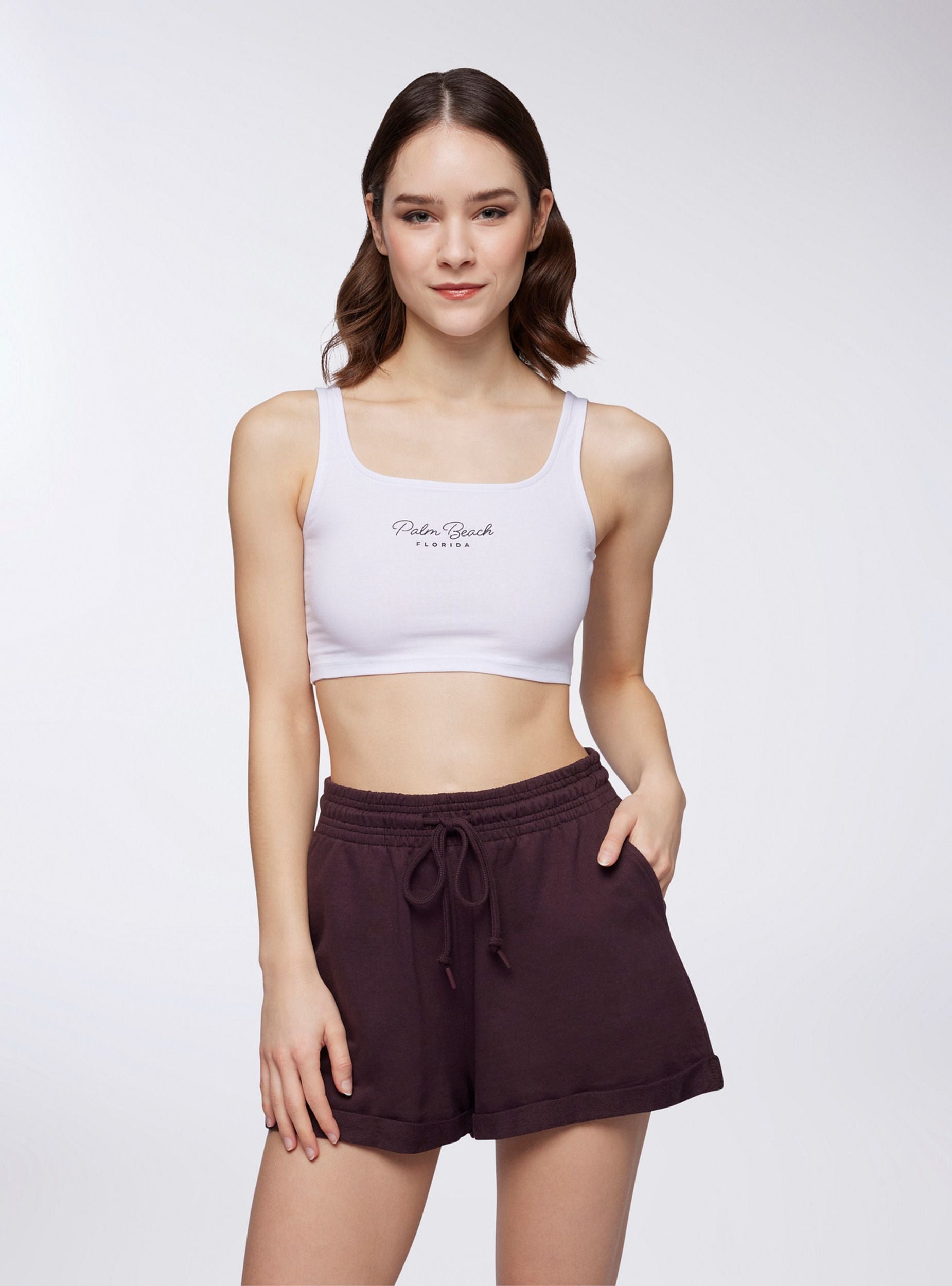 Bra da donna con un design essenziale. Caratterizzato da un comodo scollo ampio e spalline medie, garantisce un buon supporto senza costrizioni. Il dettaglio distintivo è la scritta decorativa posizionata sul davanti, che aggiunge un tocco di stile casual.Dettagli