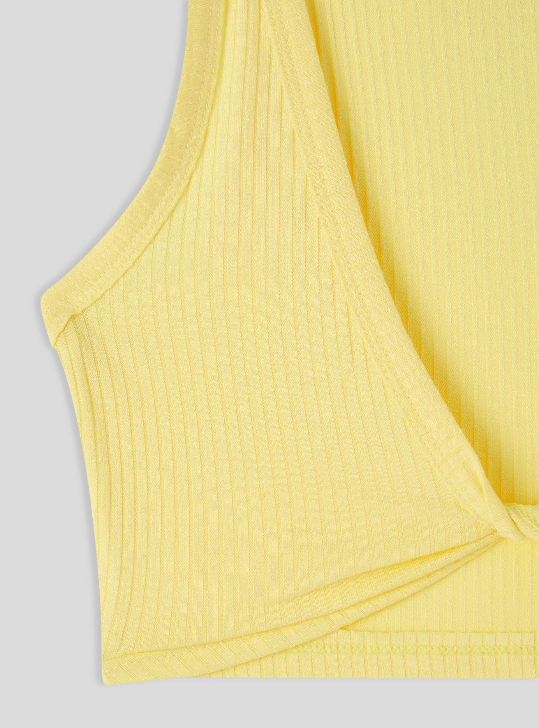 Top da donna con design incrociato sul davanti, ideale per un look casual e moderno. Perfetto per essere abbinato a jeans o pantaloni a vita alta, questo top offre una vestibilità aderente che valorizza la silhouette. Il dettaglio a costine aggiunge un tocco di stile, rendendolo adatto sia per il giorno che per la sera. Un capo versatile per arricchire il guardaroba.
