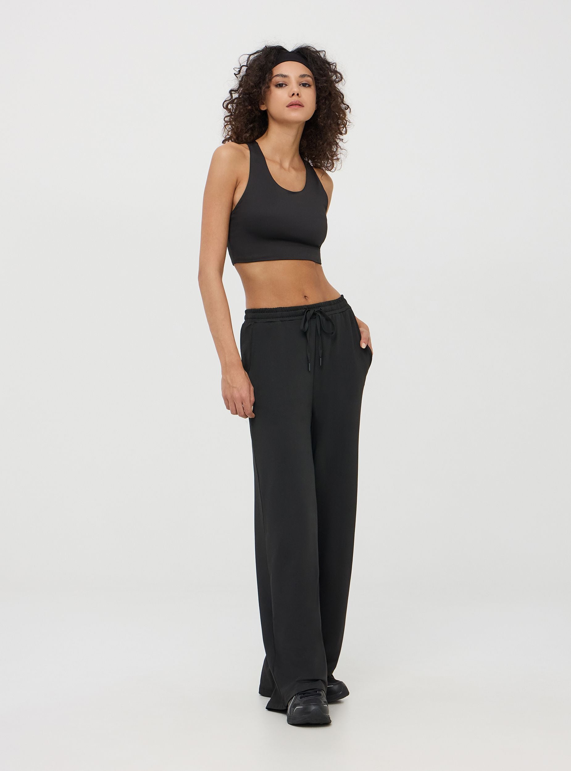 Reggiseno sportivo da donna a tinta unita con spalline incrociate sulla schiena. Realizzato in tessuto elasticizzato super confortevole che permette la massima libertà di movimento. Linea Active. Vestibilità crop. Ideale per allenamenti e look sportivi.