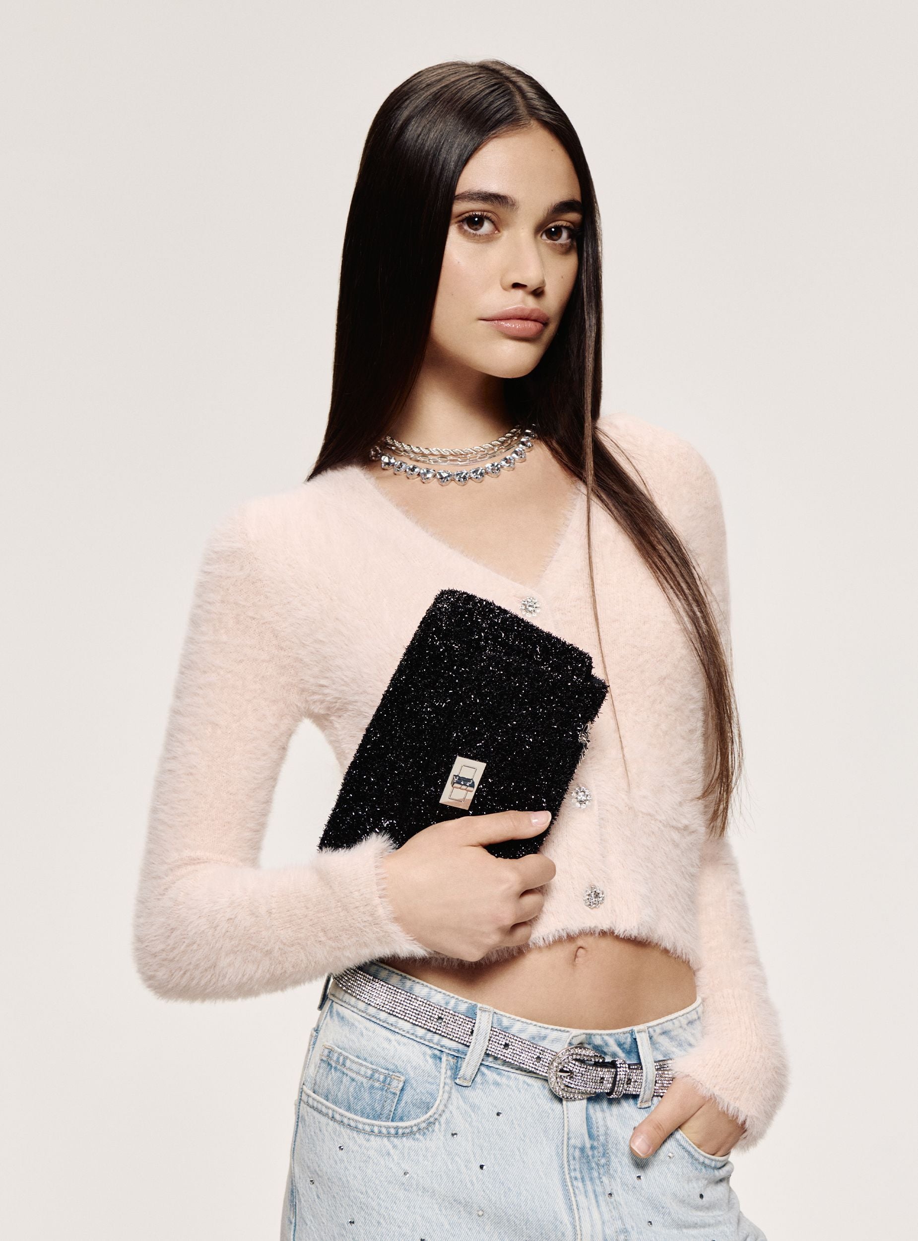 Cintura da donna glamour e scintillante perfetta per aggiunge un tocco di eleganza a qualsiasi outfit. La cintura è adornata con strass lungo tutta la sua lunghezza, conferendo un aspetto luminoso e sofisticato. La fibbia, anch'essa decorata con strass, è a forma ovale e aggiunge un ulteriore elemento di brillantezza. Può essere regolata facilmente grazie ai fori lungo la fascia. Perfetta per completare look da sera o per aggiungere un dettaglio scintillante a tenute più casual, questa cintura è un must-have per chi ama gli accessori chic e alla moda.