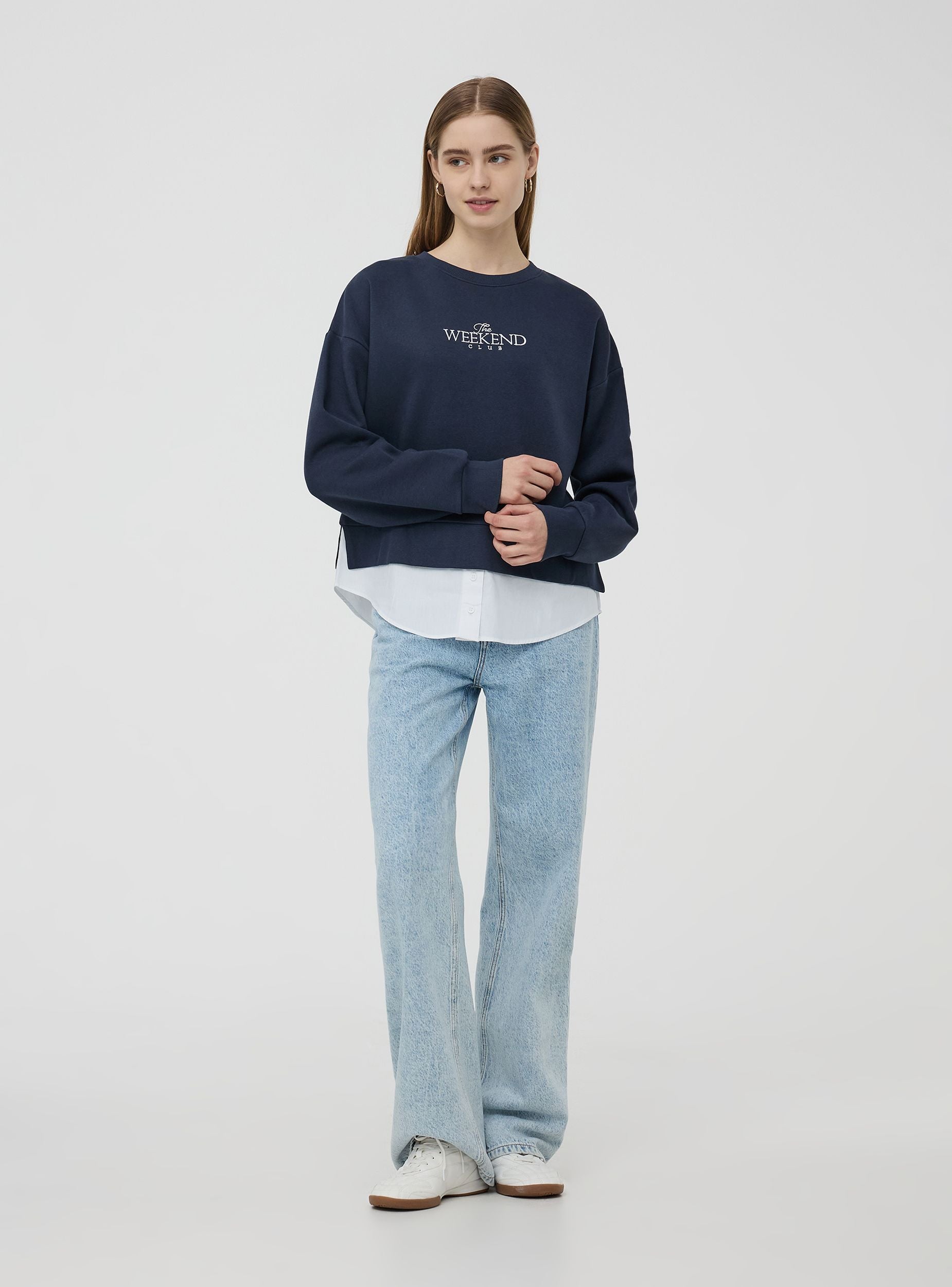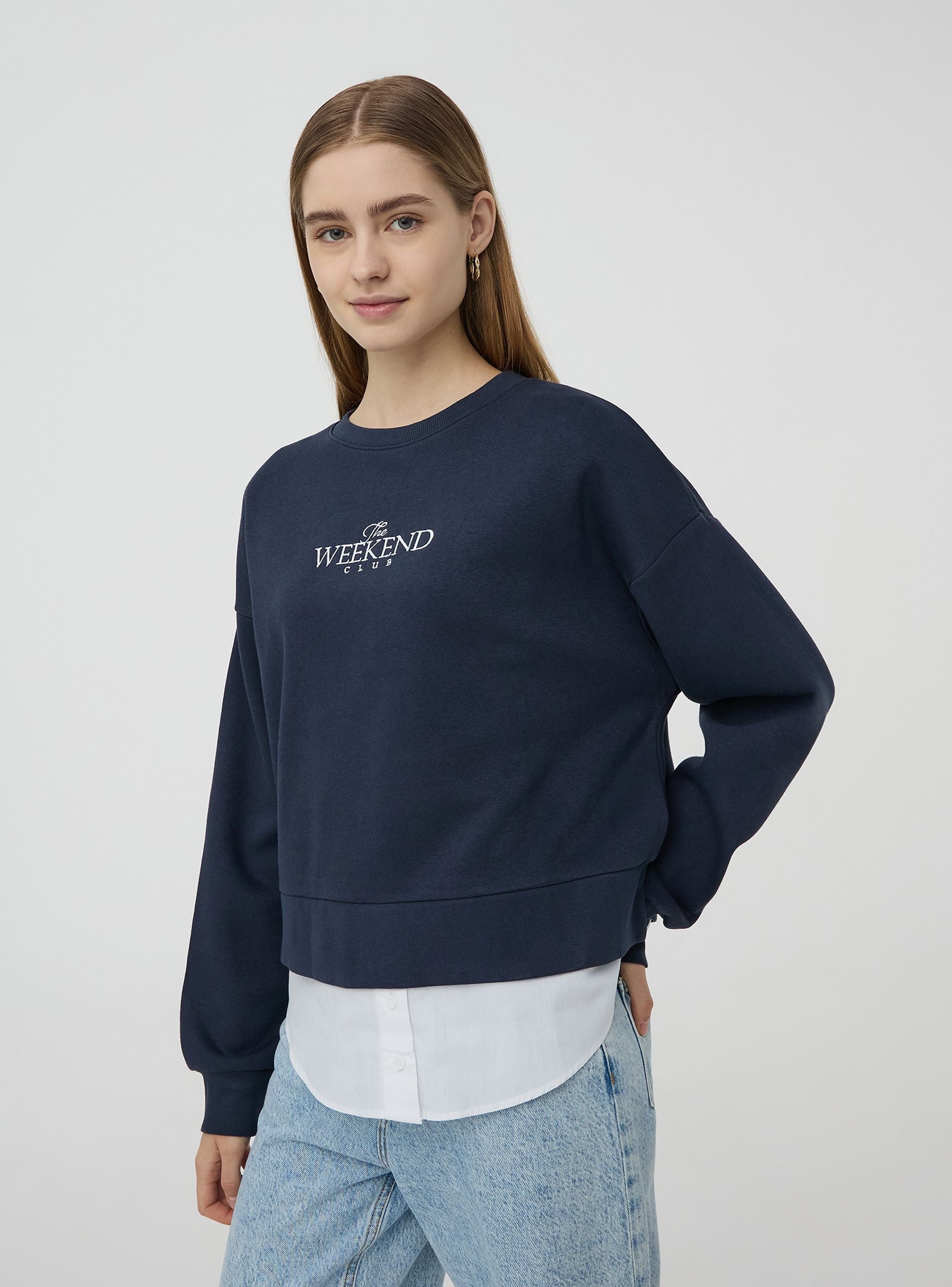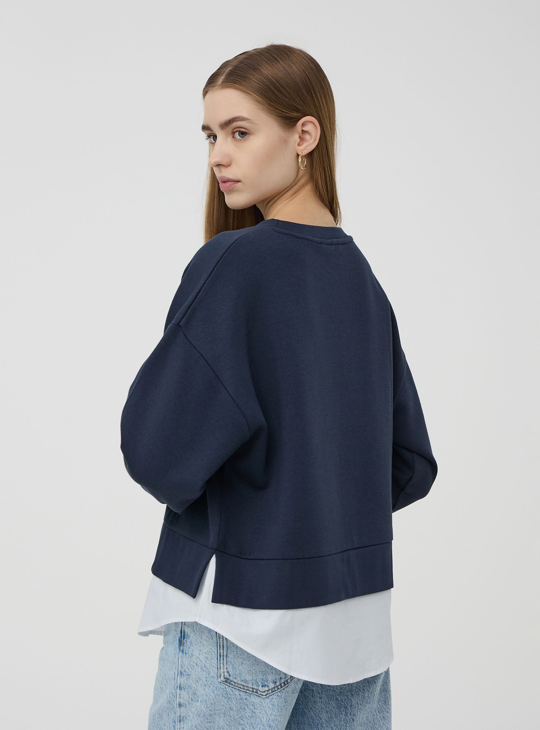 Felpa ampia senza cappuccio con inserto camicia